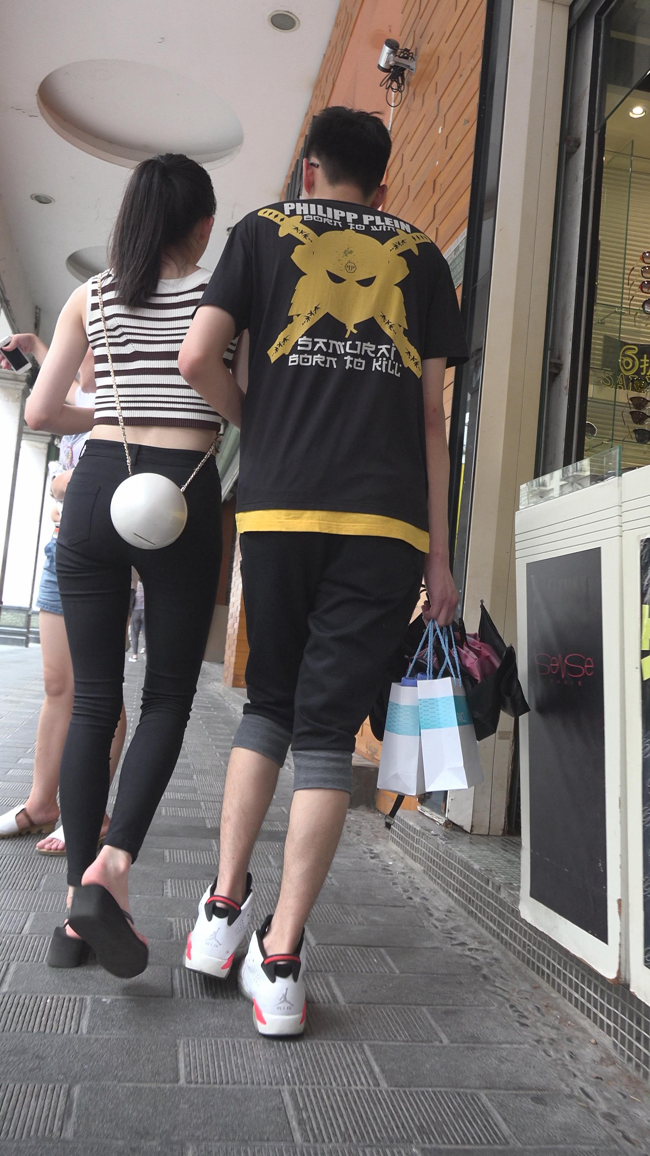 紧身黑裤小蛮腰马尾辫小姐姐 编号5628