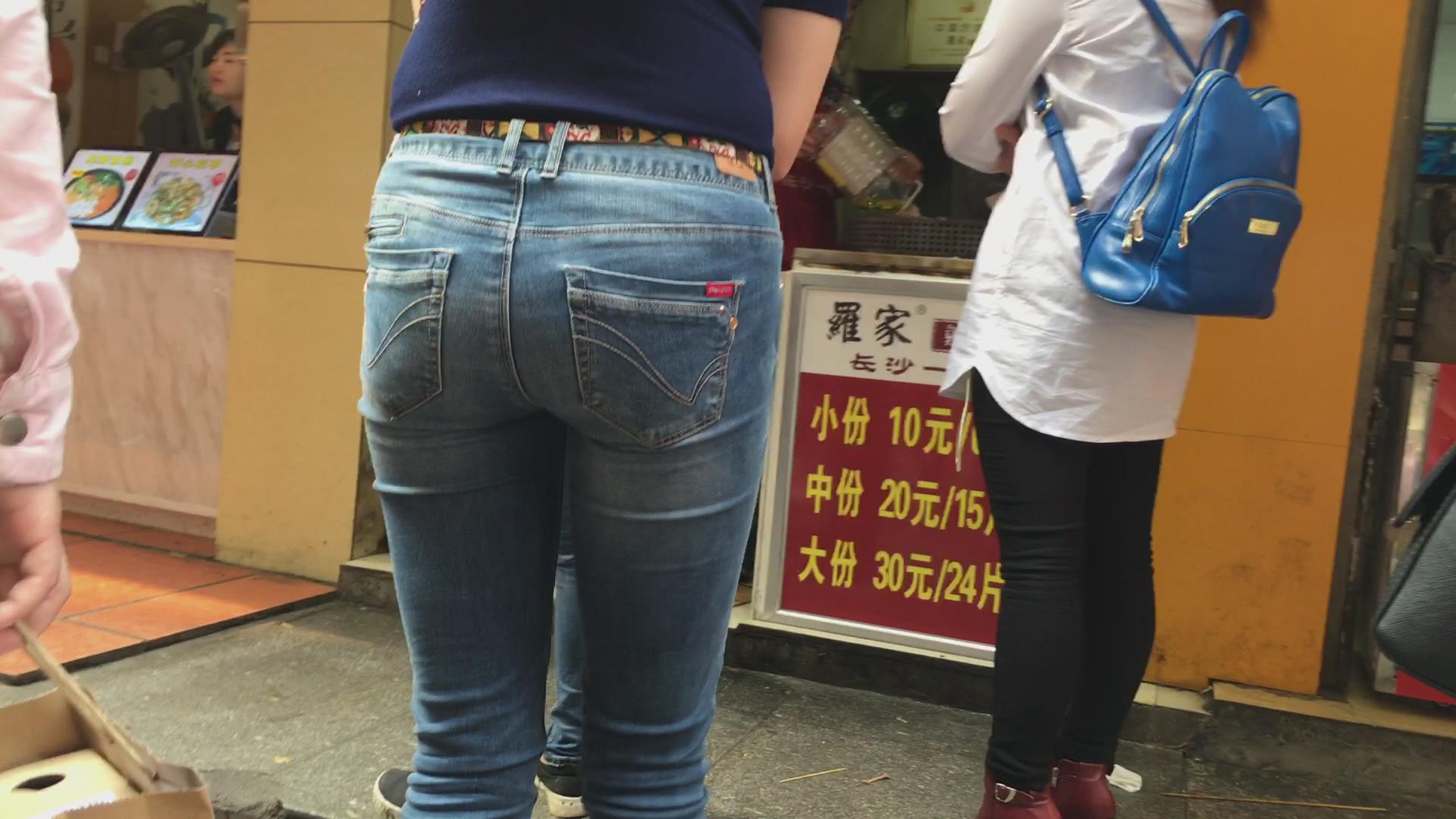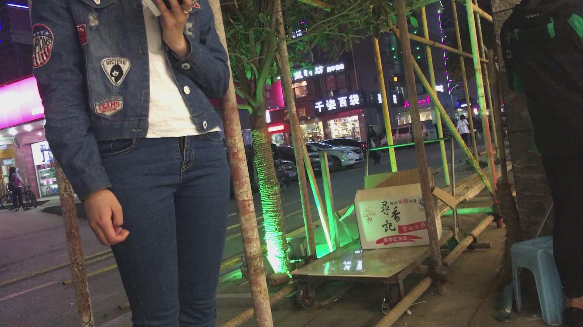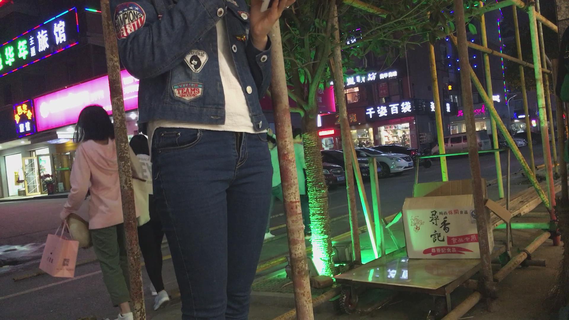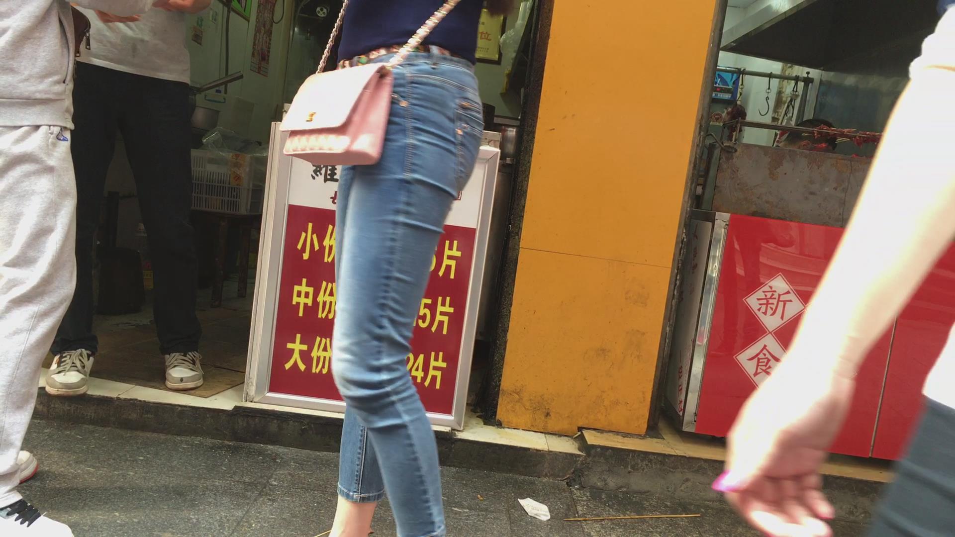 极品紧身蓝牛妹子在等公交 编号5647