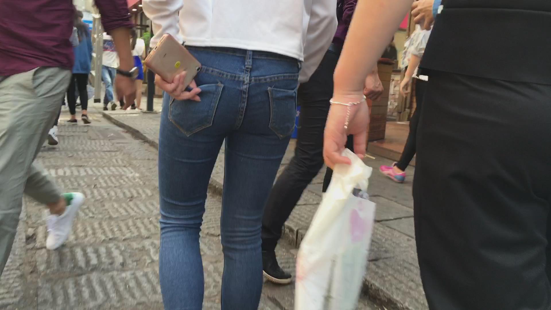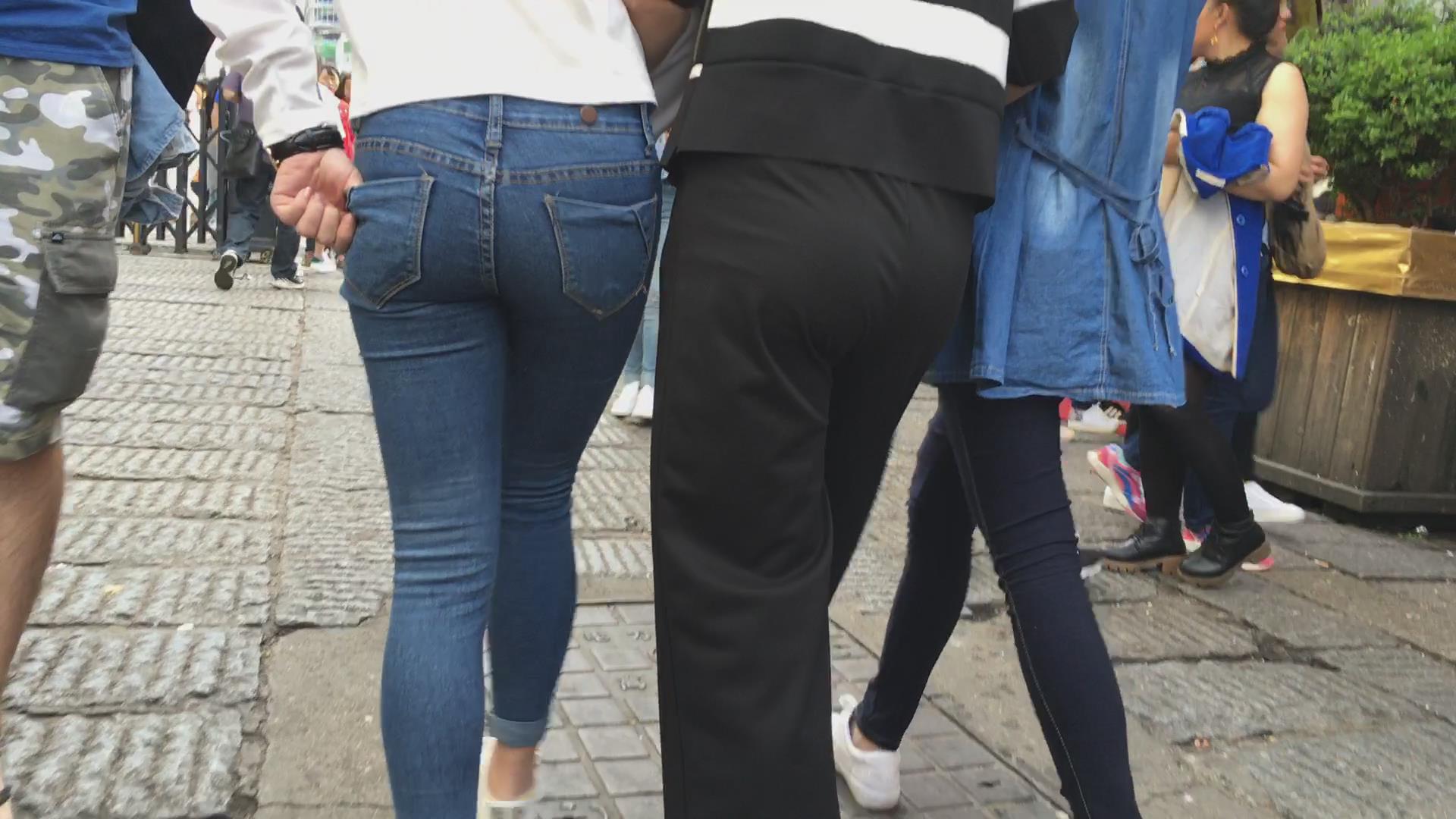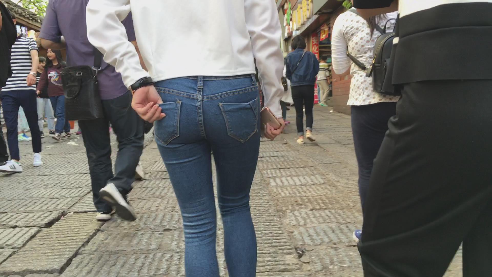 街拍极品紧身蓝色牛仔裤美眉 编号5651