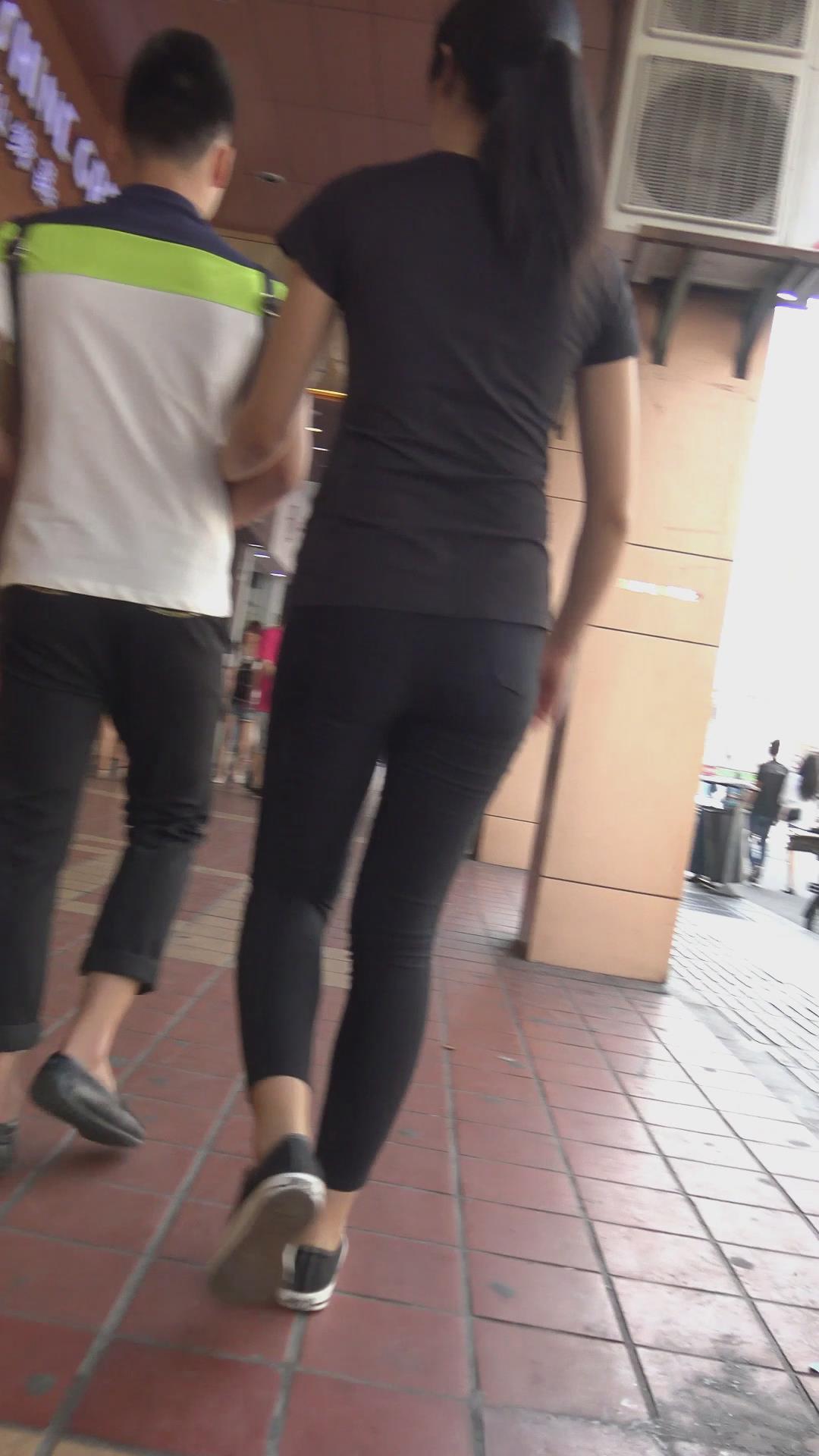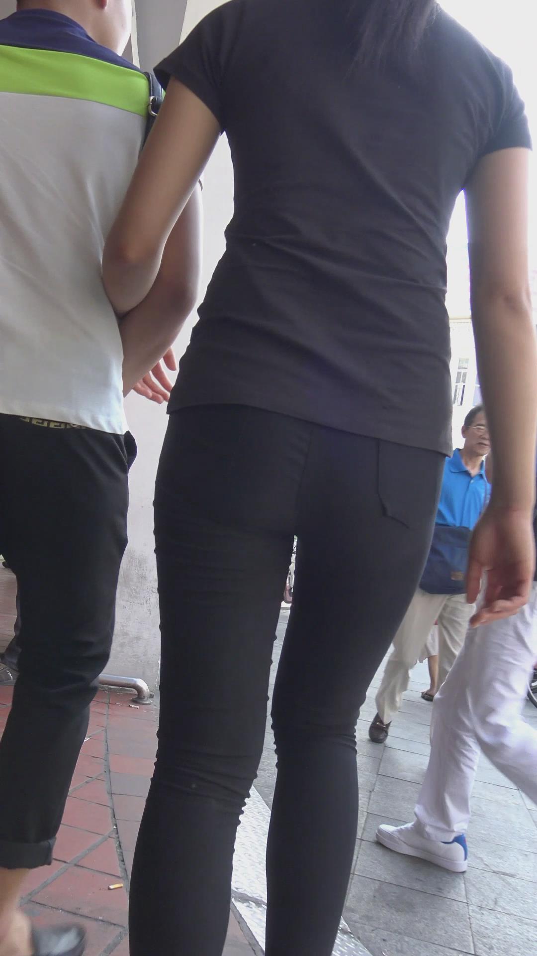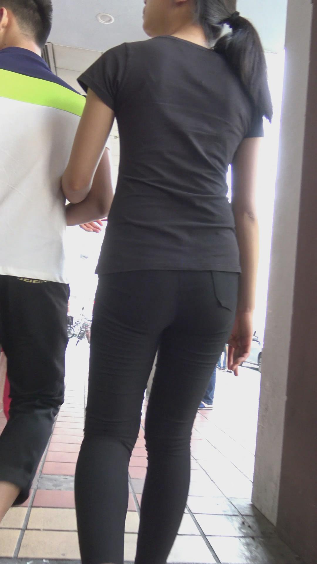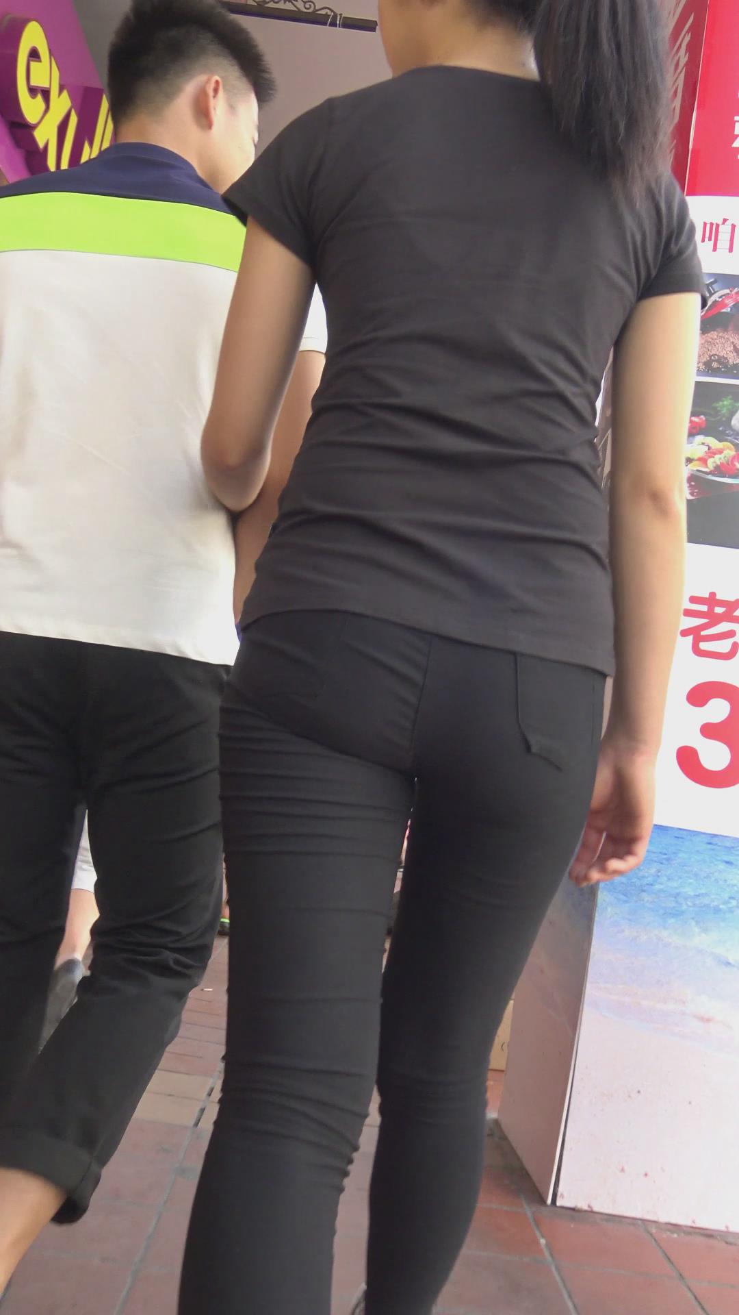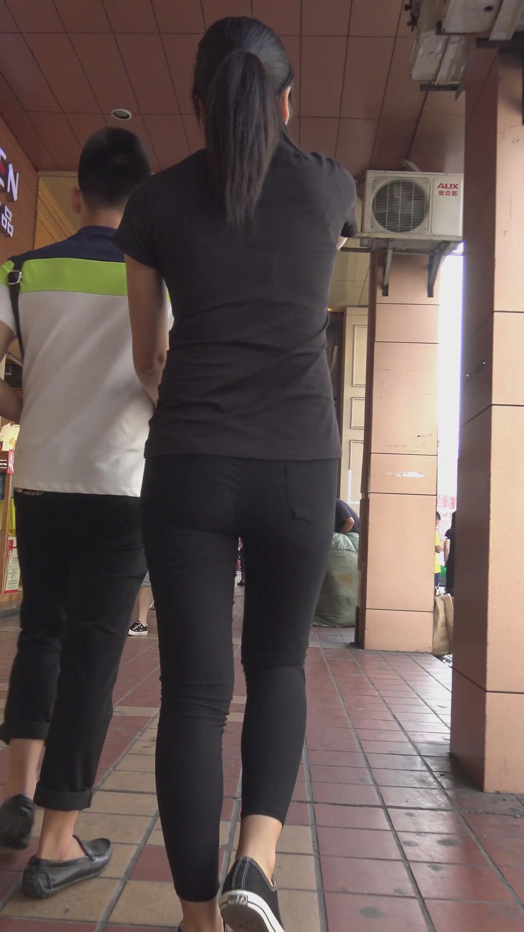 街拍黑色紧身裤美臀美女 编号6145