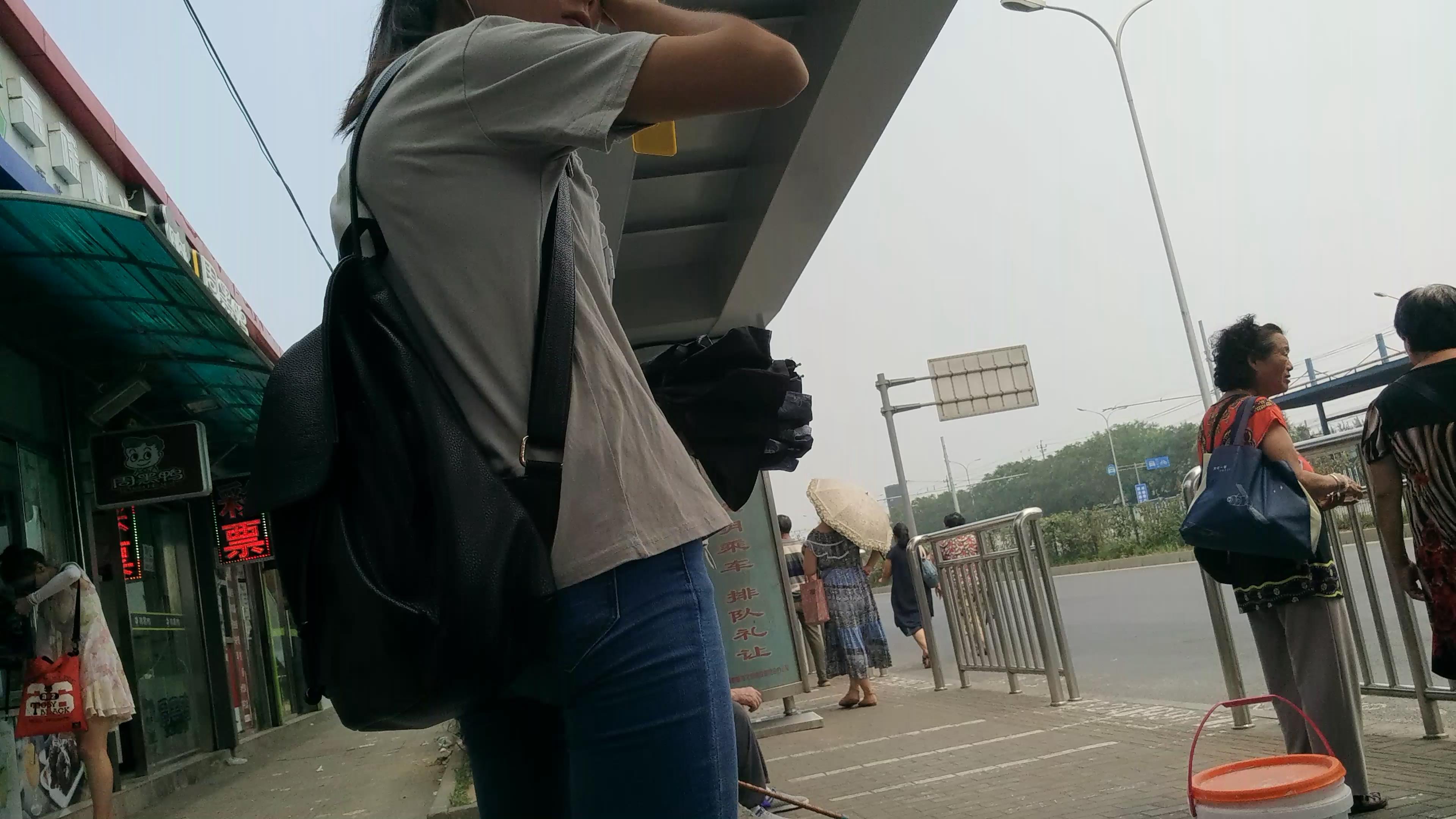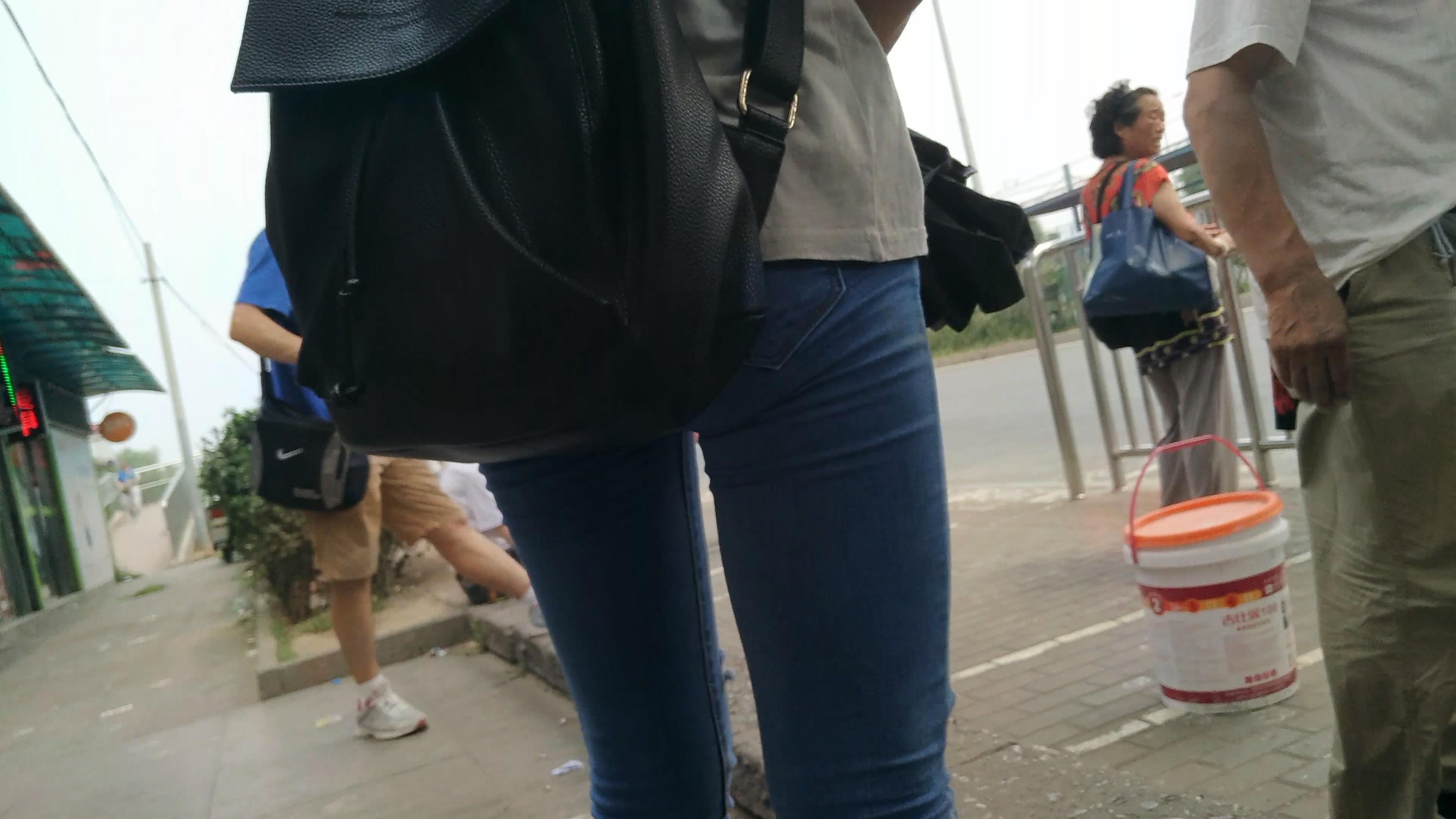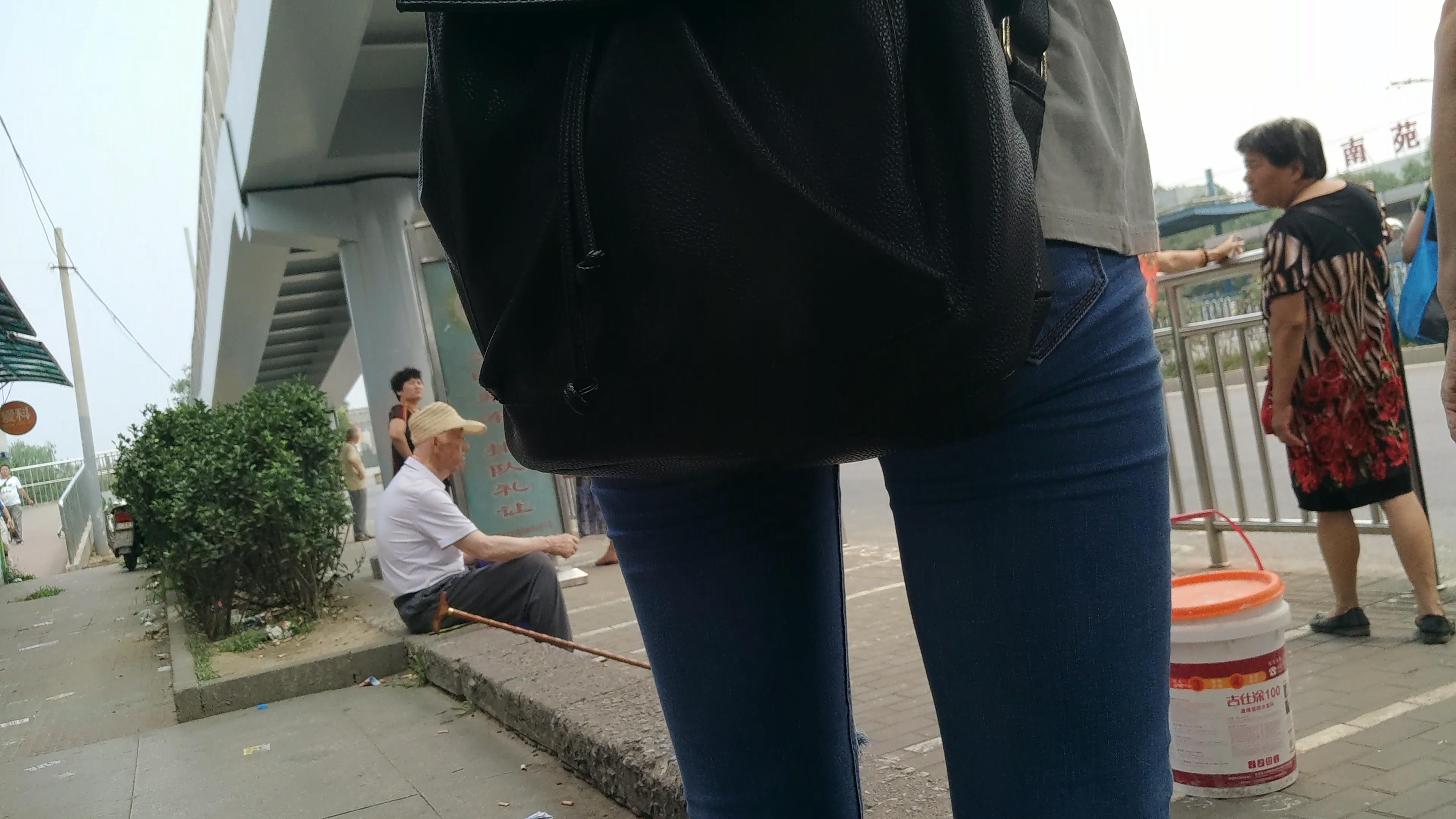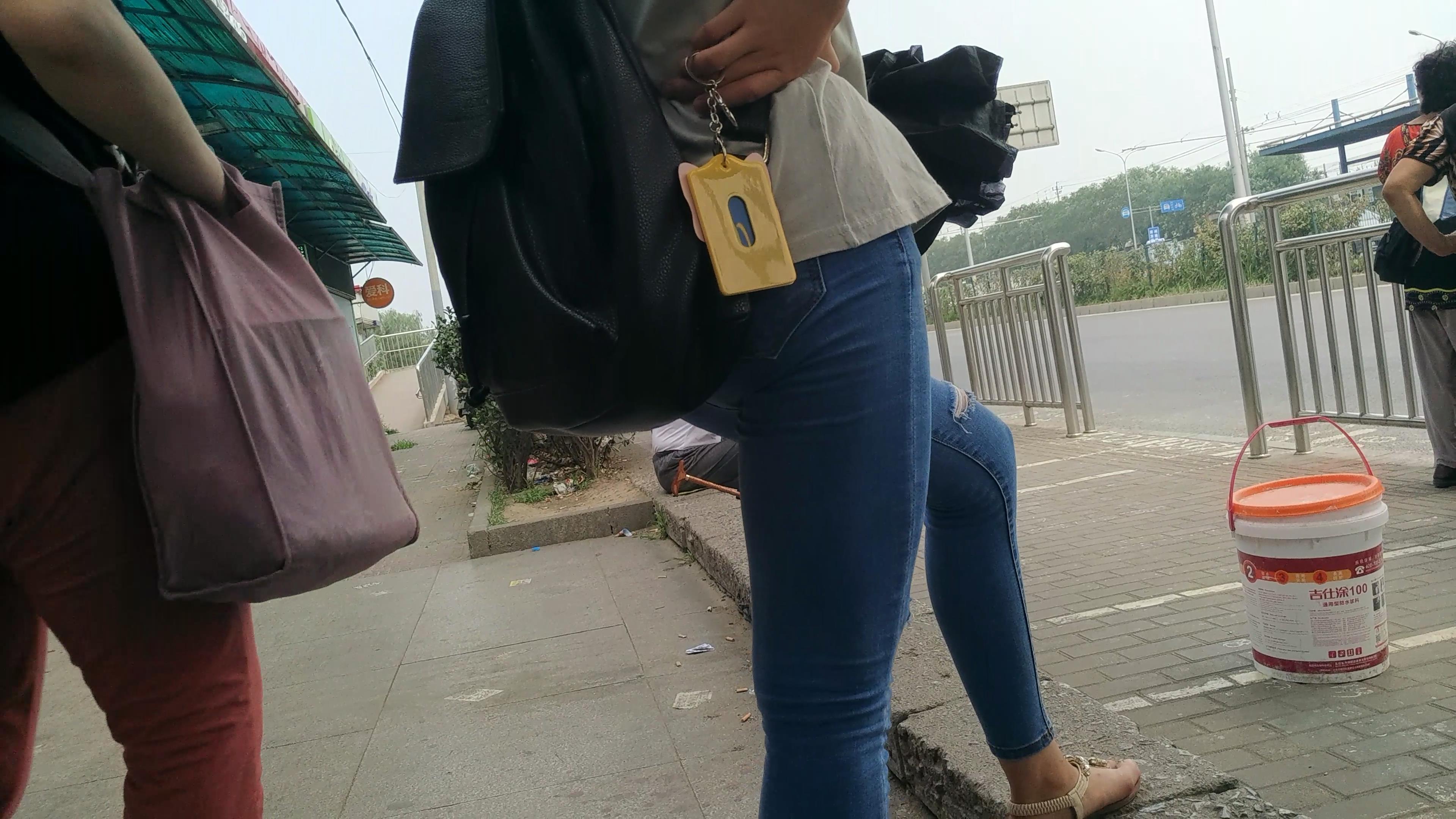 4k-路边等公交的蓝牛美腿少女 编号5669