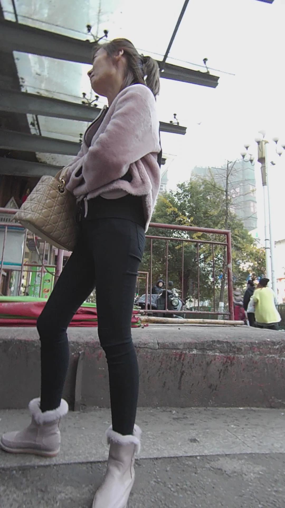 粉衣紧身黑裤美少妇 编号5673