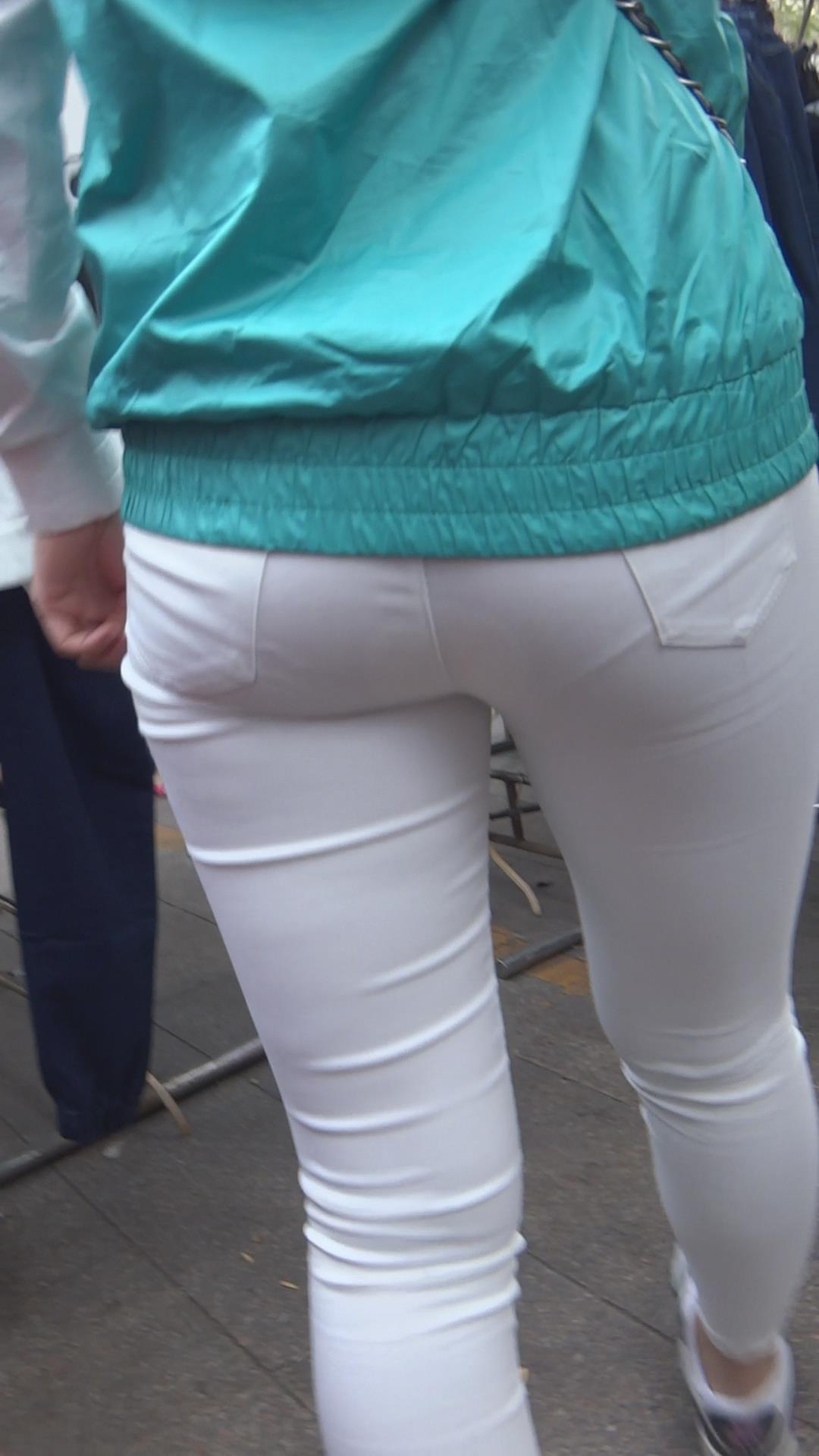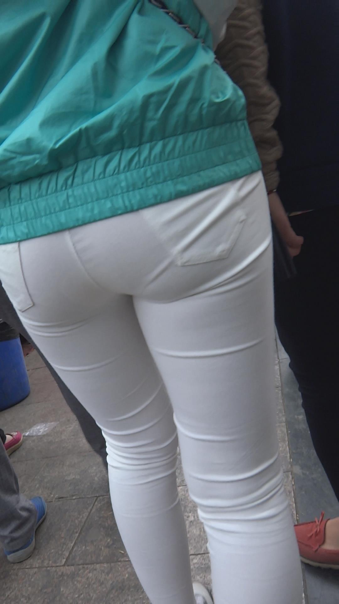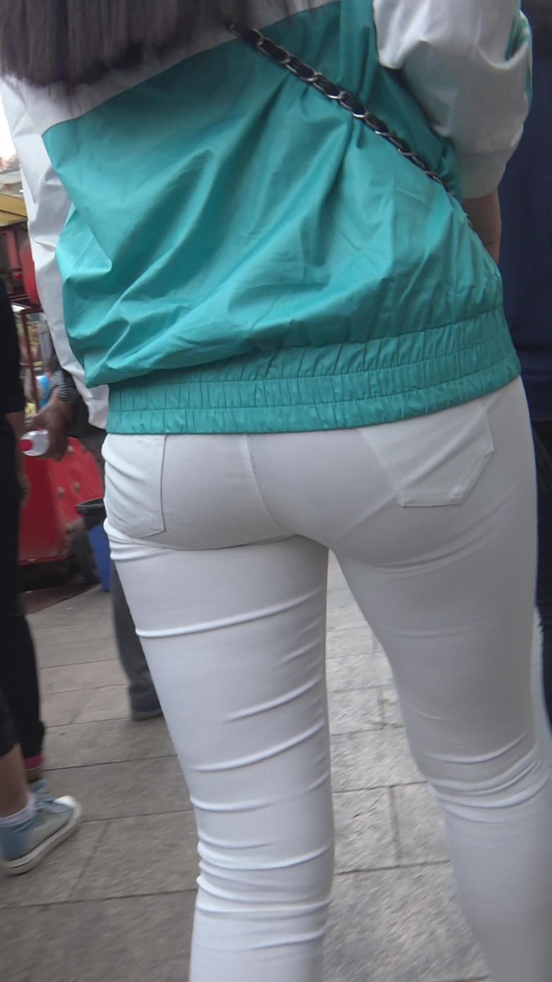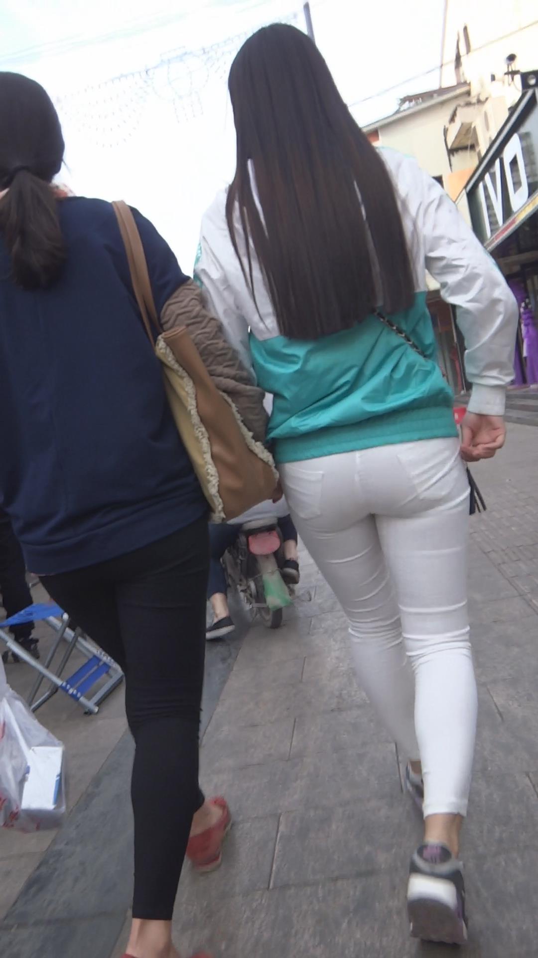 街拍极品丰臀紧身白裤学生妹小美女 编号5699