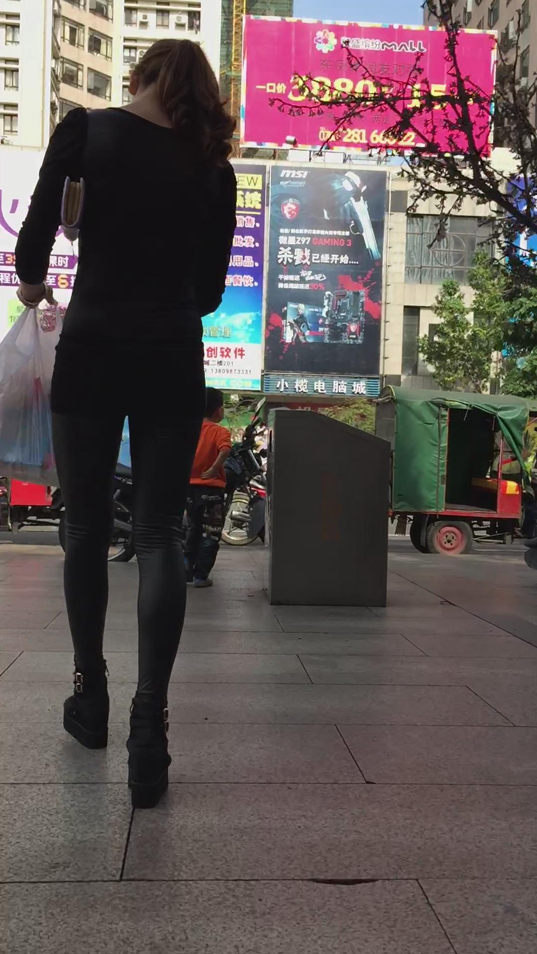 偶遇逛完超市的紧身皮裤美腿少妇 编号5704