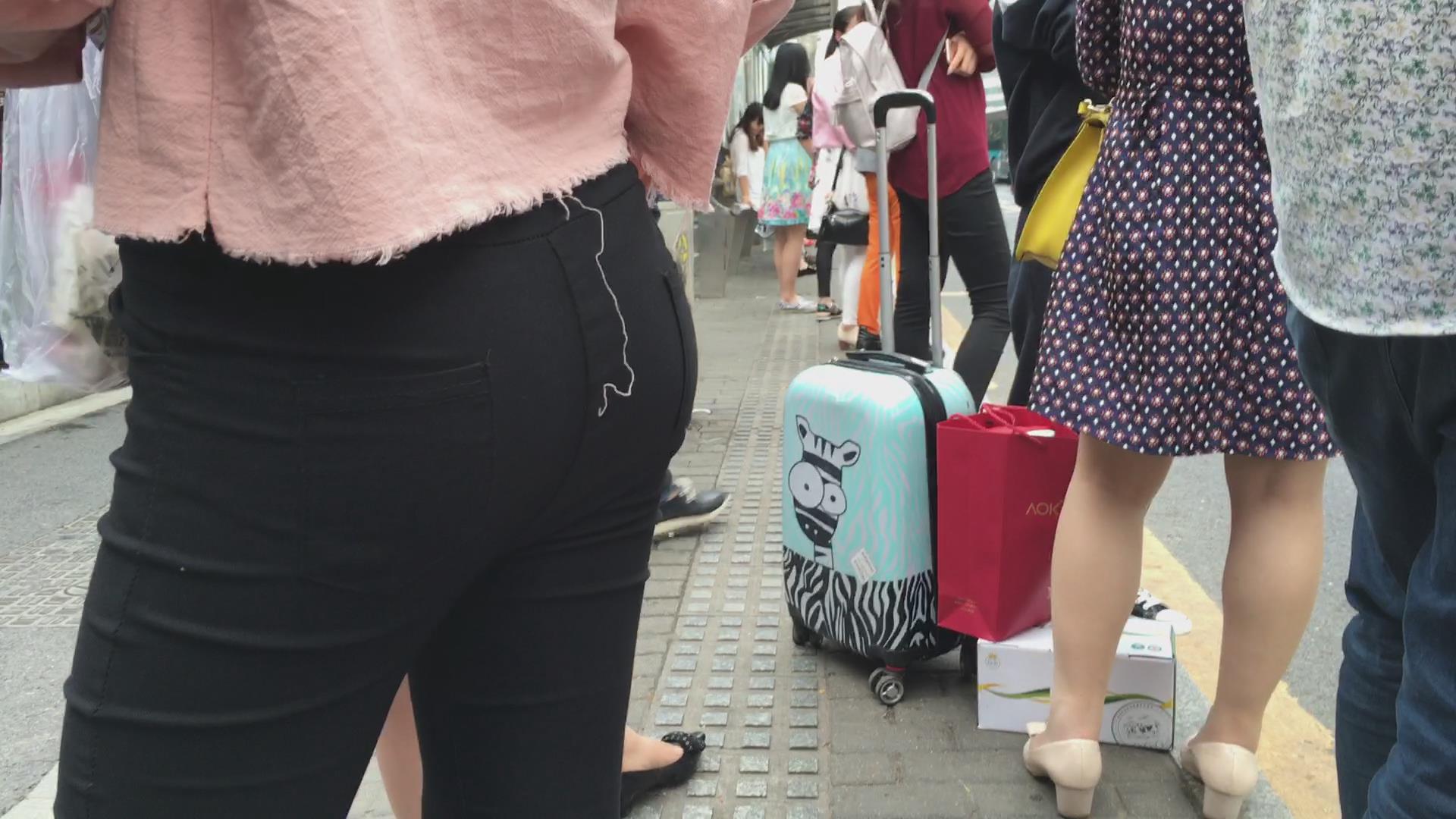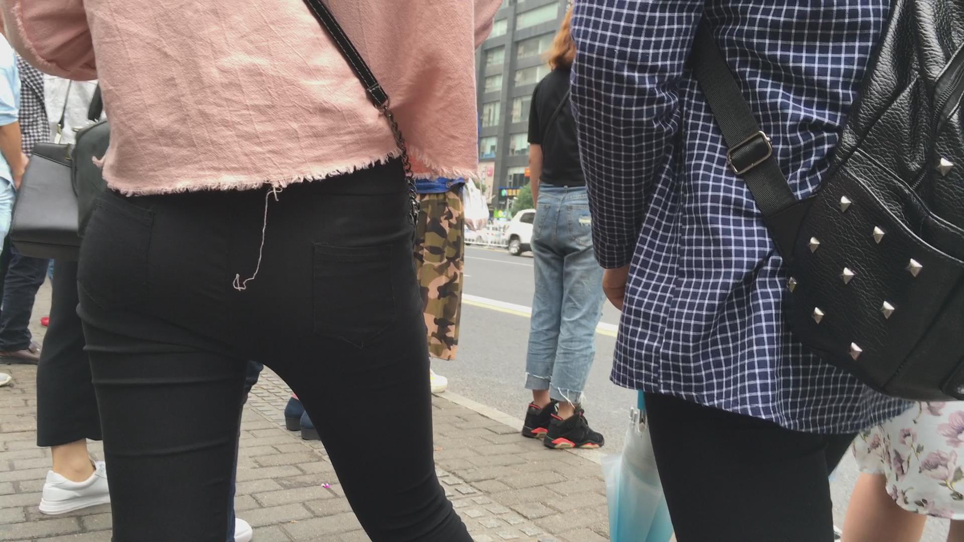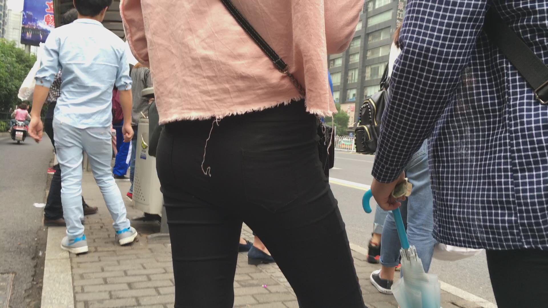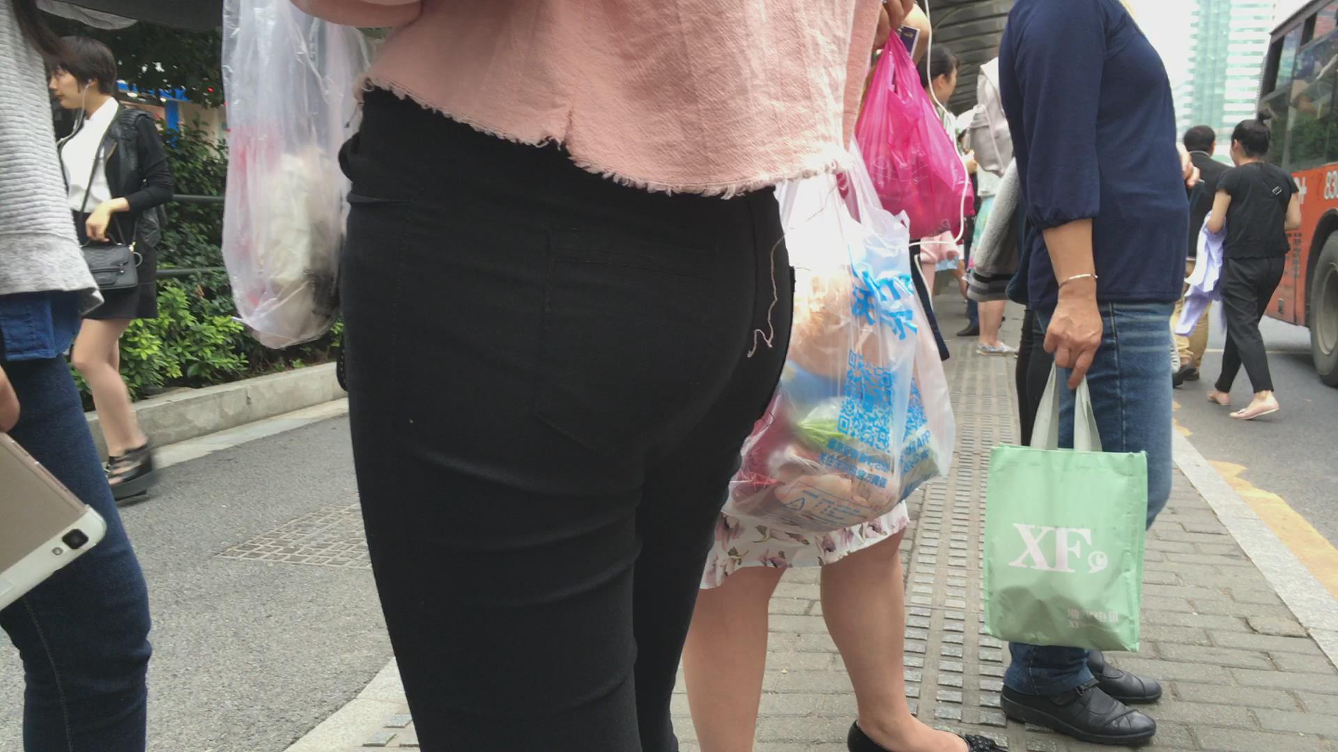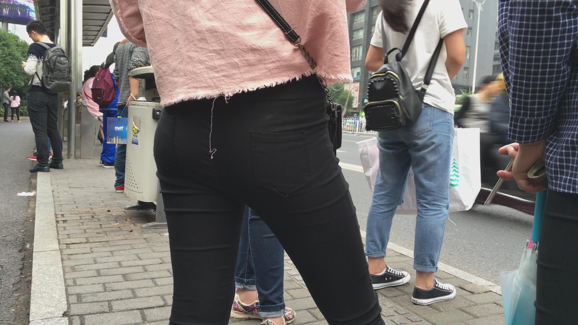 街拍翘臀紧身黑裤美眉公交站等车 编号5713