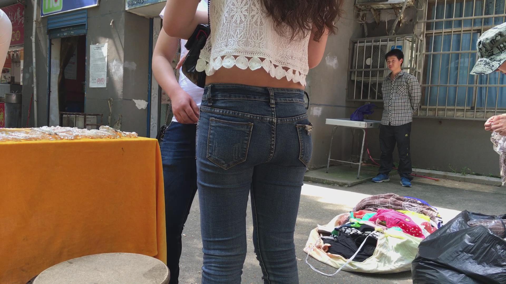 偶遇极品肥臀紧身蓝牛露脐装美女 编号5708