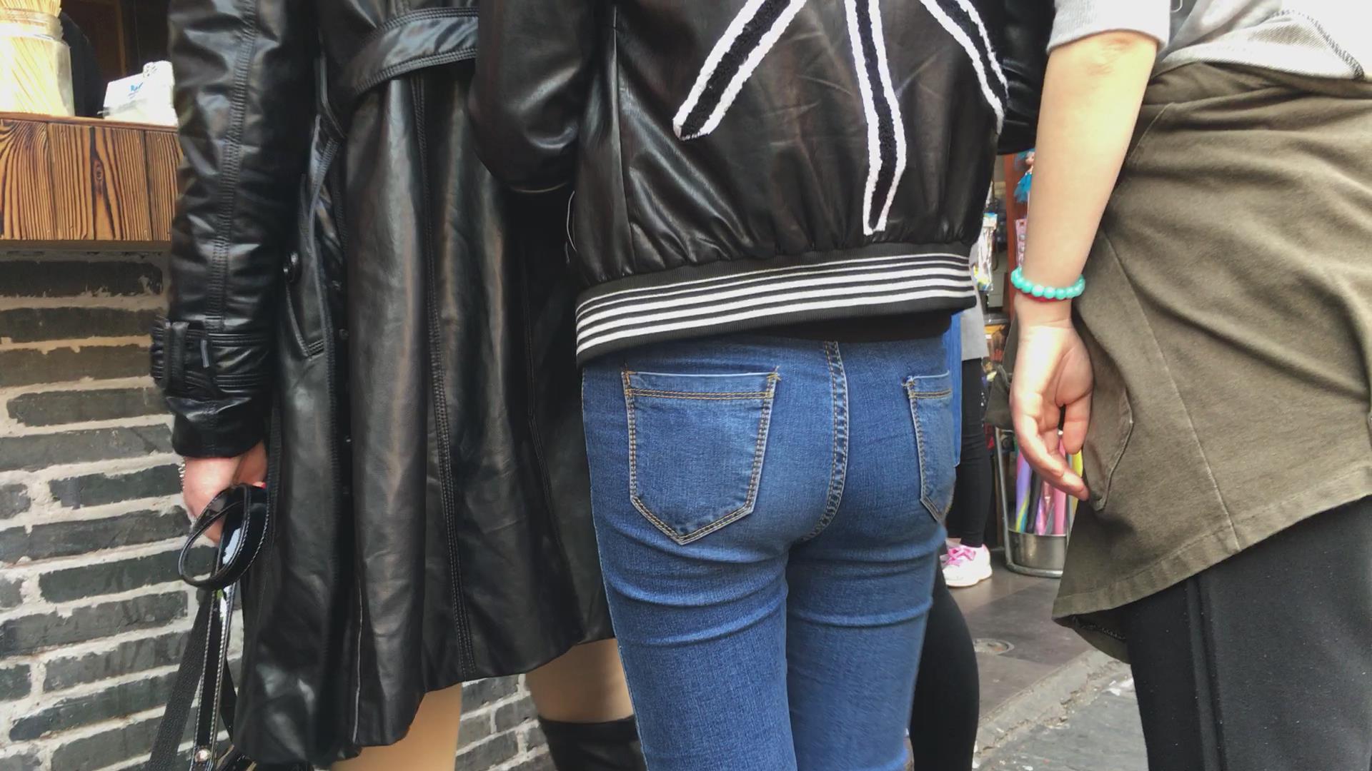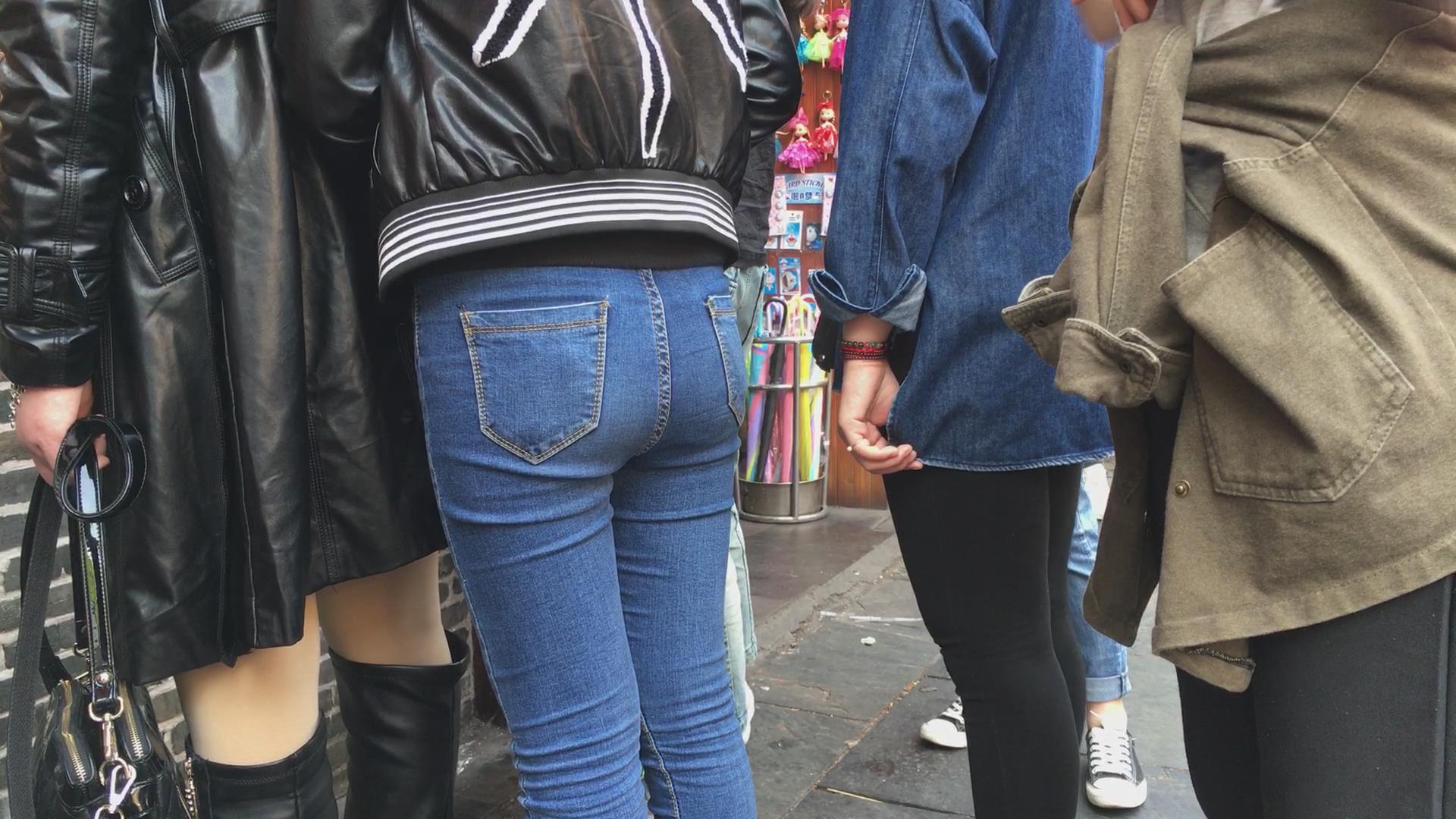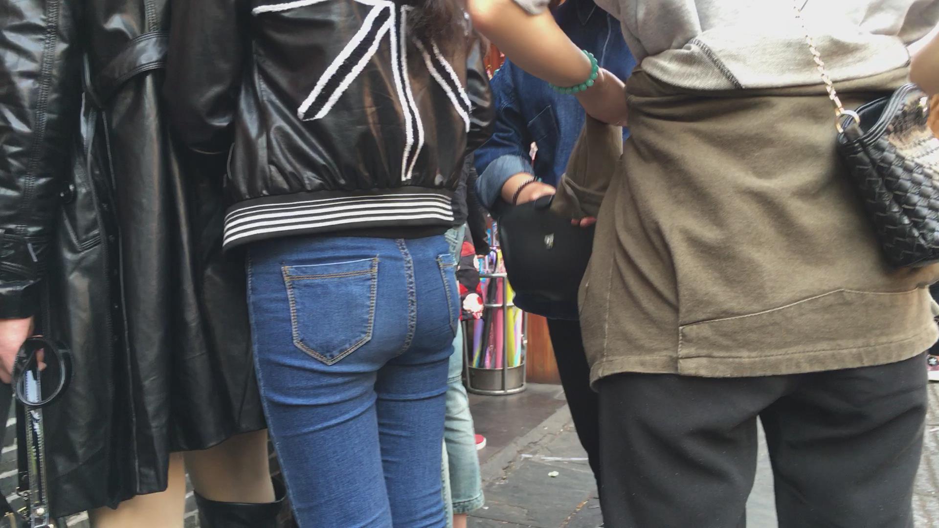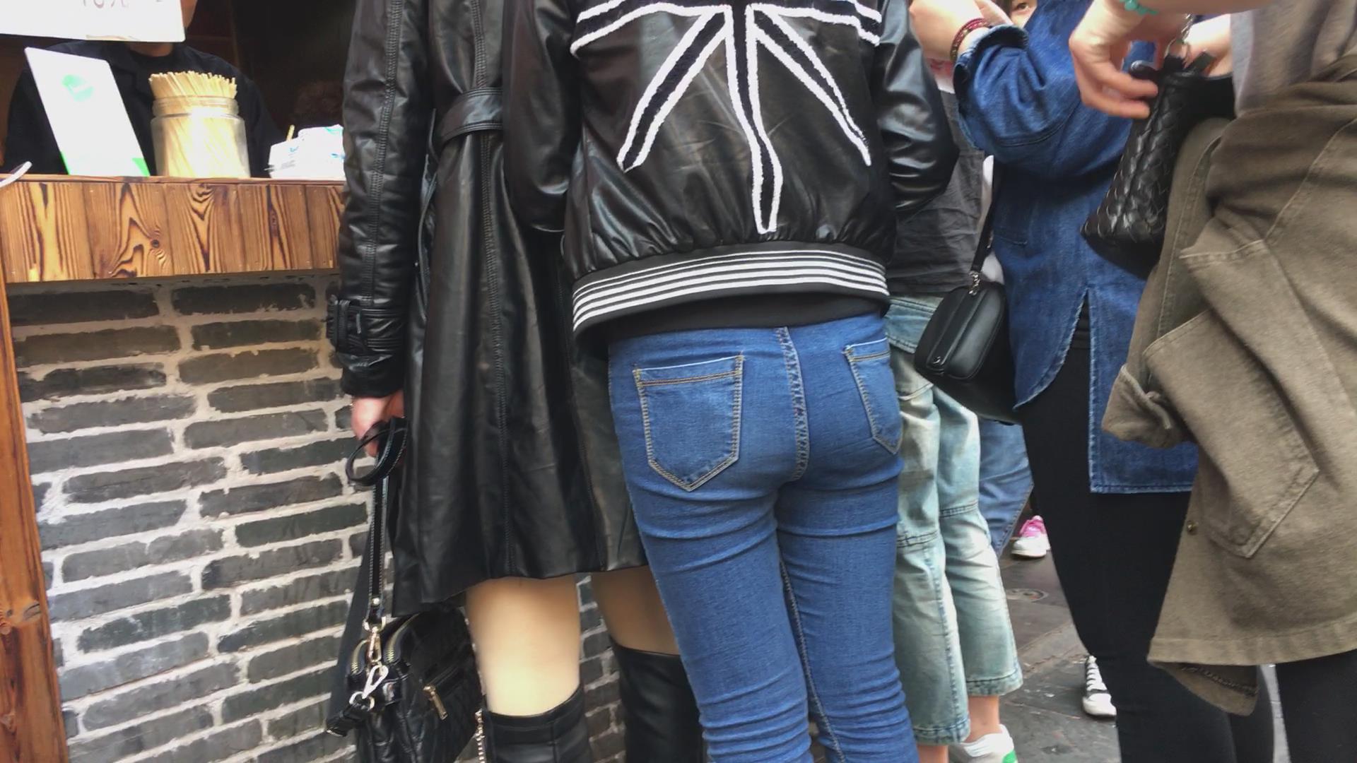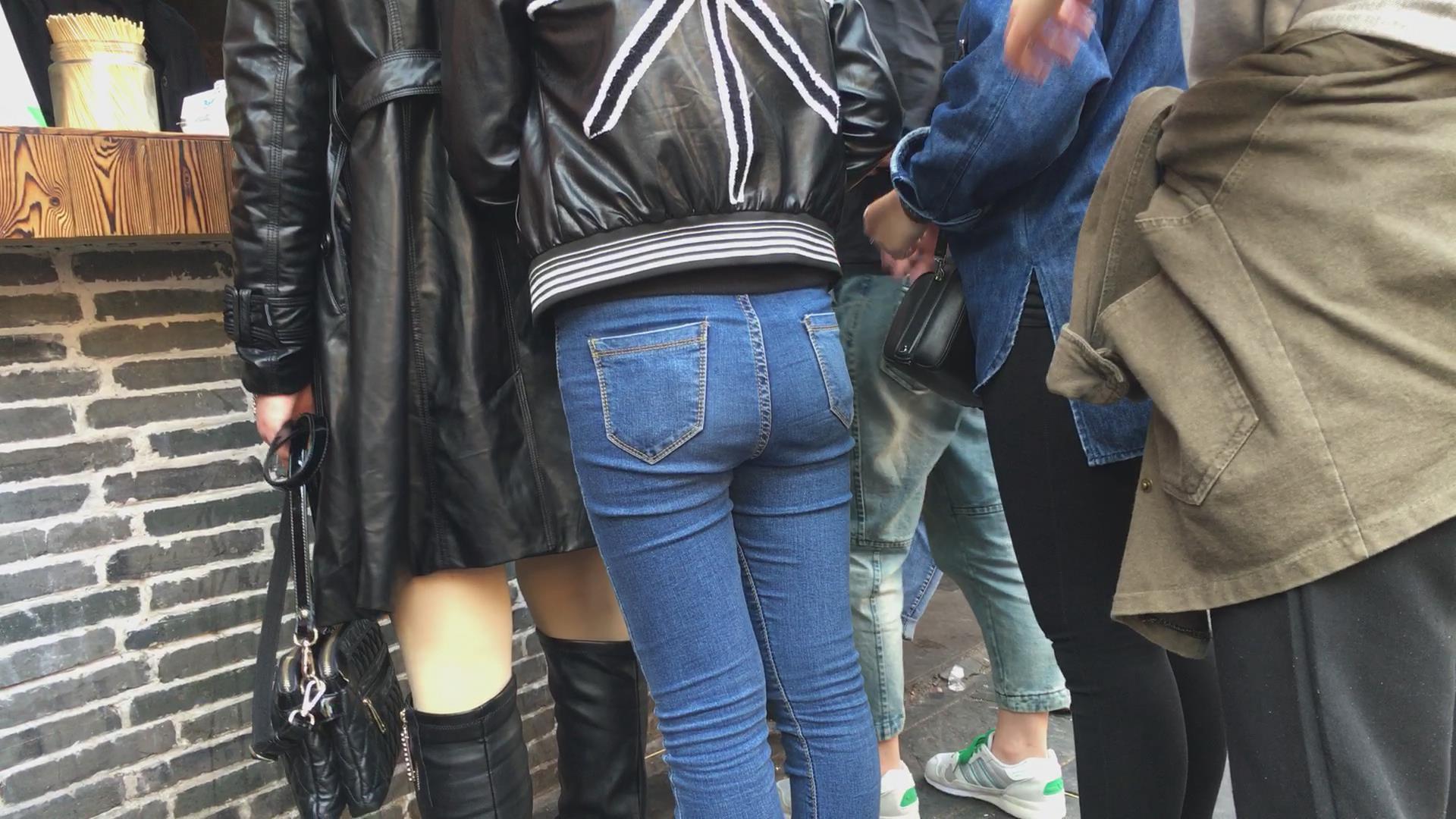 极品紧身蓝色牛仔裤妹子,在排队买东西 编号5722