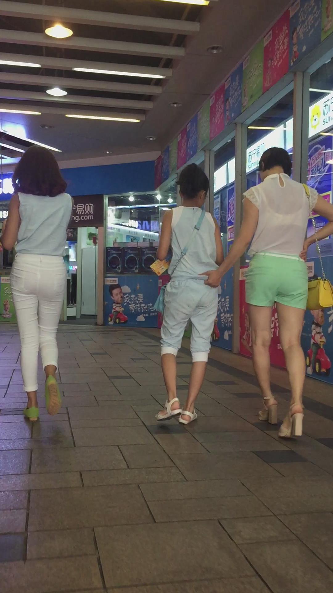 街拍逛商场的紧身白裤女孩 编号6153