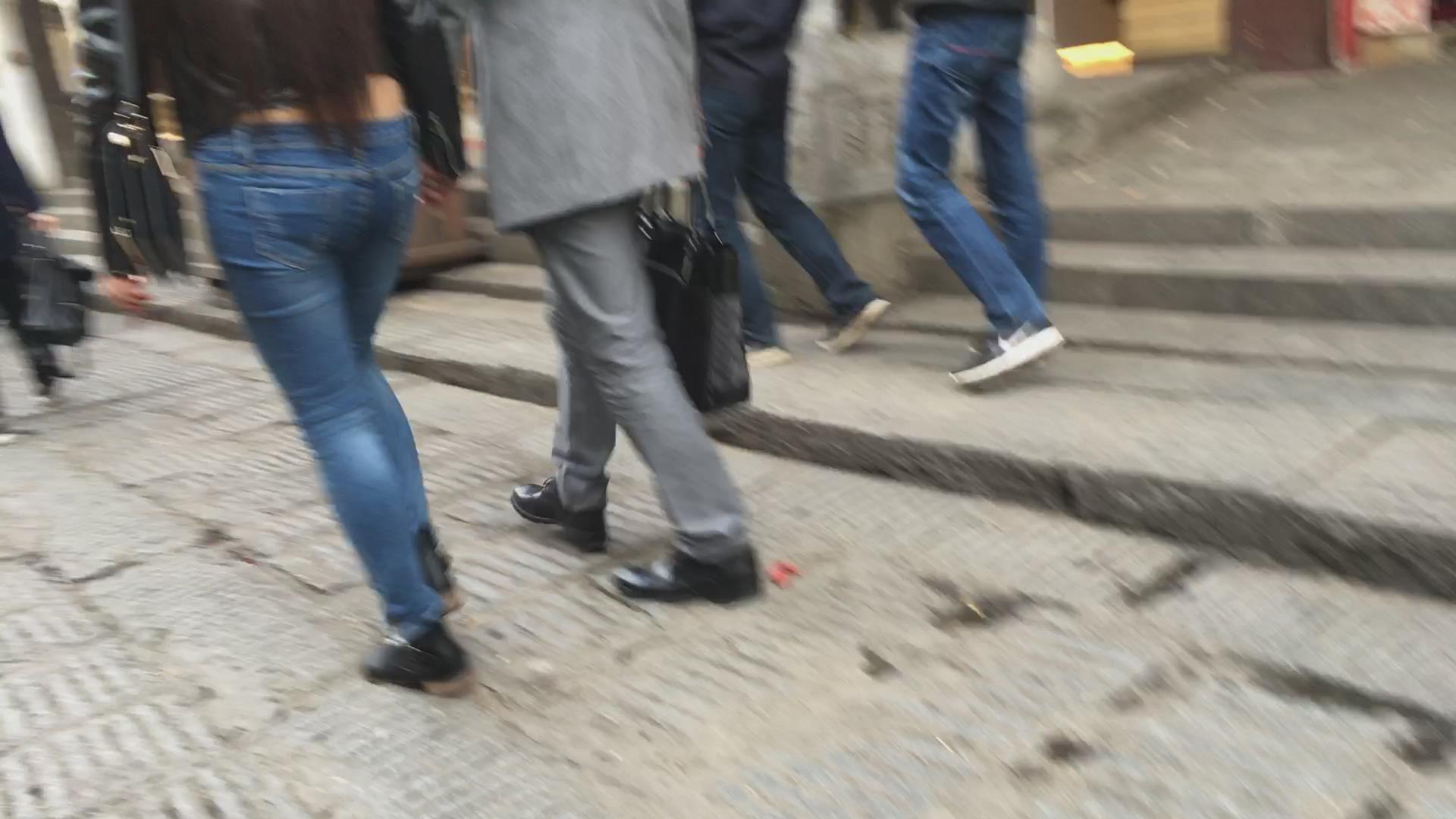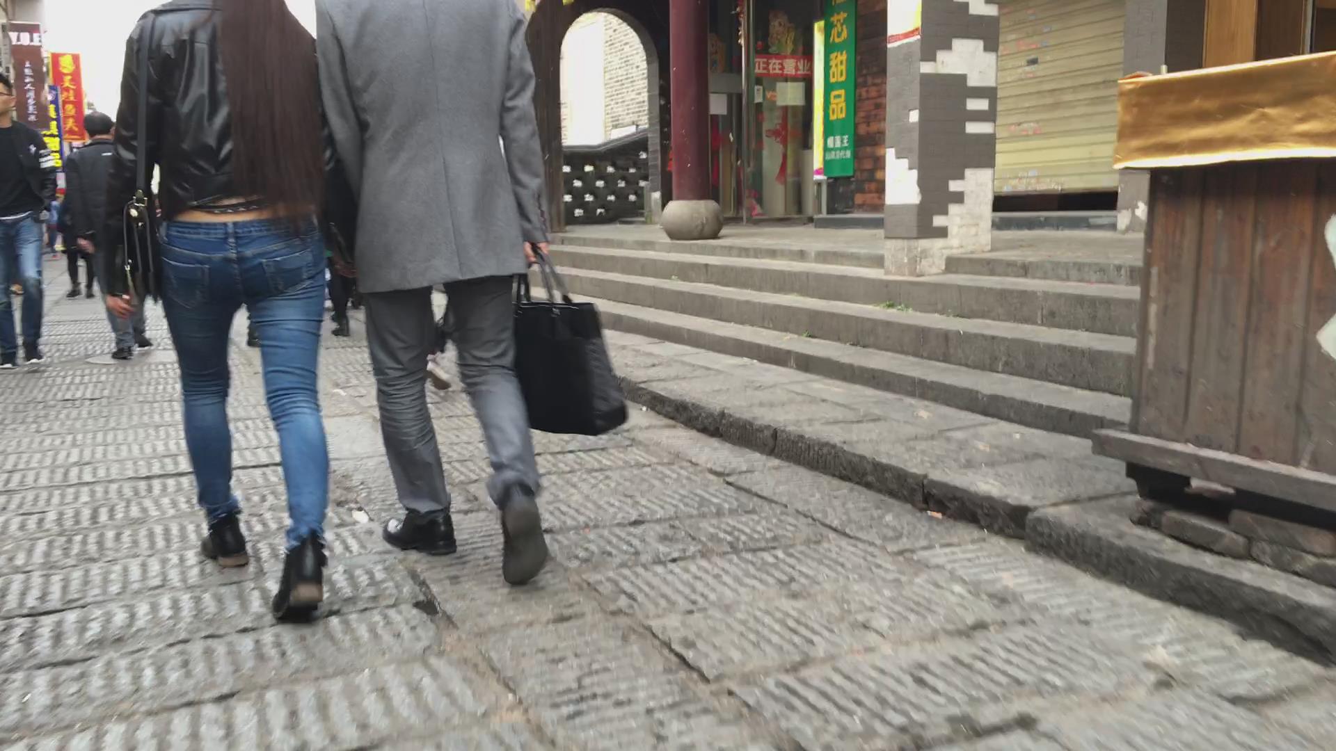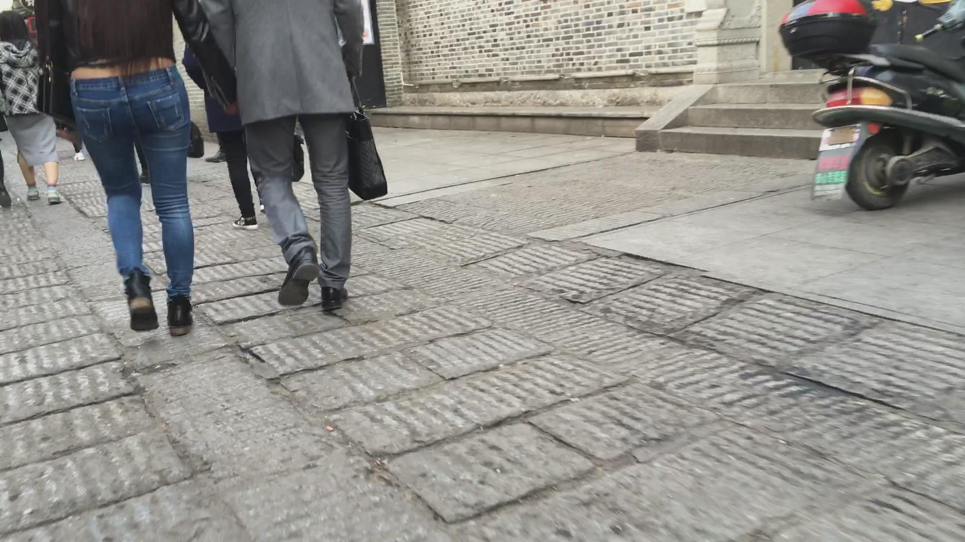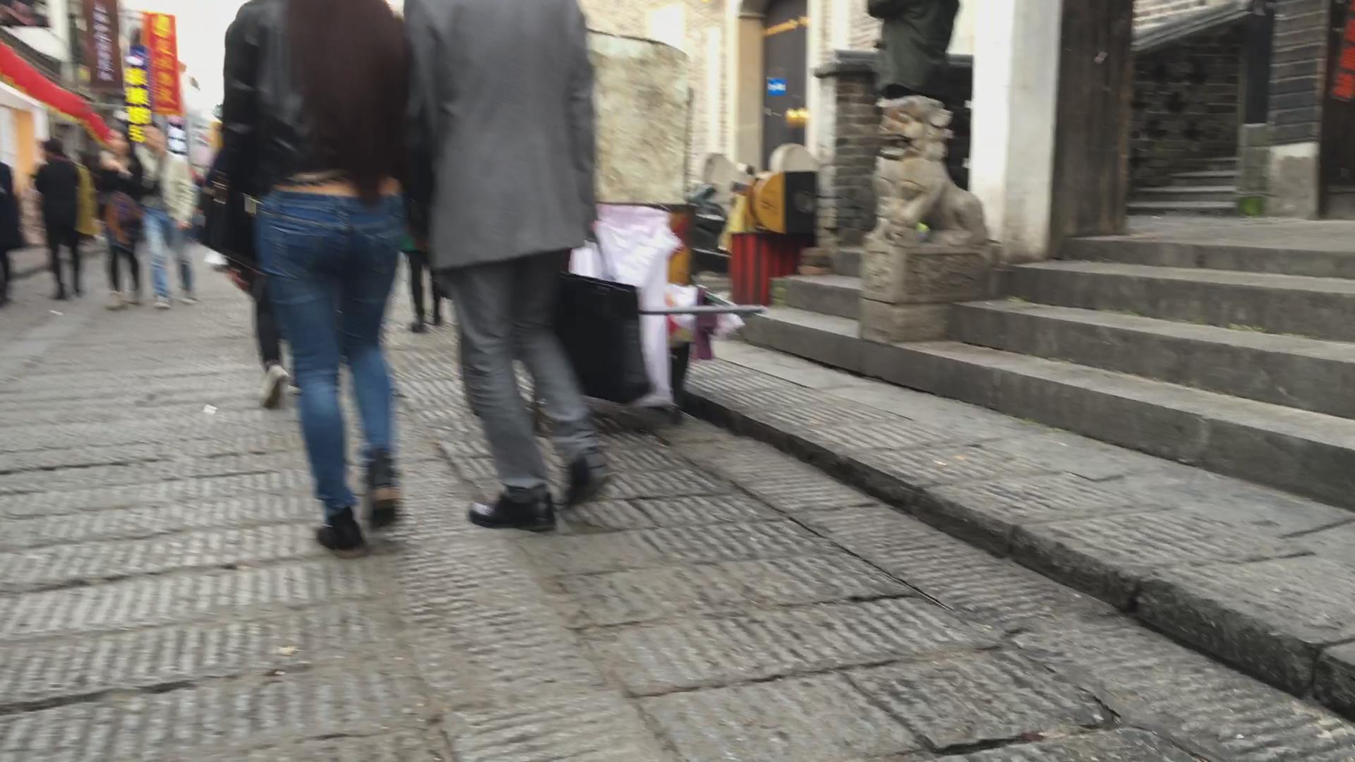 紧身黑色圆臀皮裤MM,紧绷得在太阳下都反光啦 编号5733