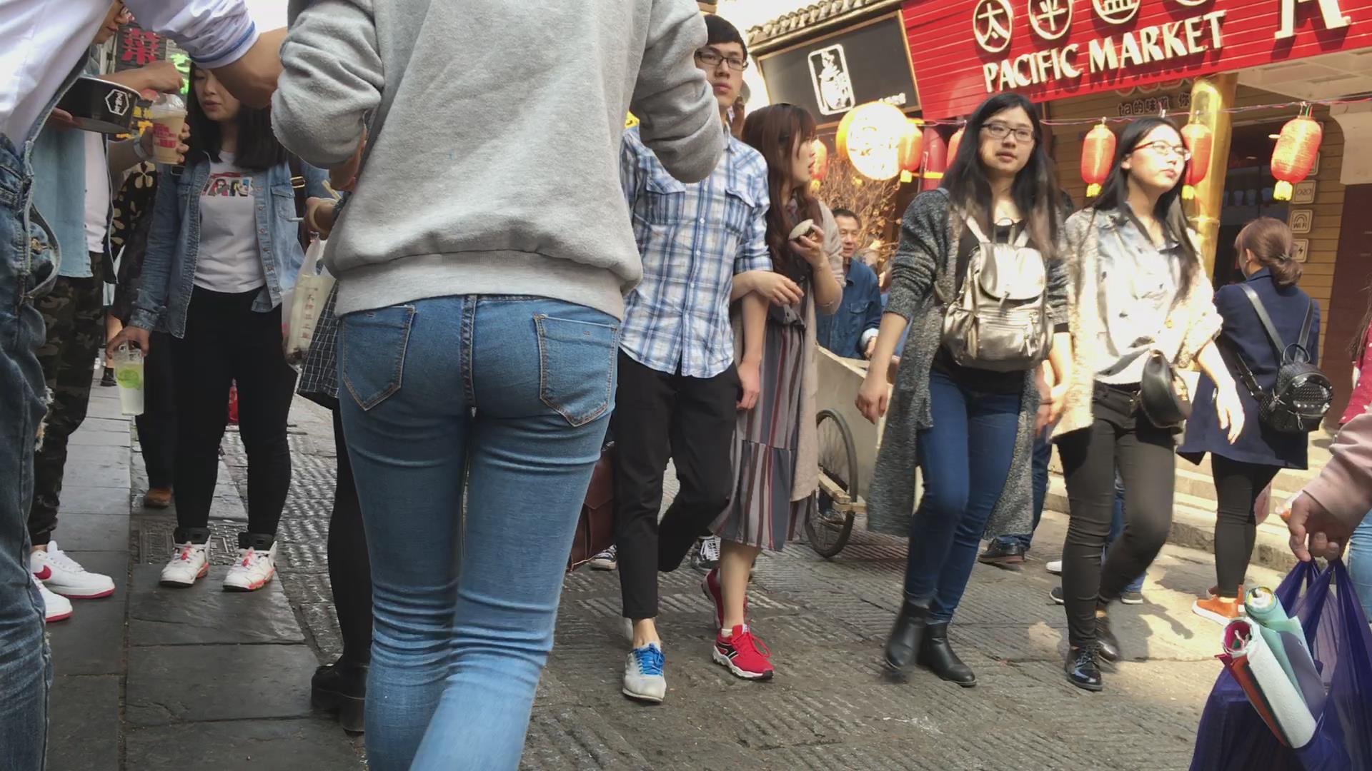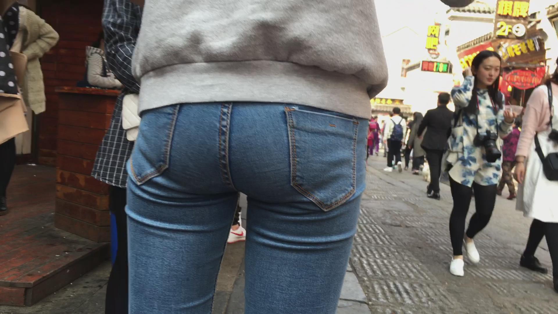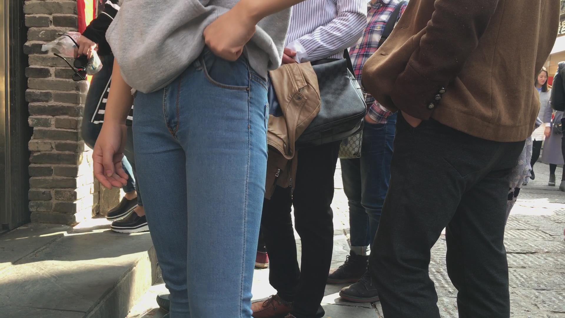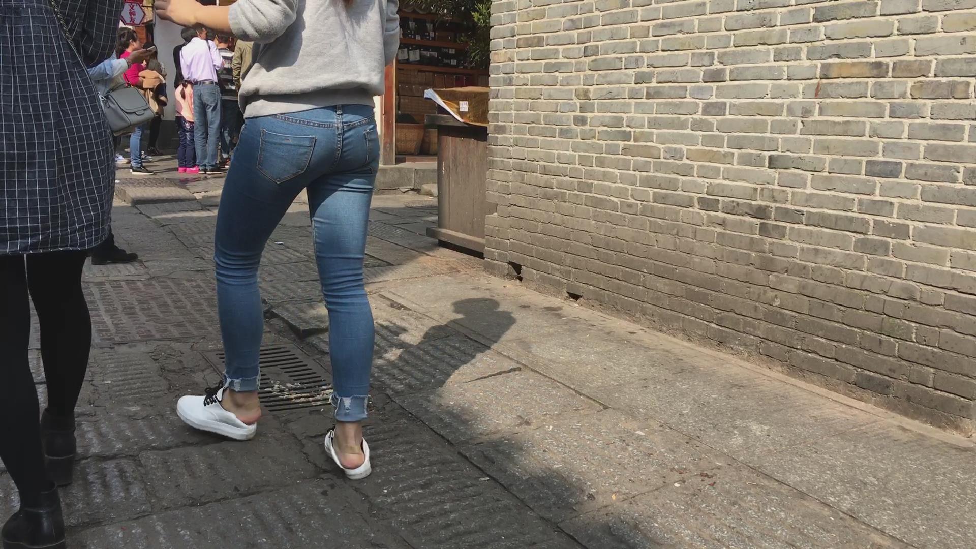 阳光下的紧身蓝牛美臀学生妹,PP结实坚挺 编号5734