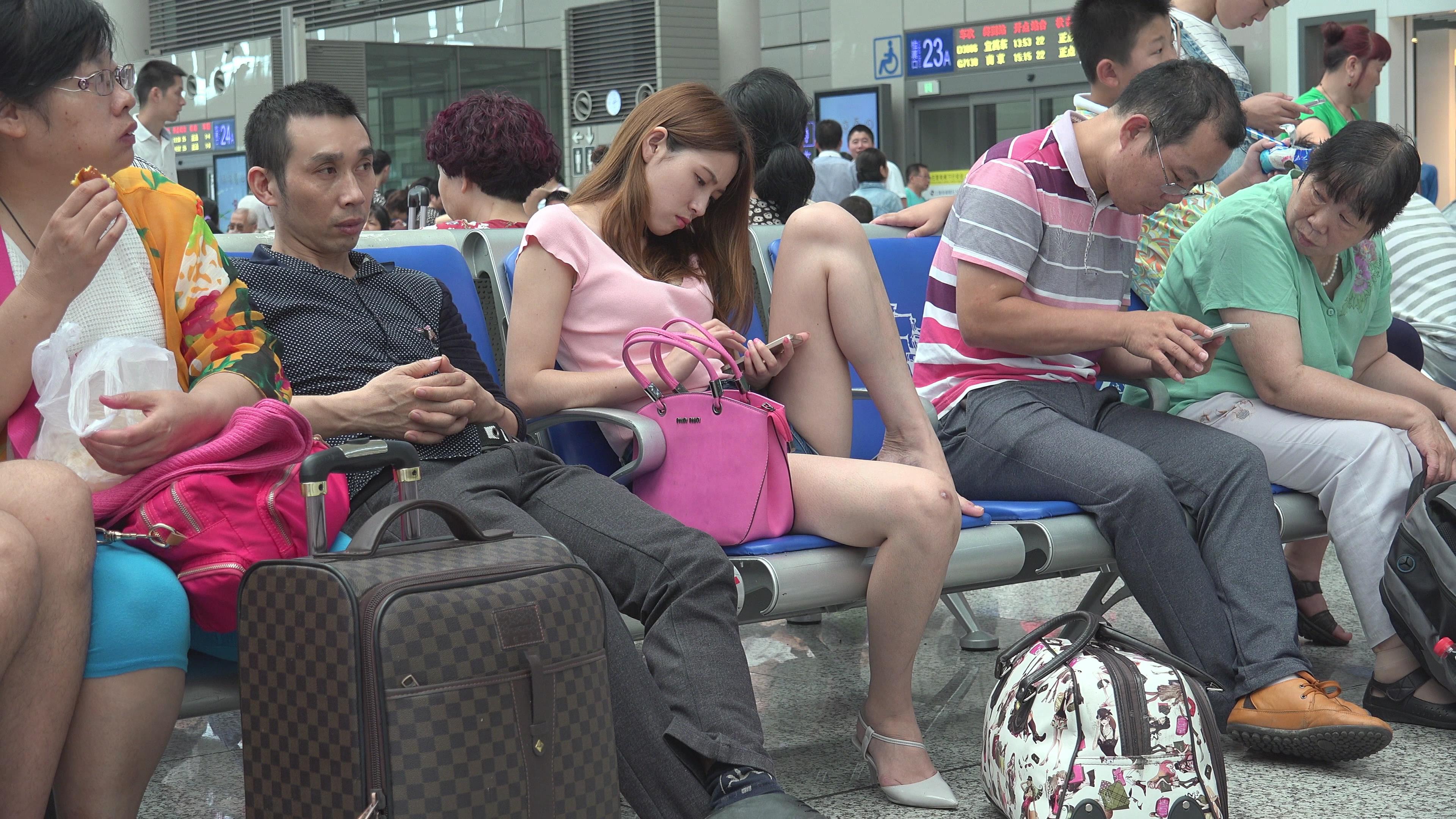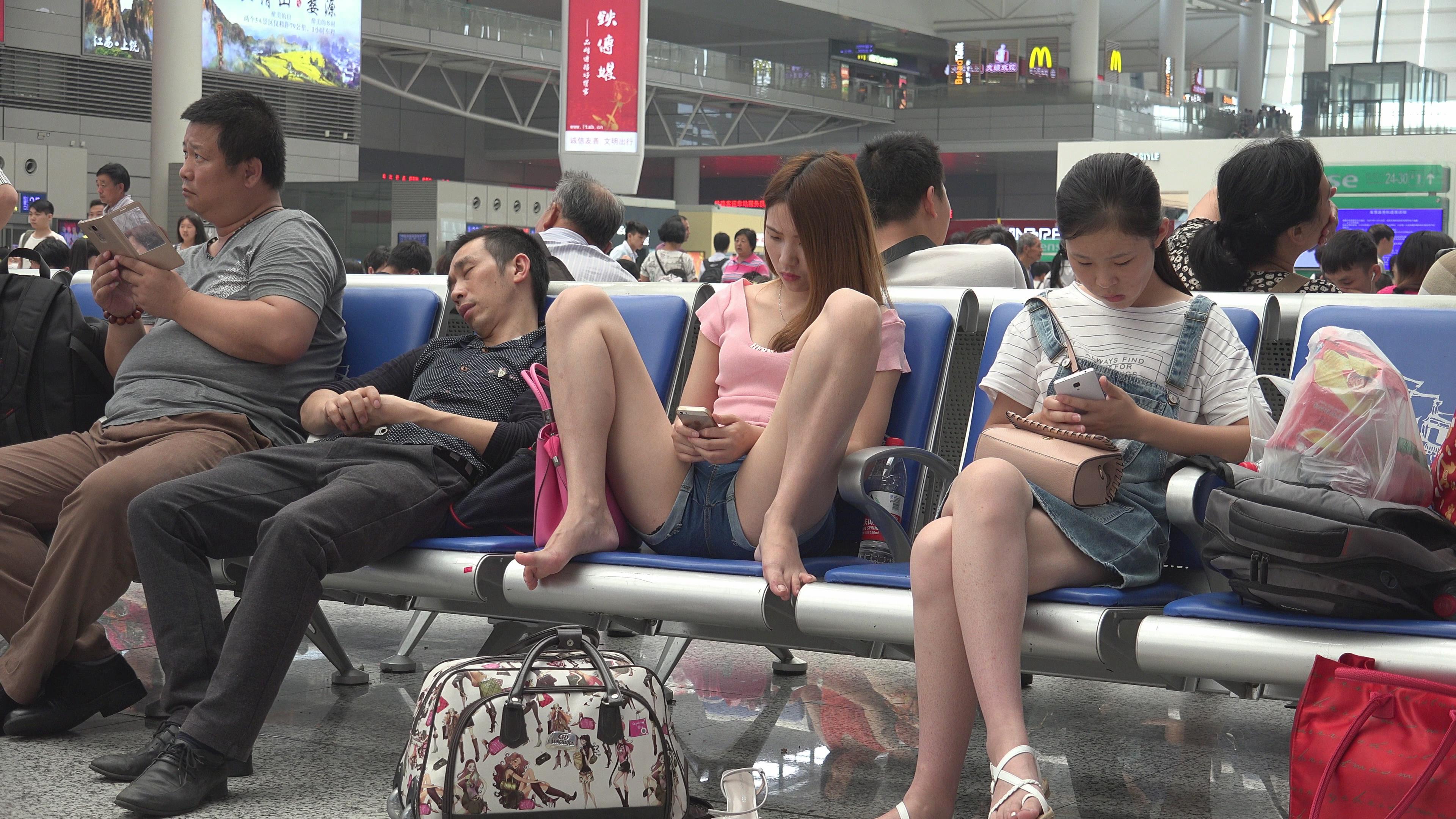 4K - 街拍美足漂亮小姐姐霸气的坐姿 编号3095