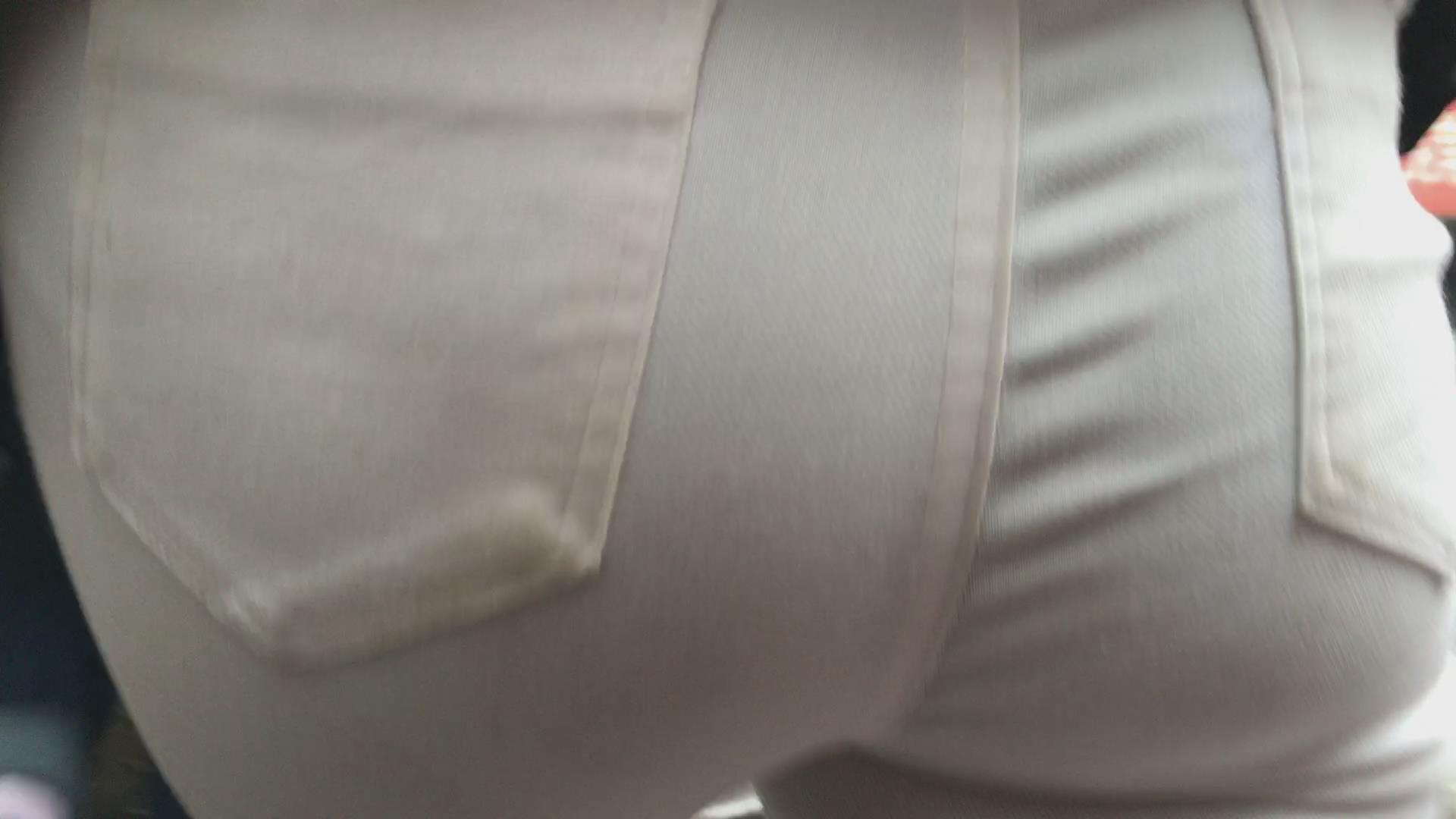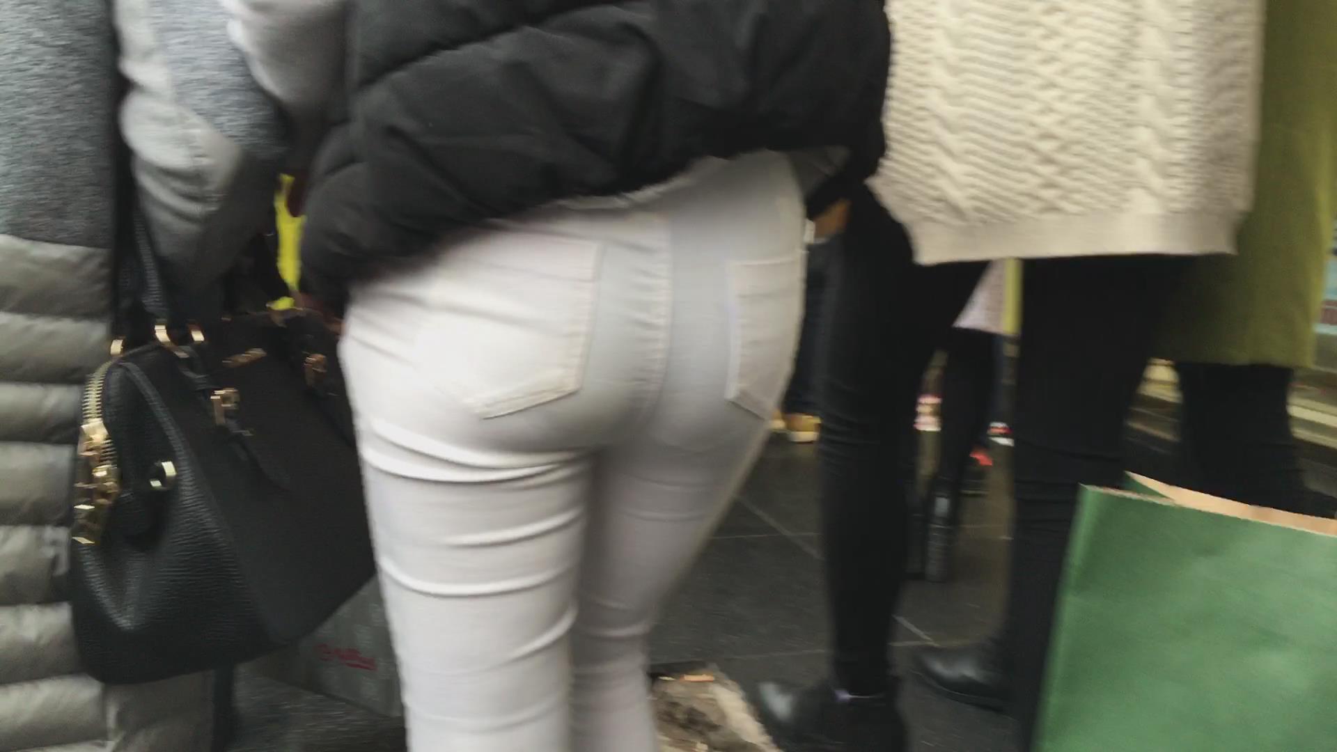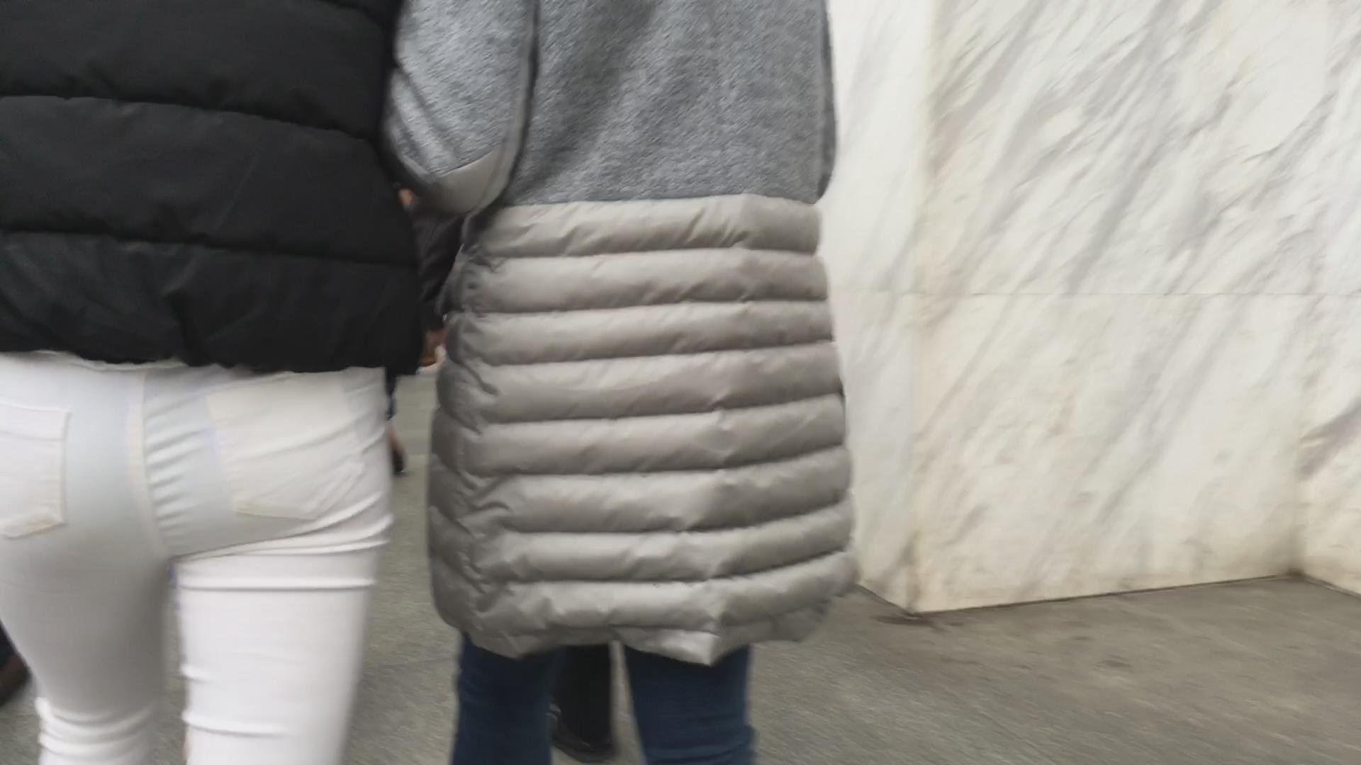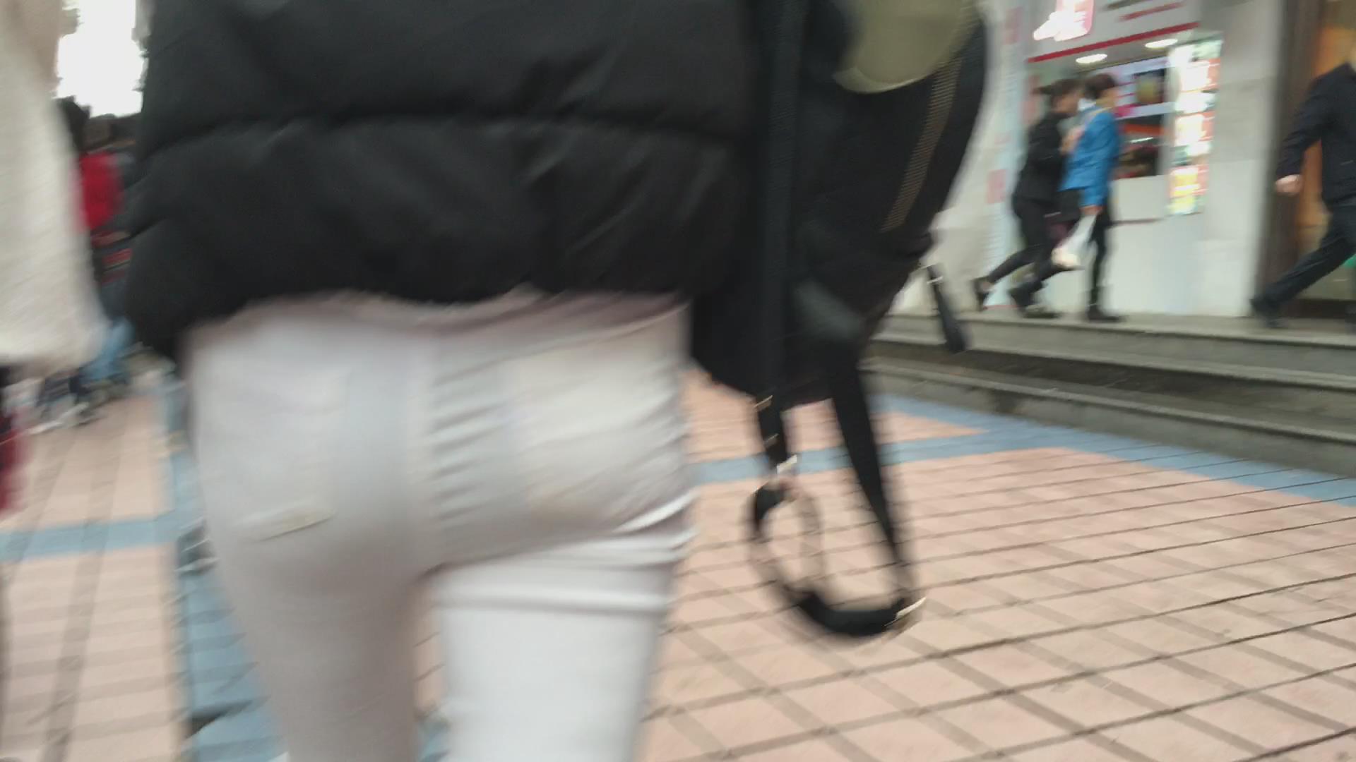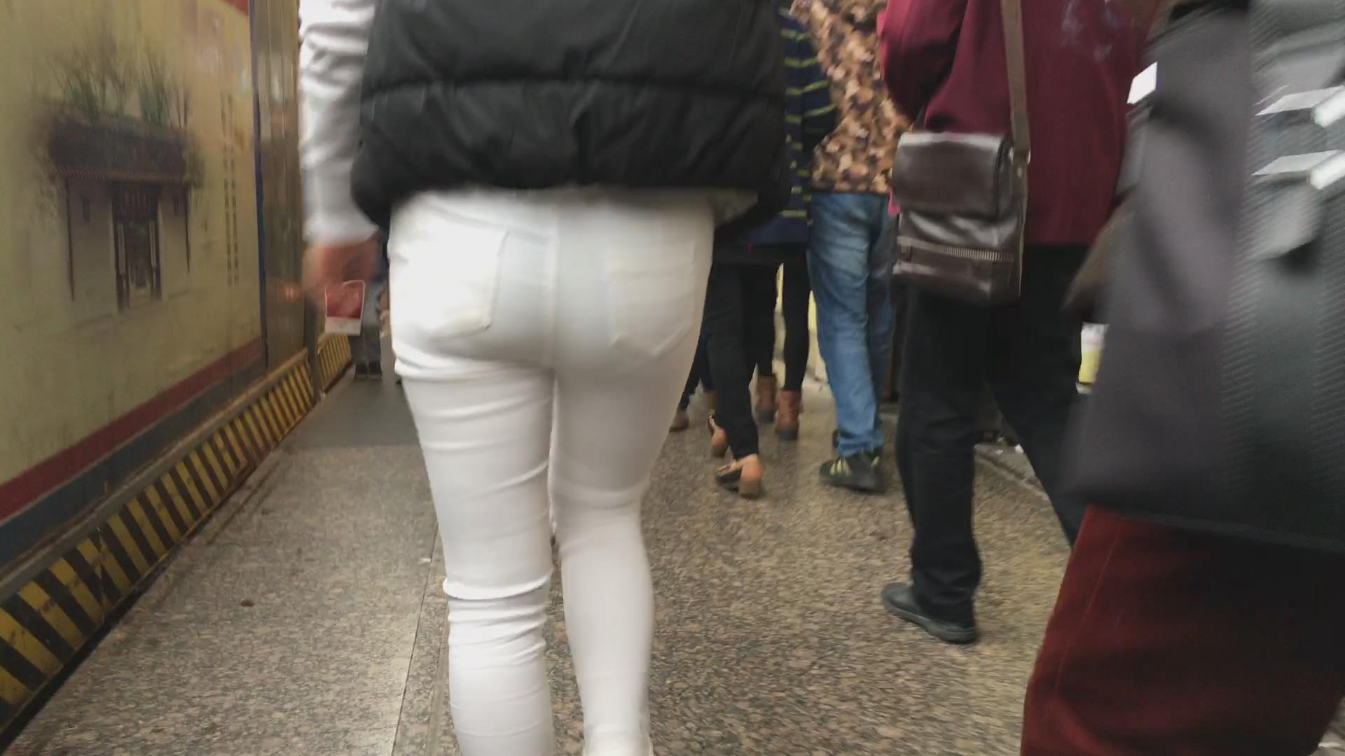 街拍冬日街头紧身丰臀白裤美女 编号5761