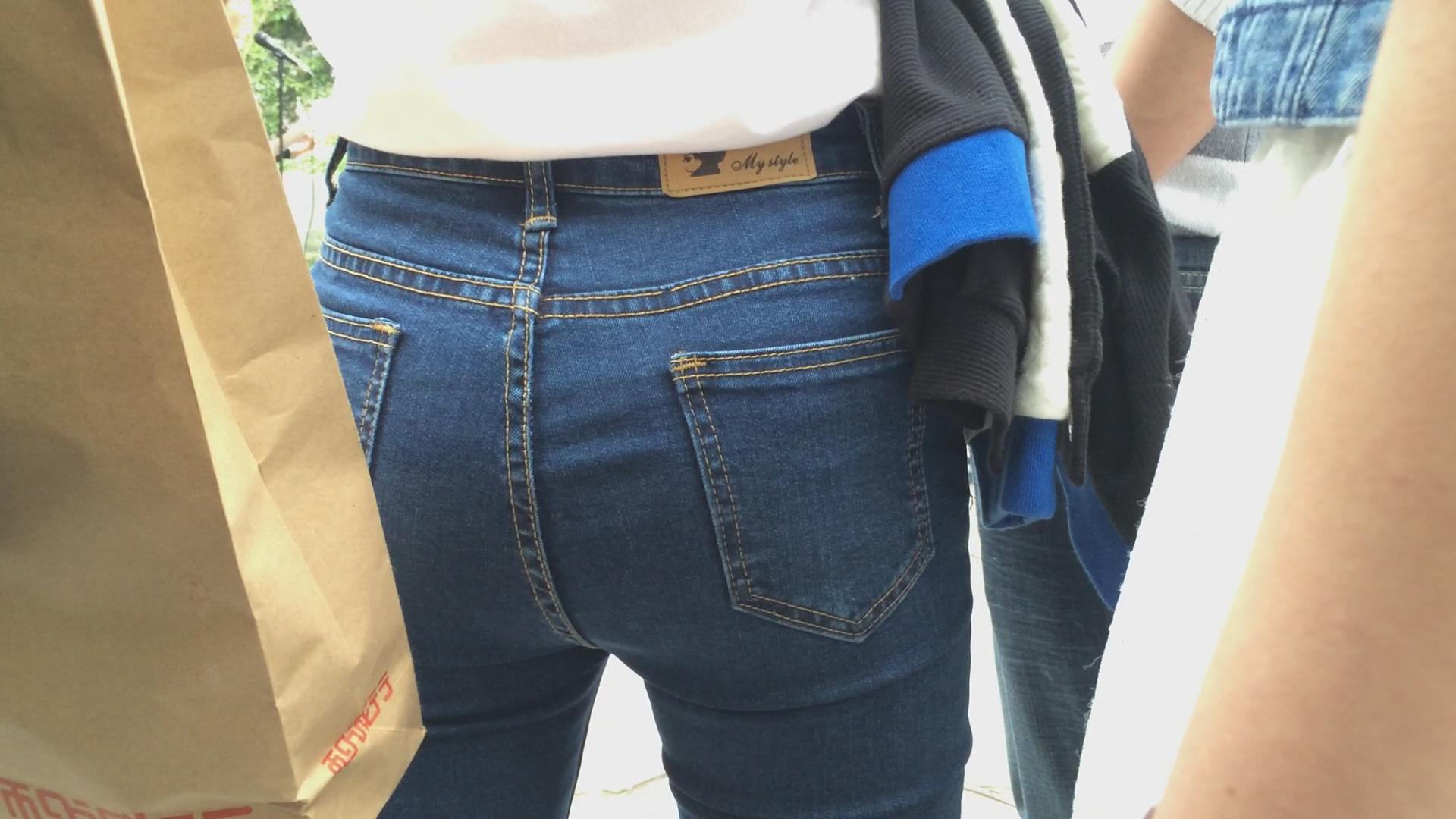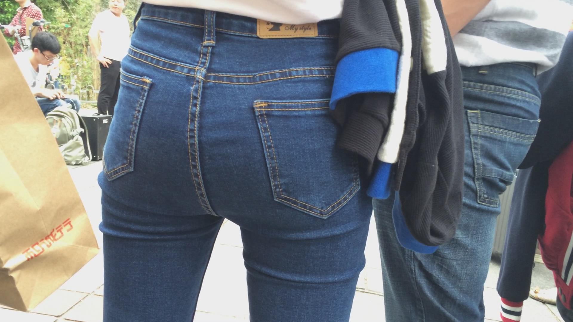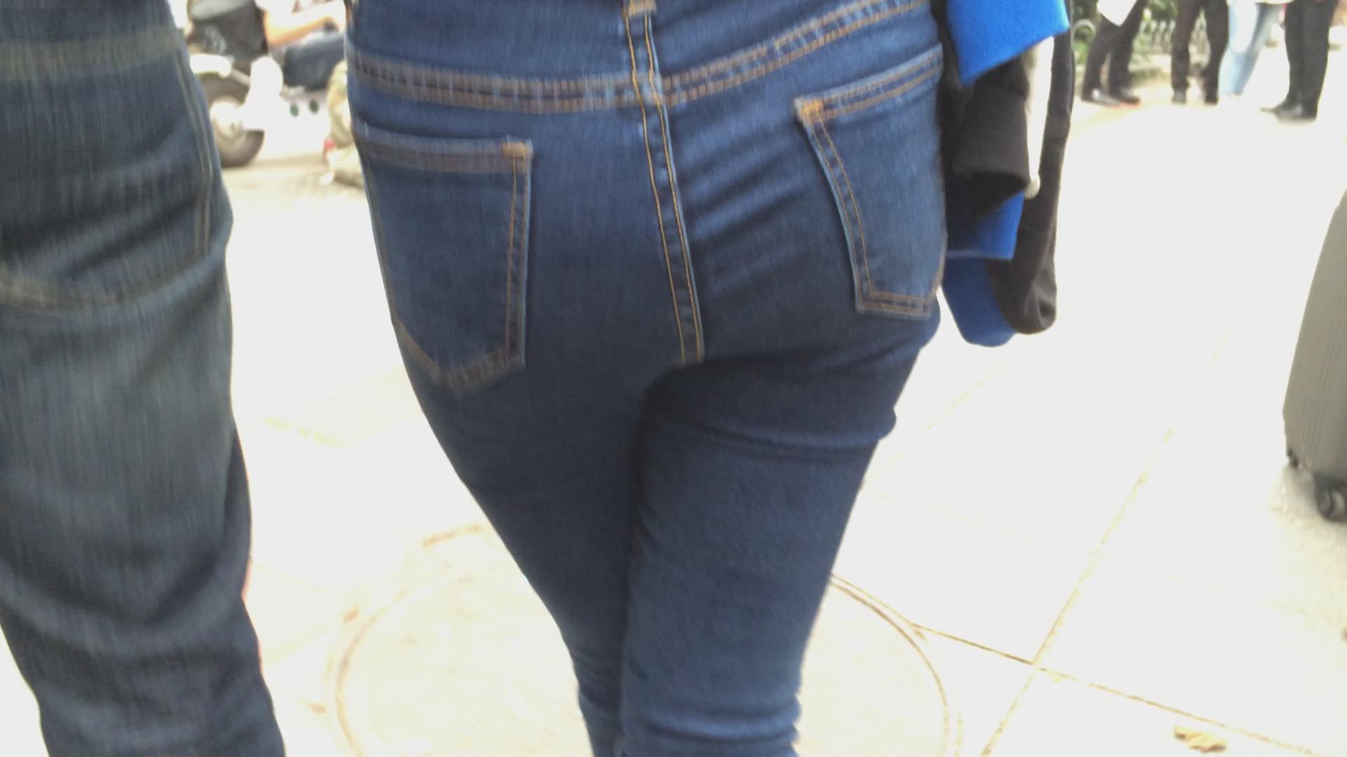 街拍极品紧身蓝牛美女,圆圆屁股蛋蛋 编号5770