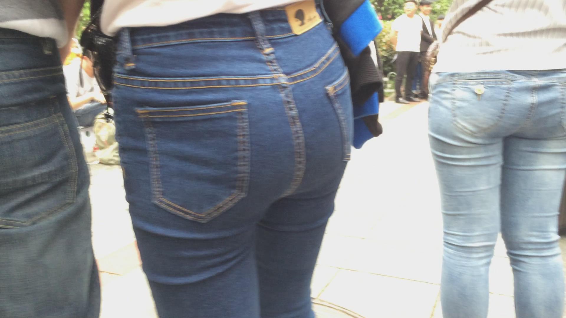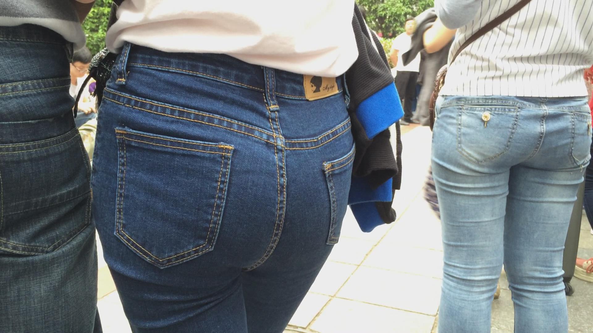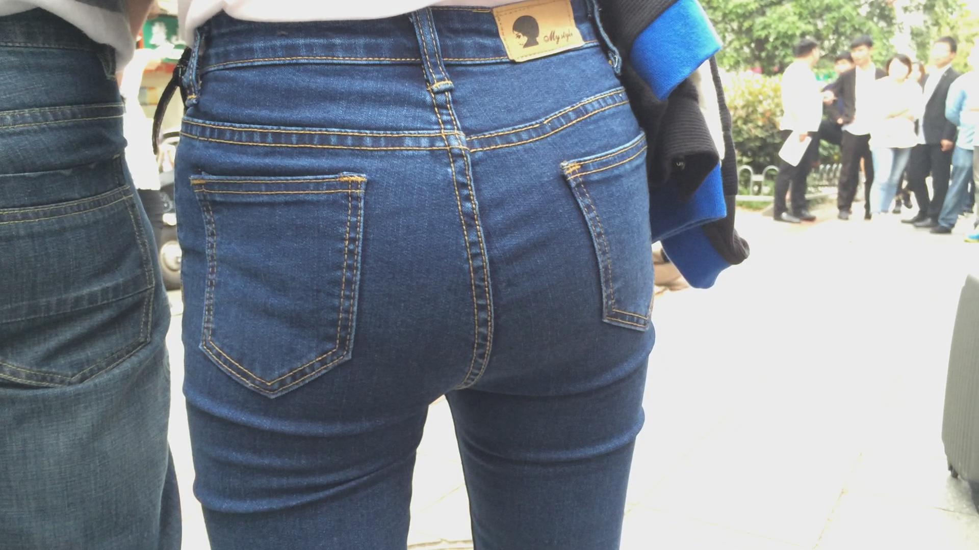 街拍极品紧身蓝牛美女,圆圆屁股蛋蛋 编号5770