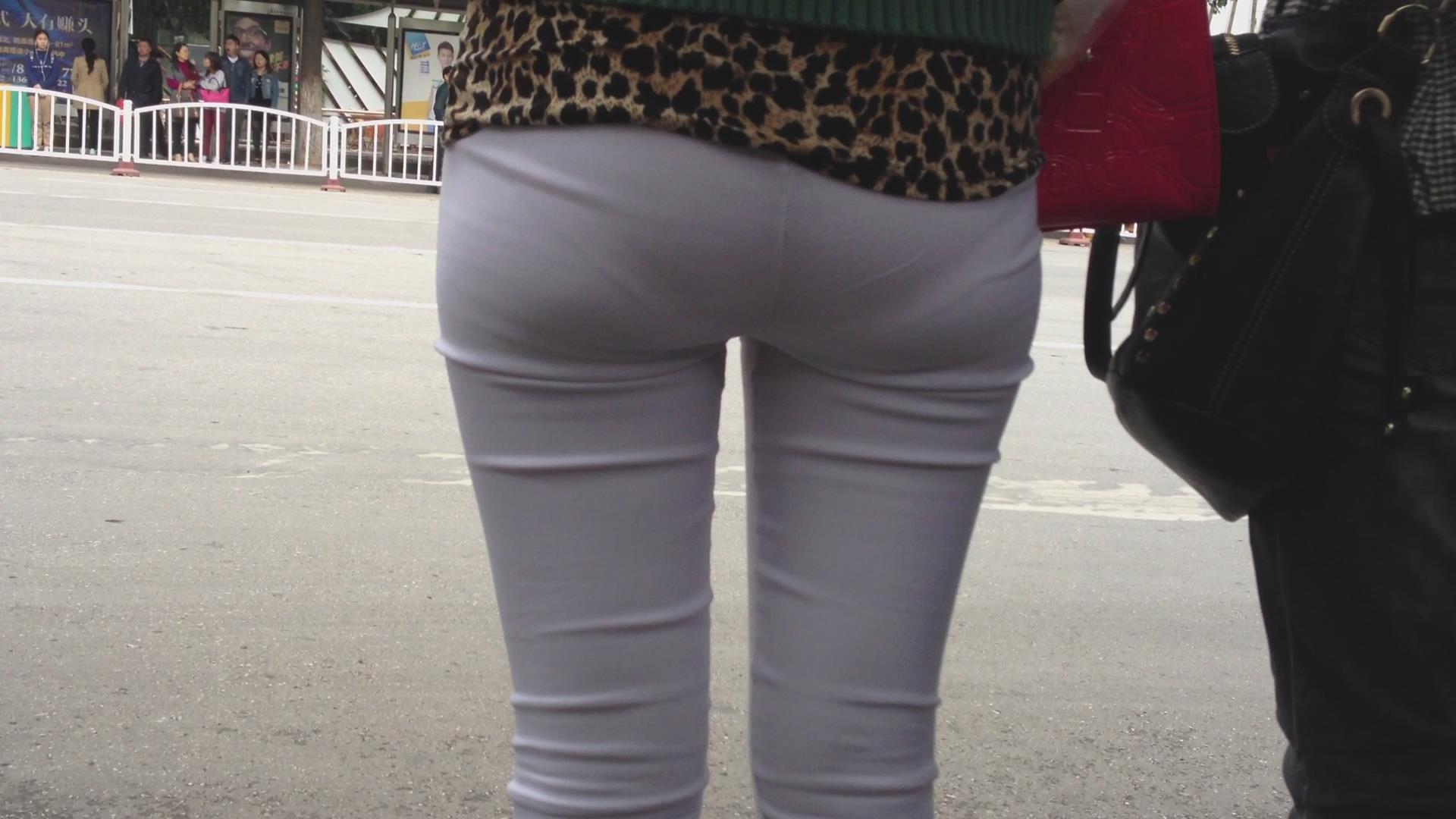 圆润紧致的白裤美女,倒三角勒痕很清晰 编号5772