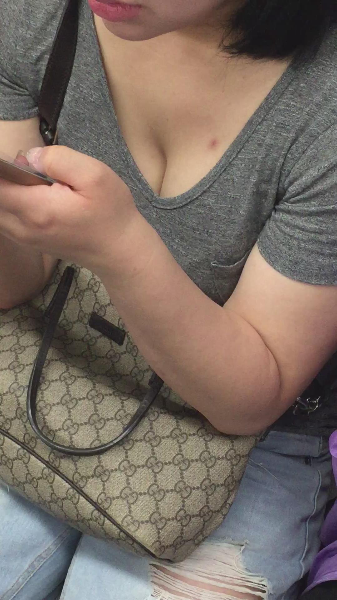 地铁拍摄玩手机的丰满美女,事业线诱人! 编号5813
