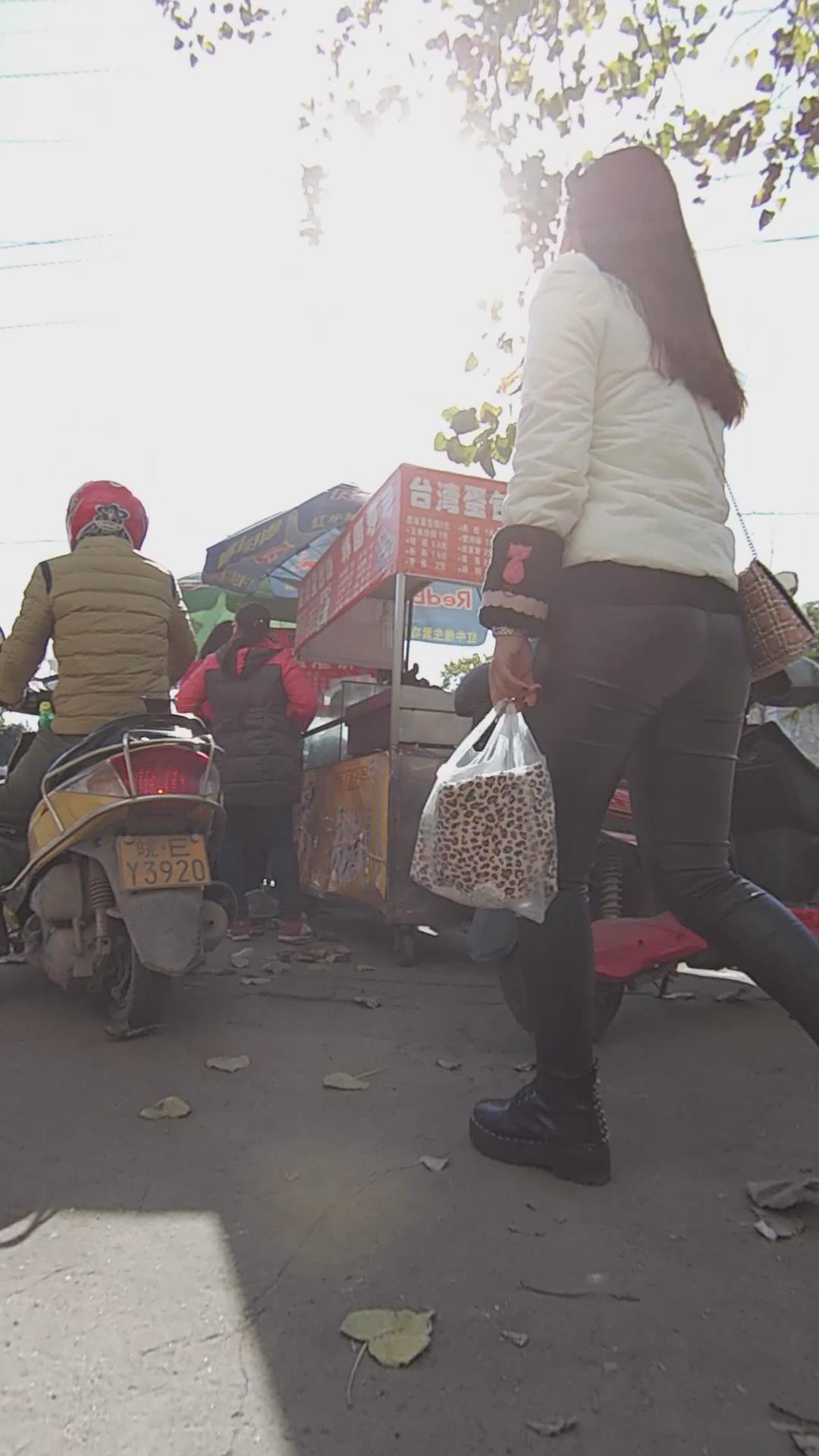 街拍超级紧身皮裤肥臀饱满熟女 编号5832