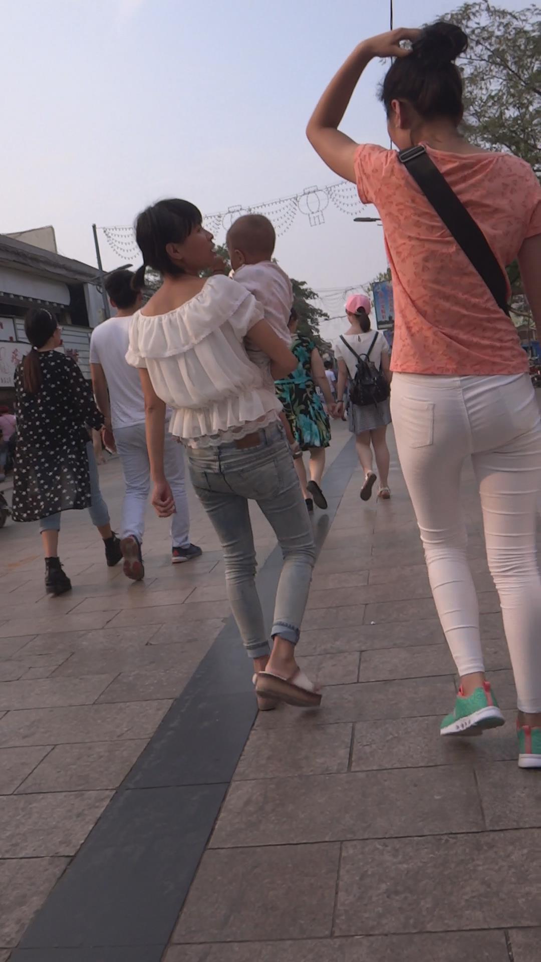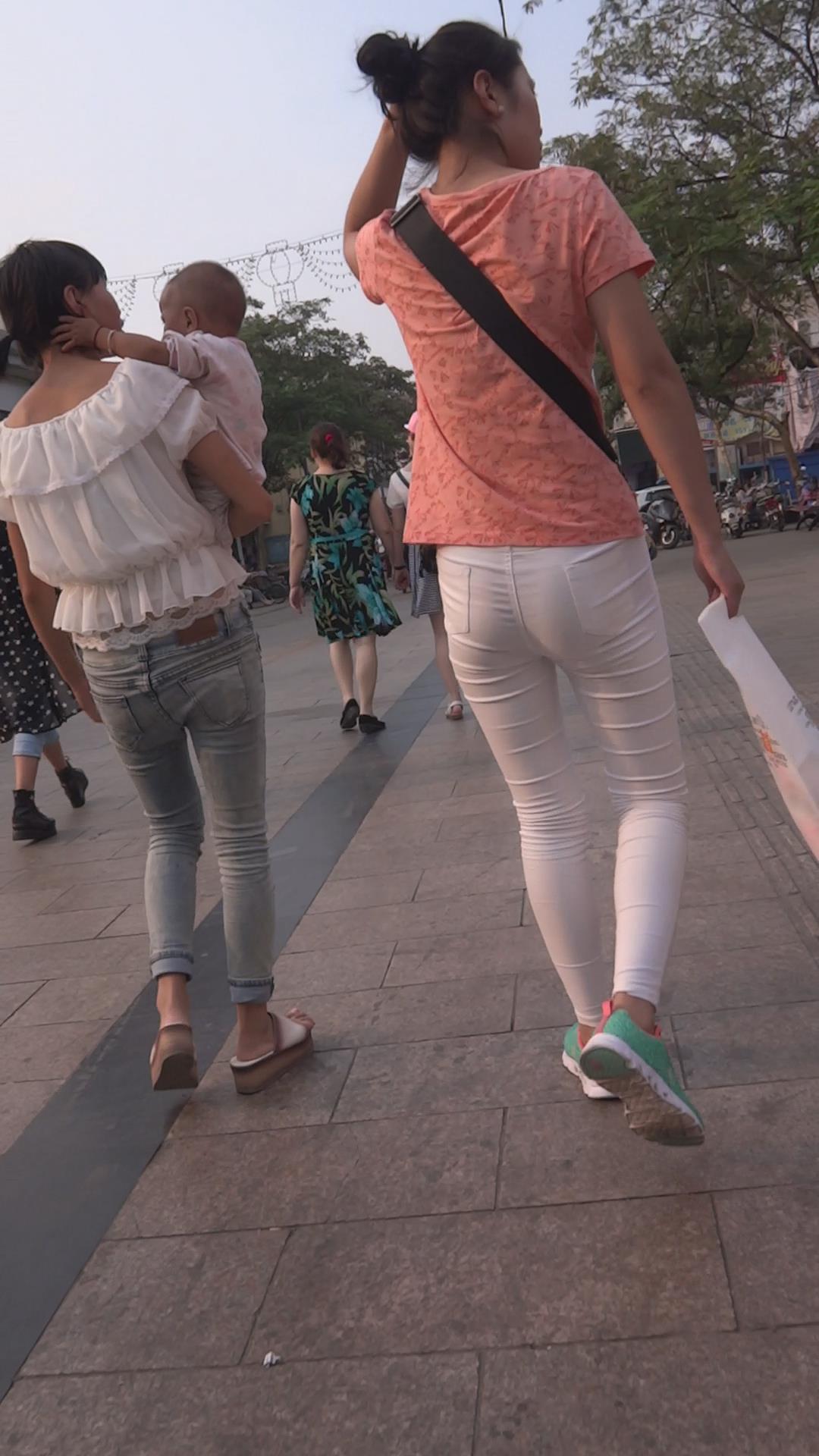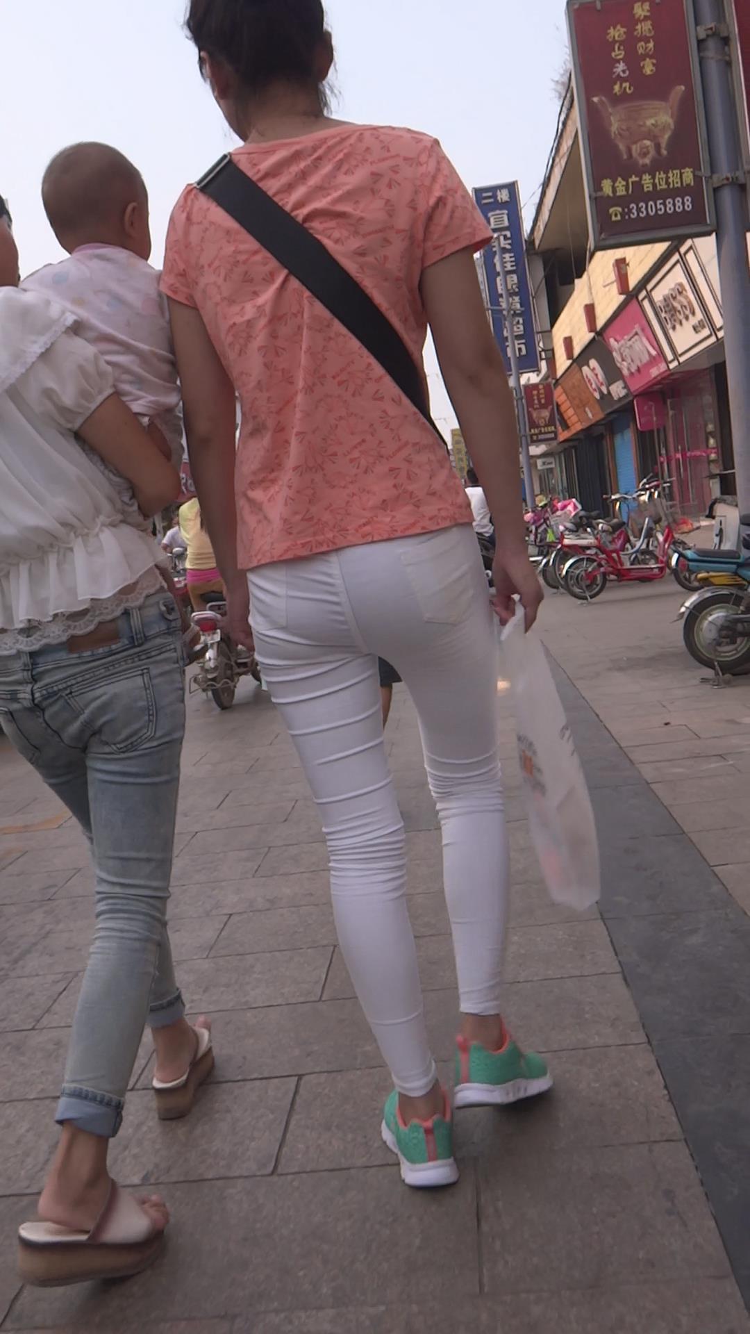 紧身白裤娇小身材丸子头美女 编号5861