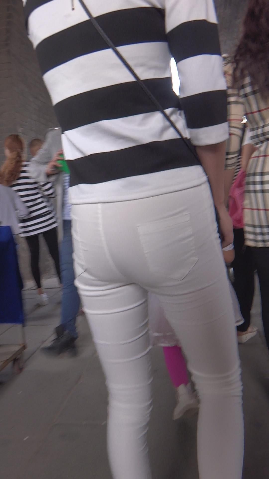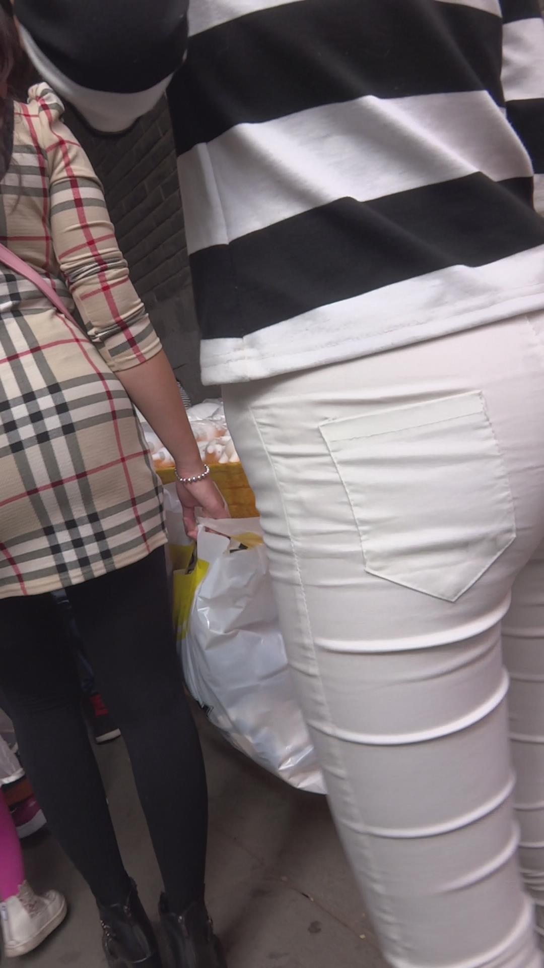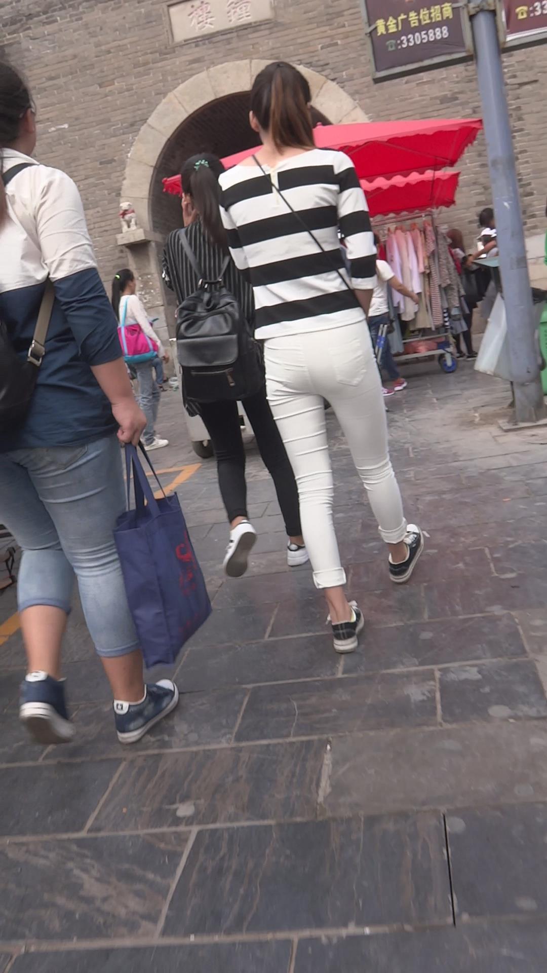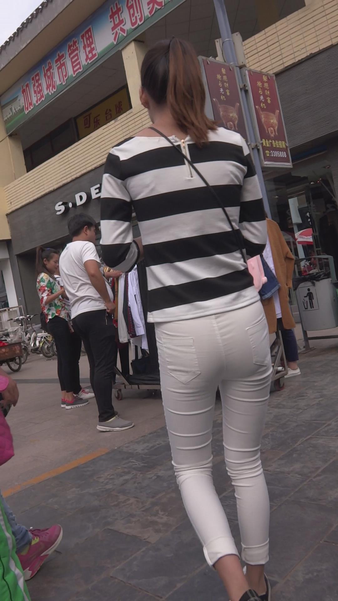 街拍紧身白裤苗条细腿小美女 编号5862