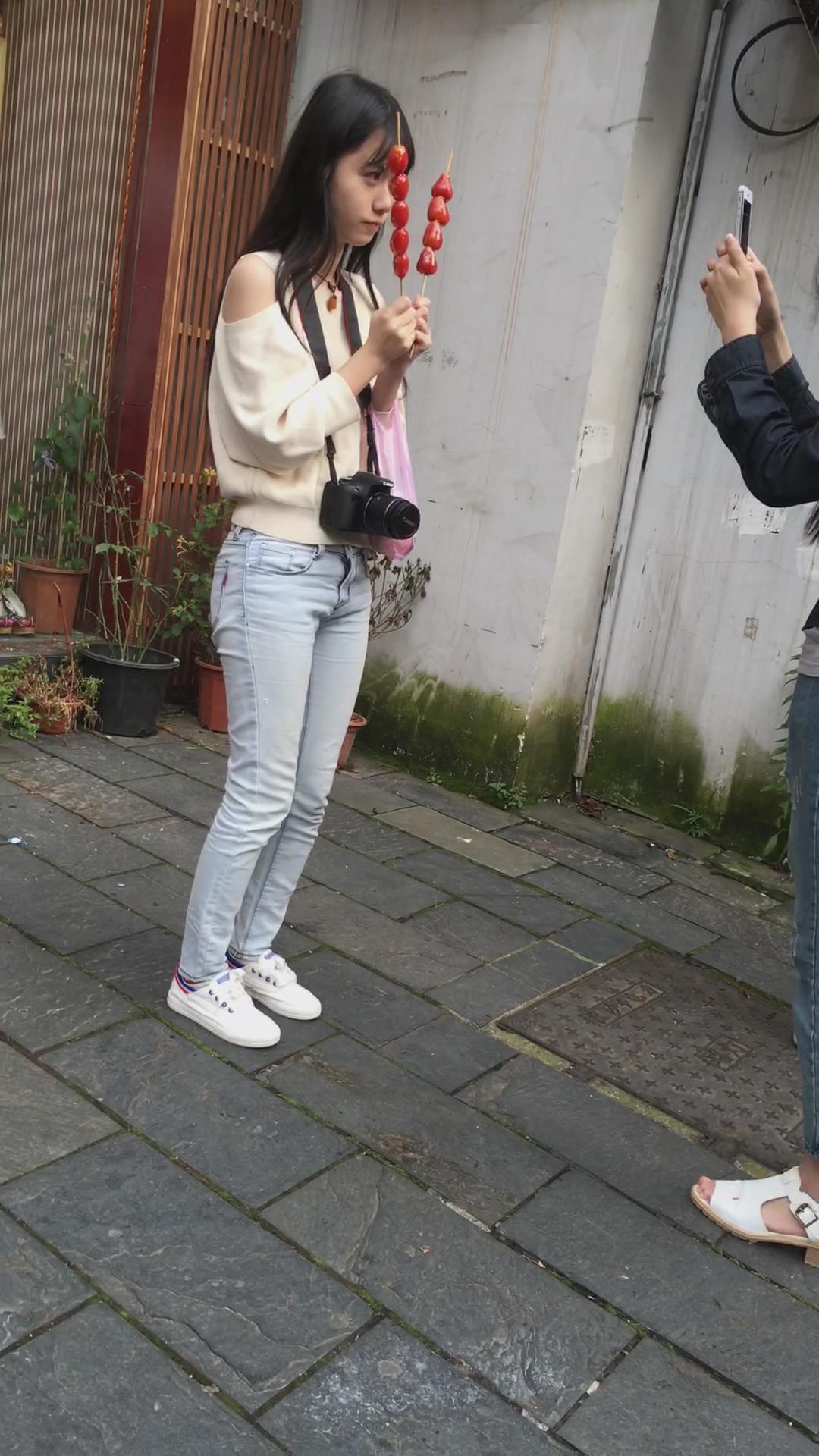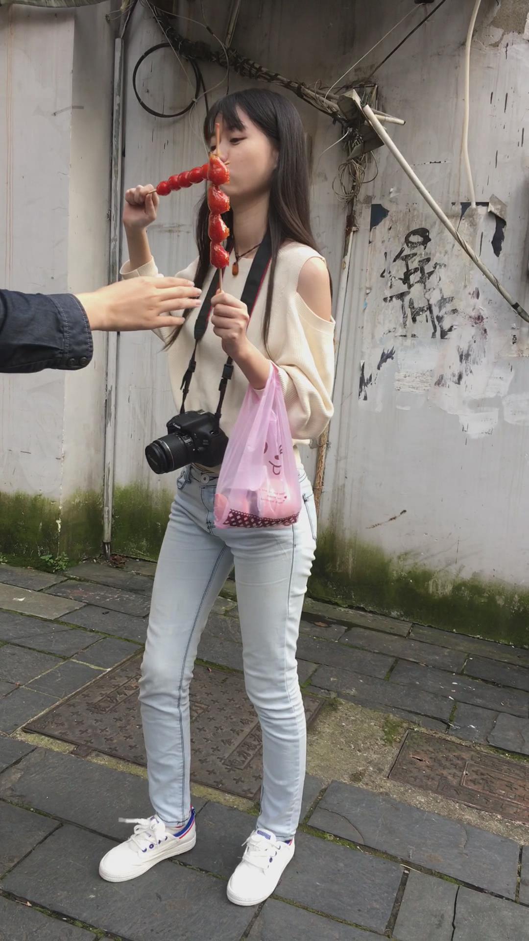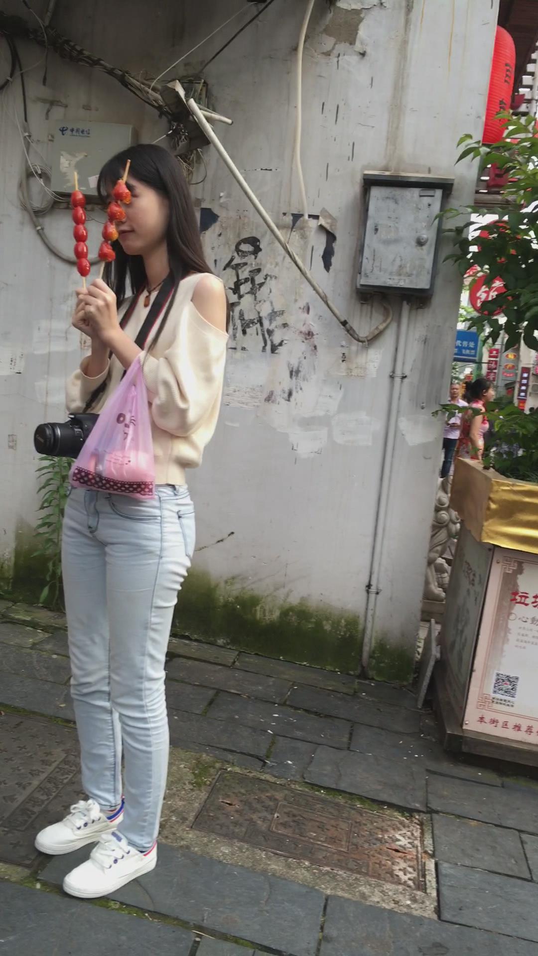 爱吃冰糖葫芦的清秀牛仔裤美女。 编号5870