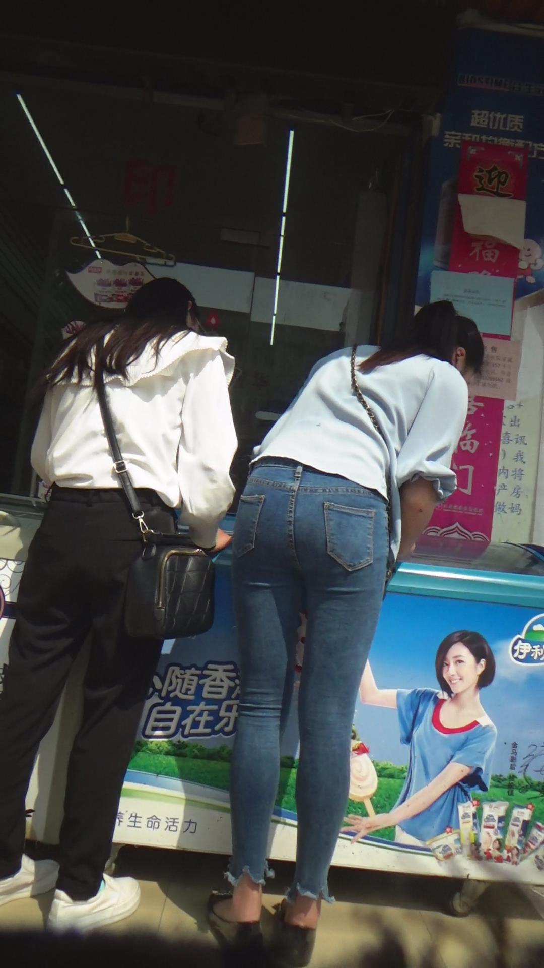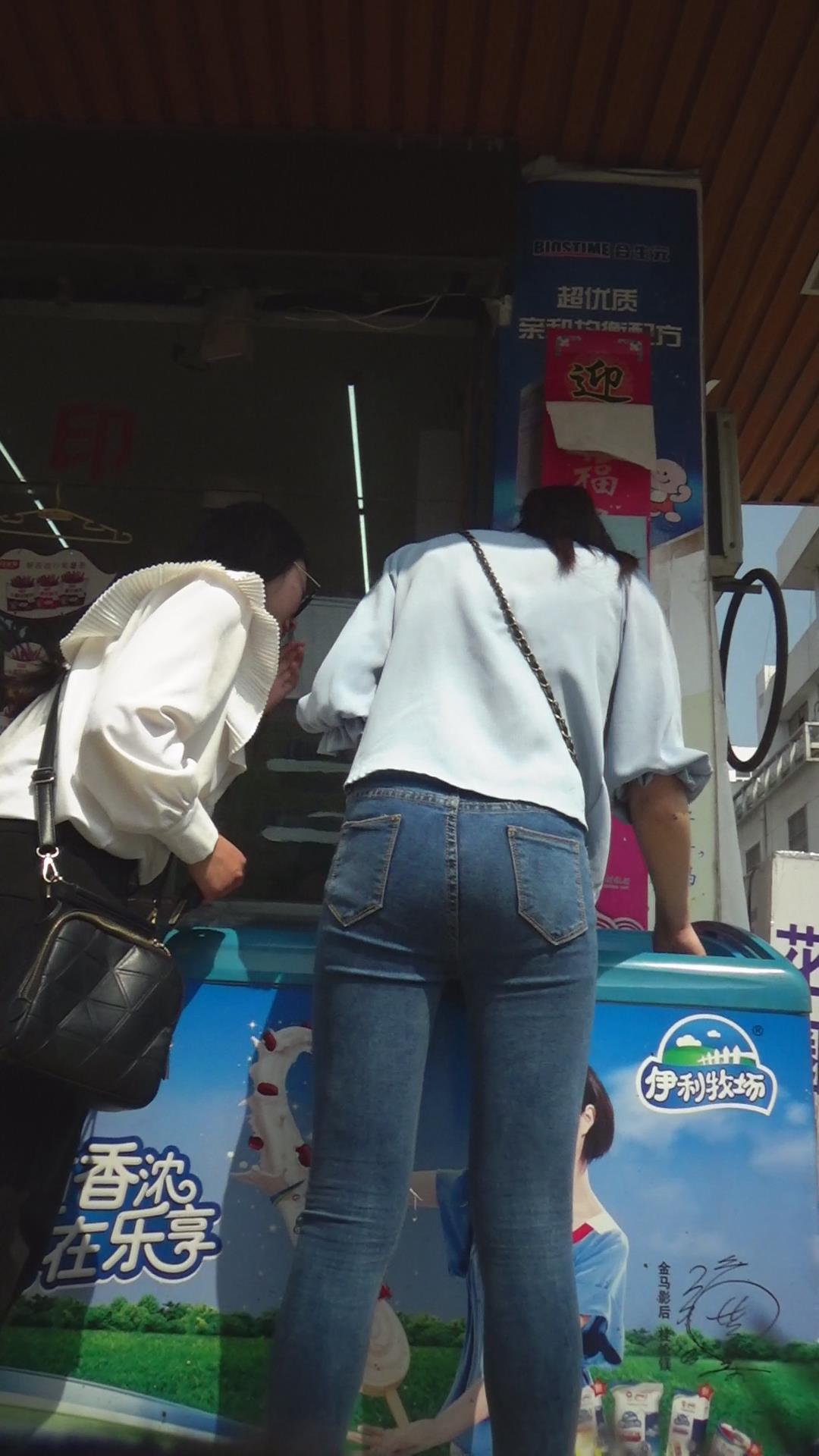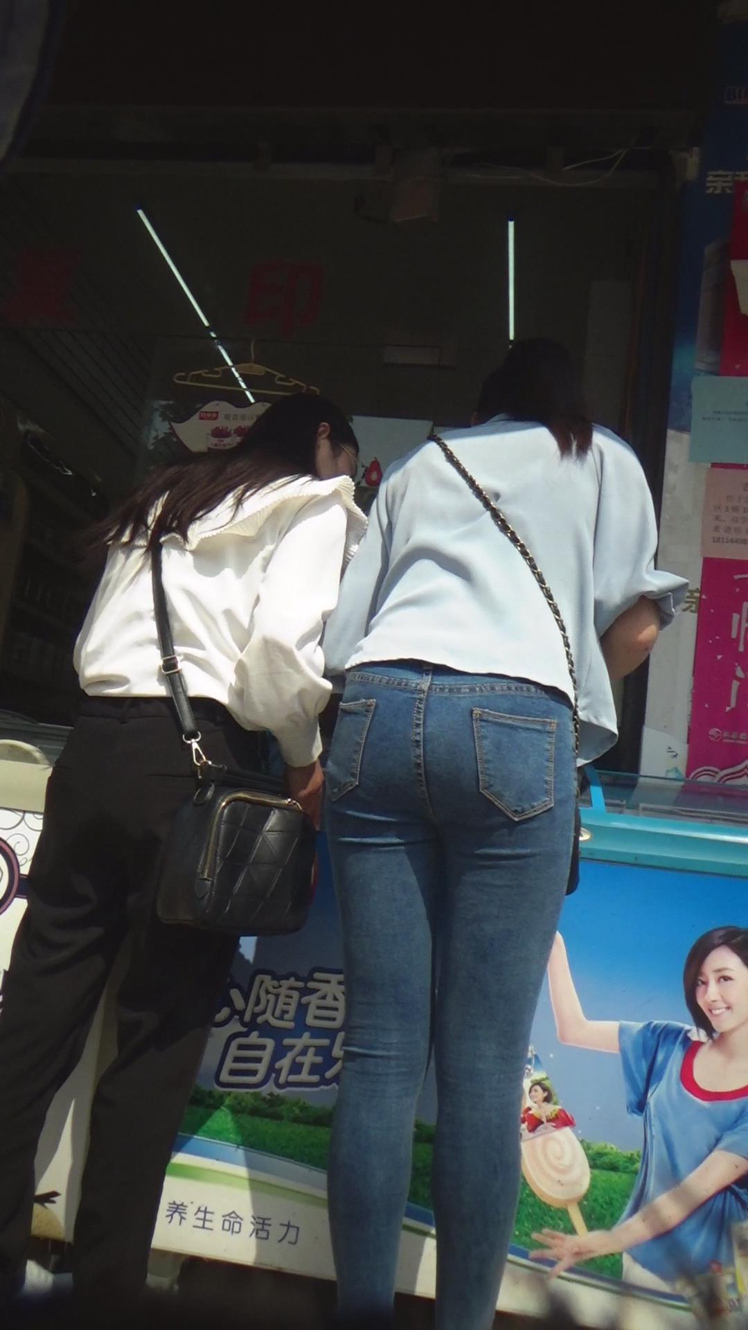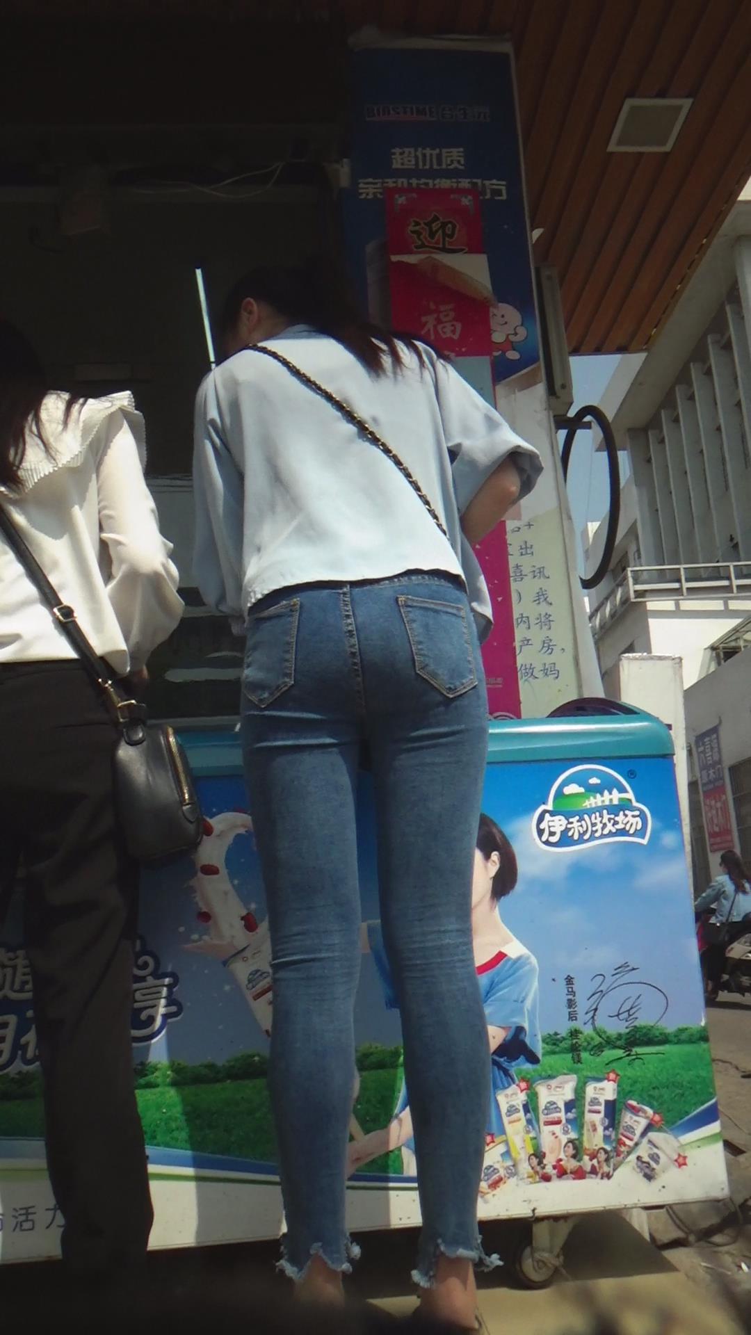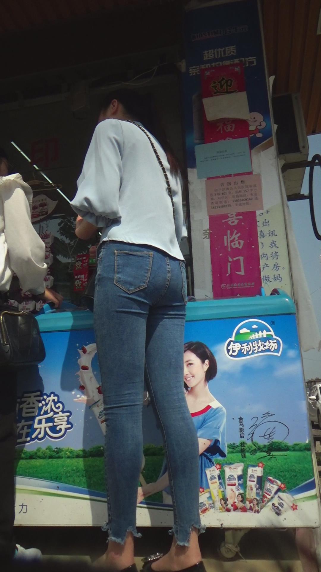紧绷到令人窒息的蓝色牛仔裤美女 编号5882