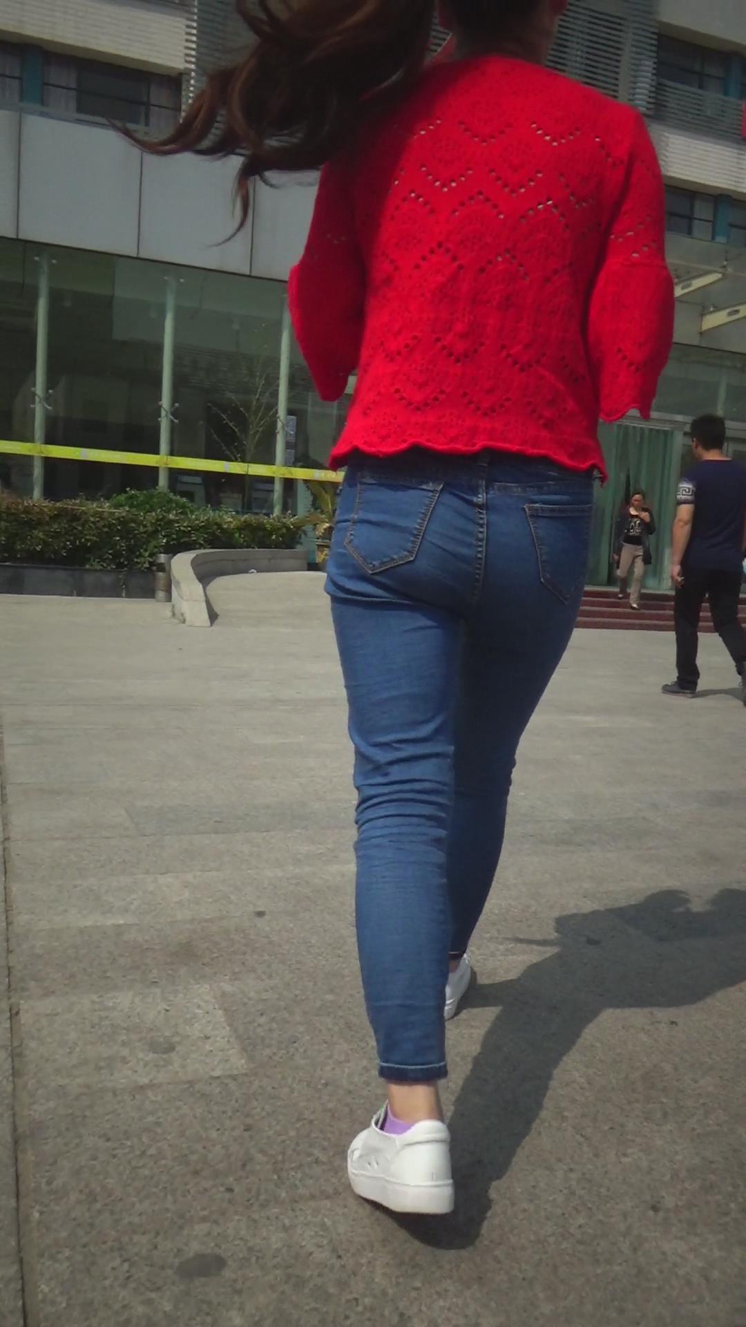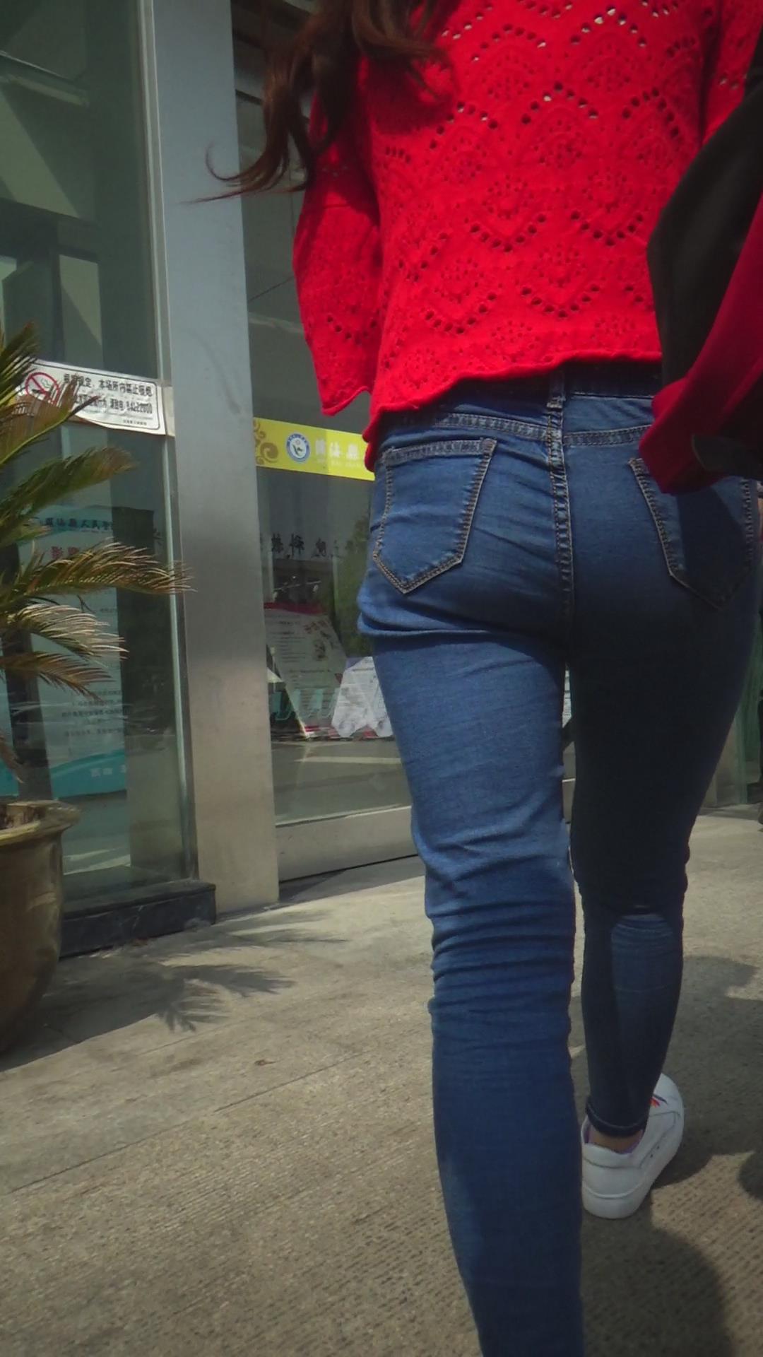 街拍紧身蓝牛美女 编号5883
