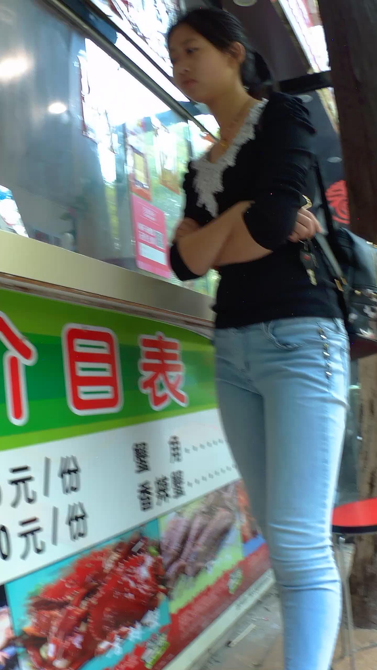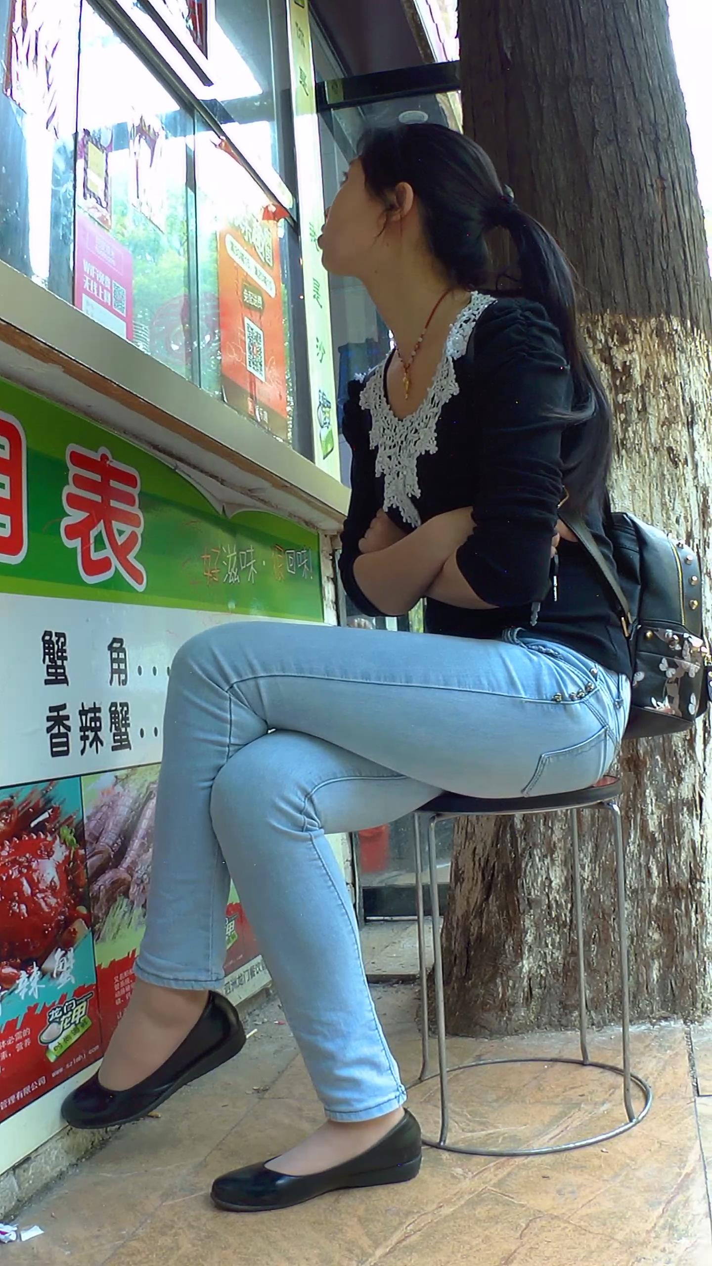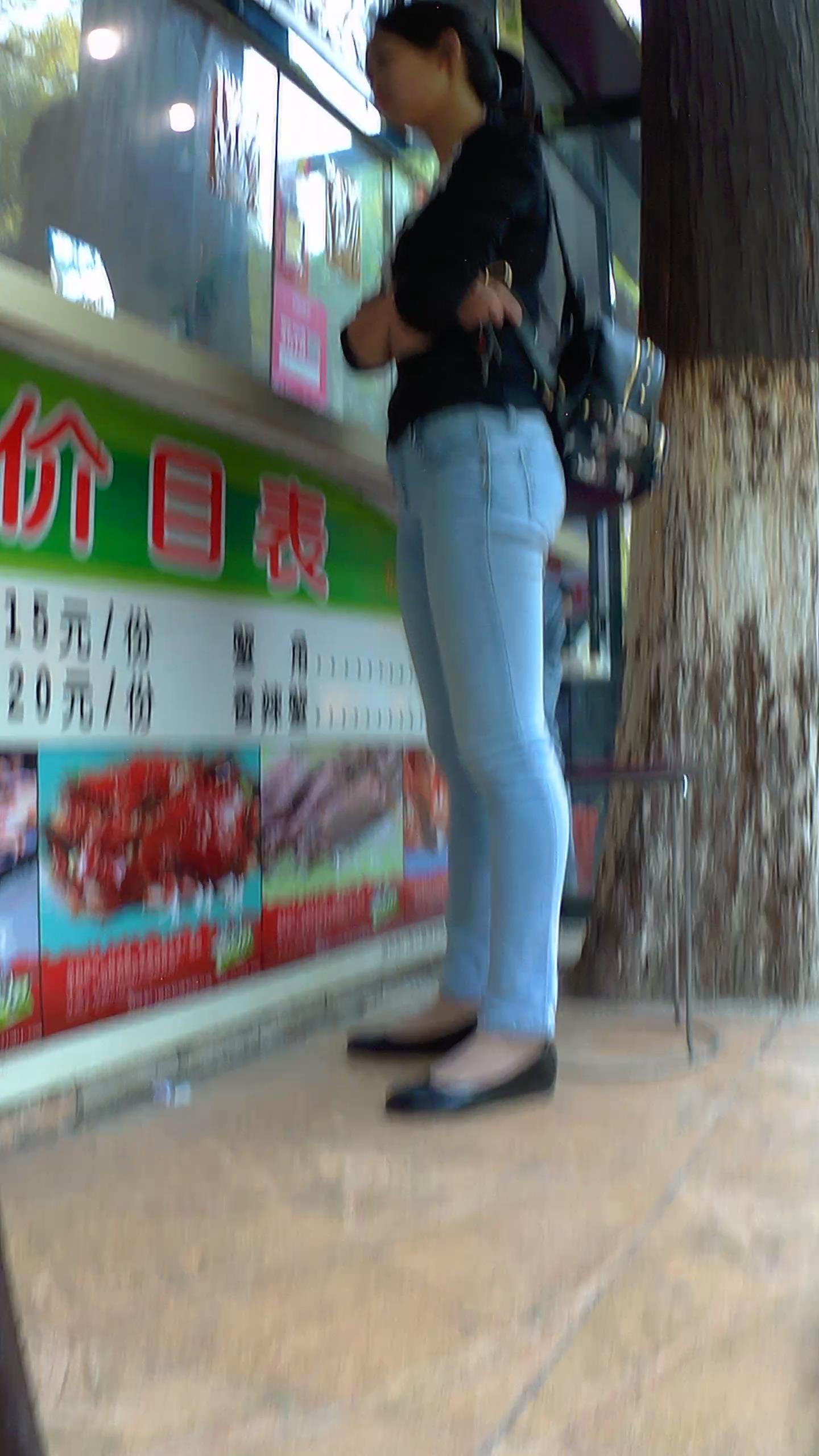 紧到让人窒息的紧身蓝色牛仔裤美女 编号5890