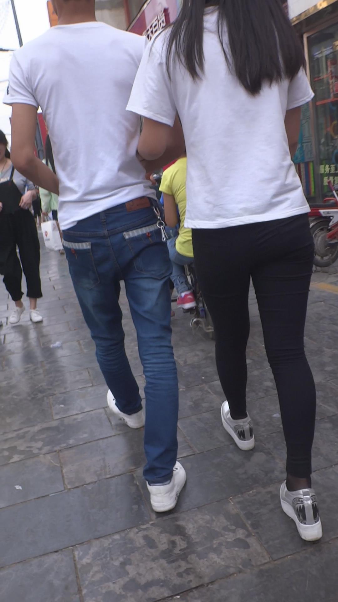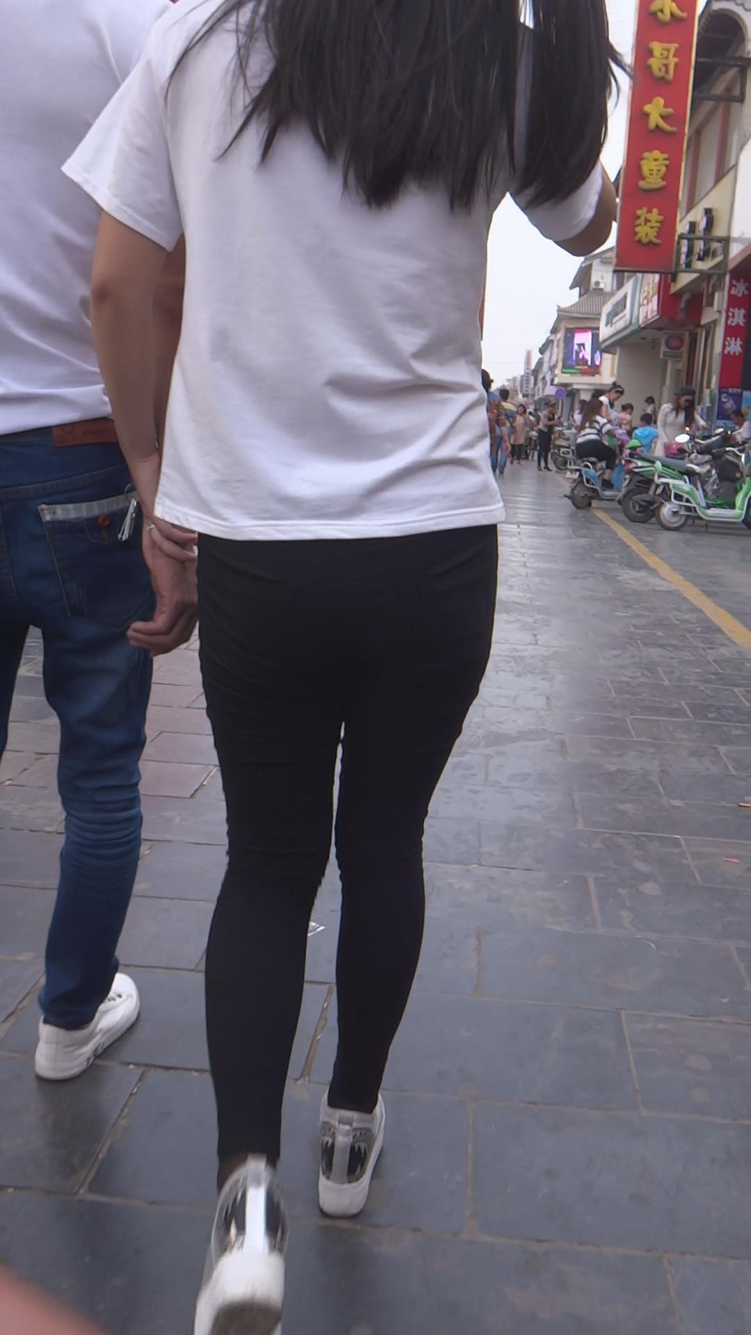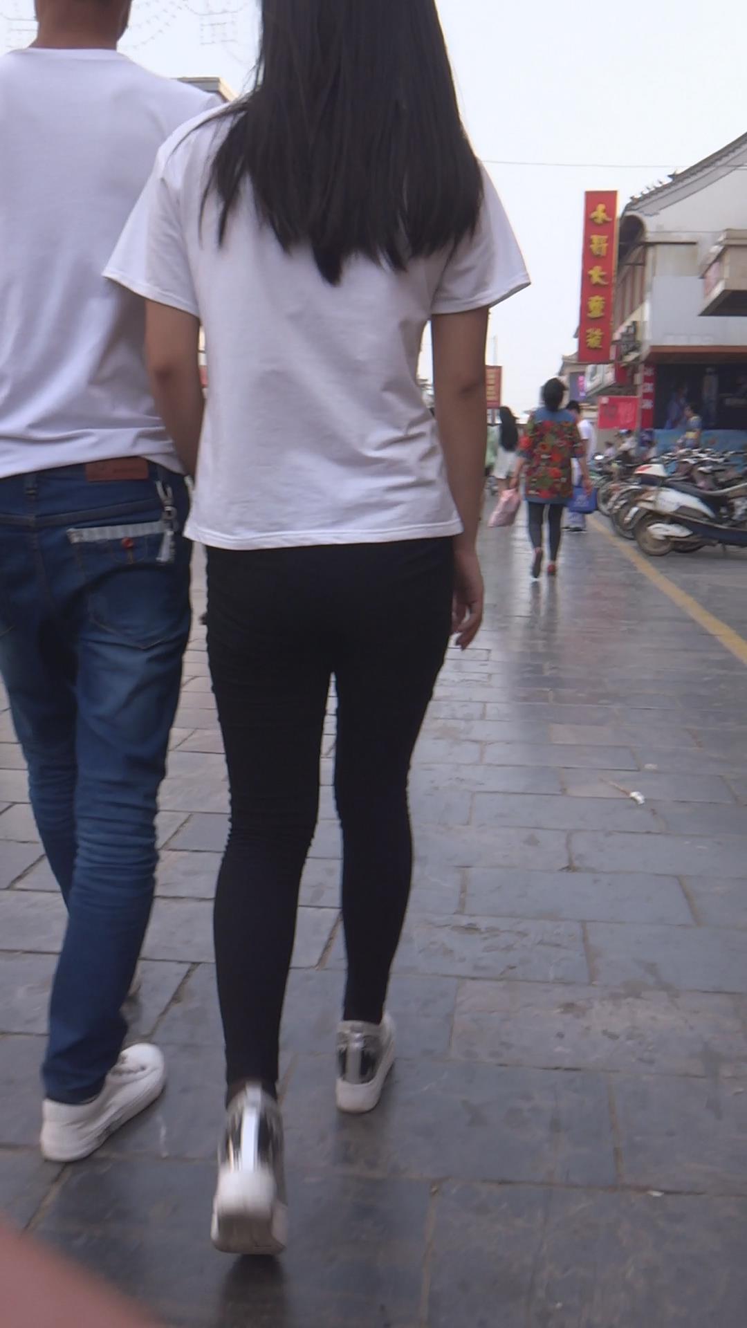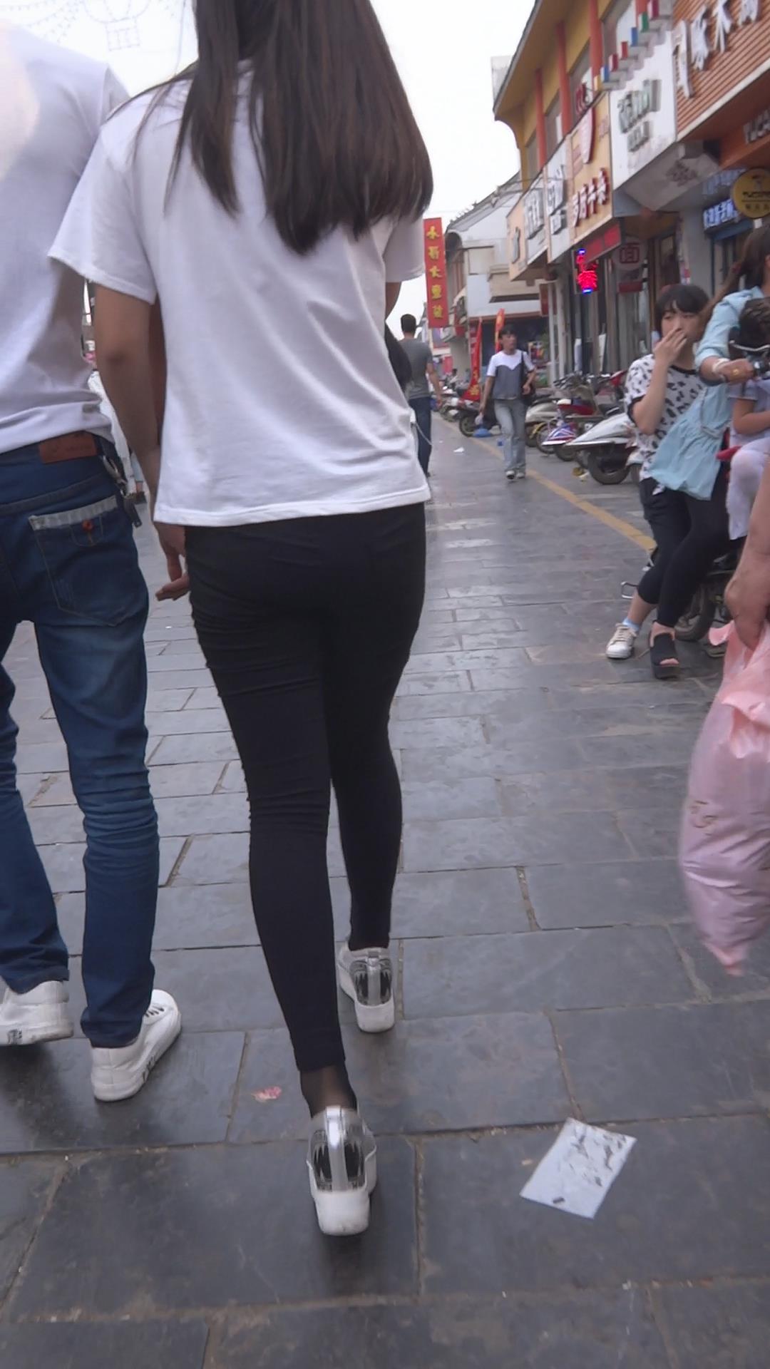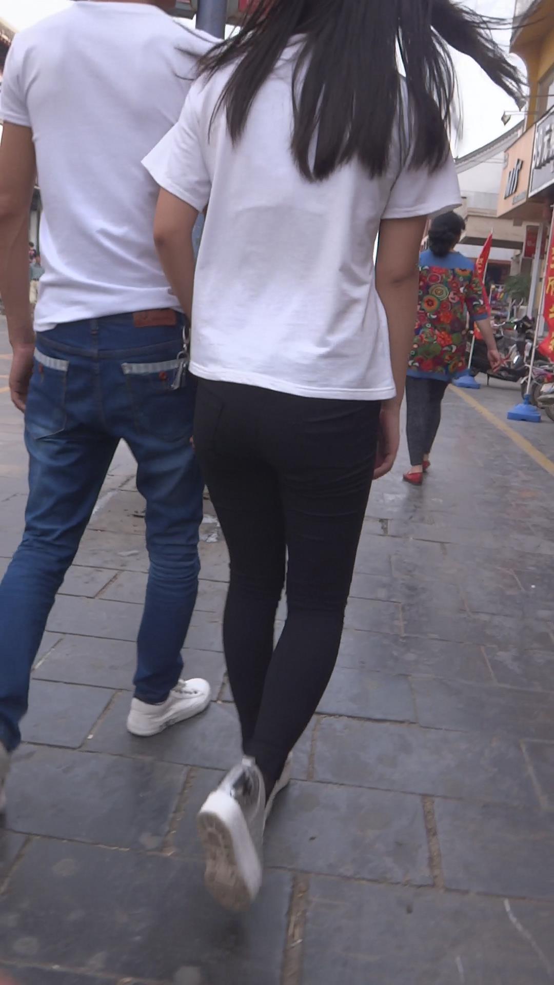 黑色紧身裤白T恤小美女 编号5905