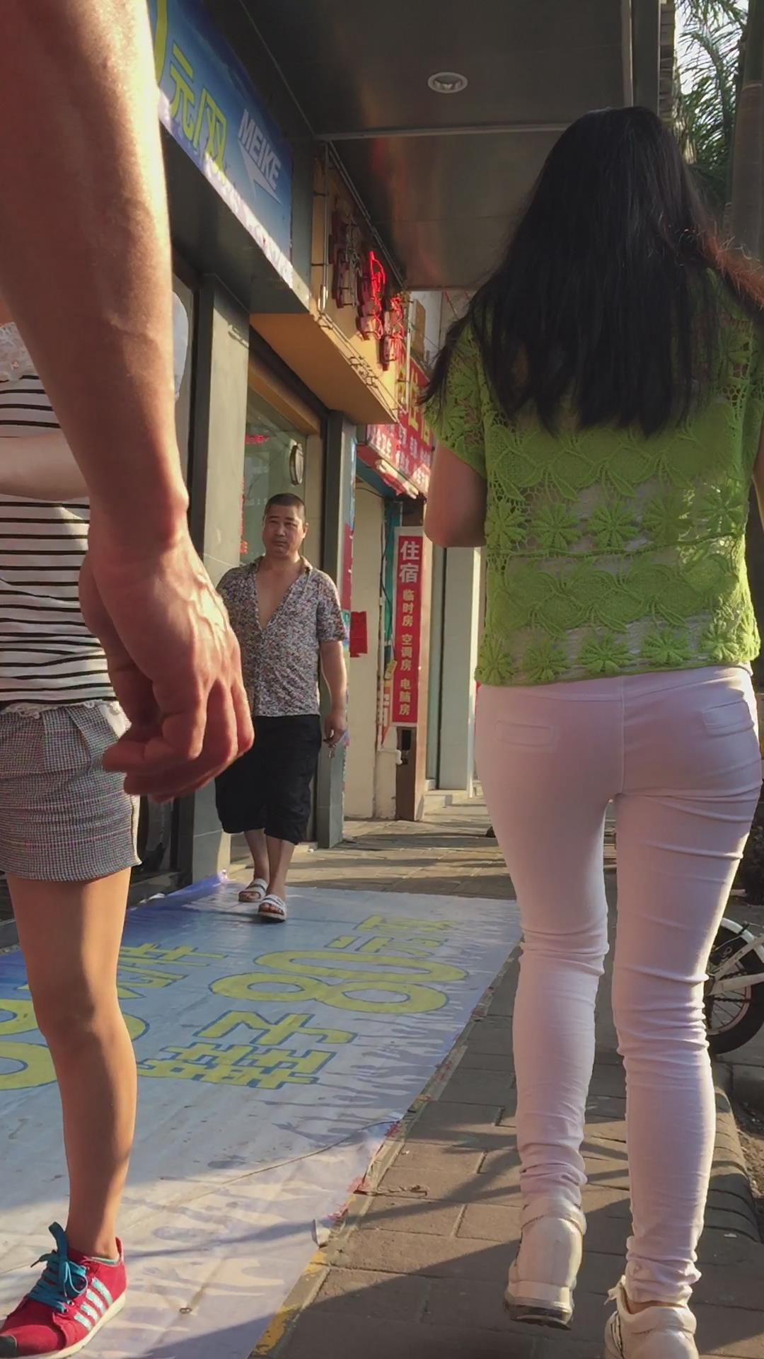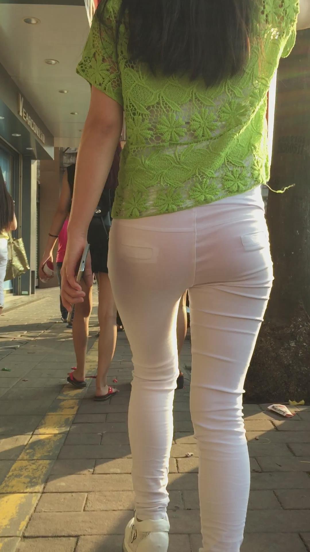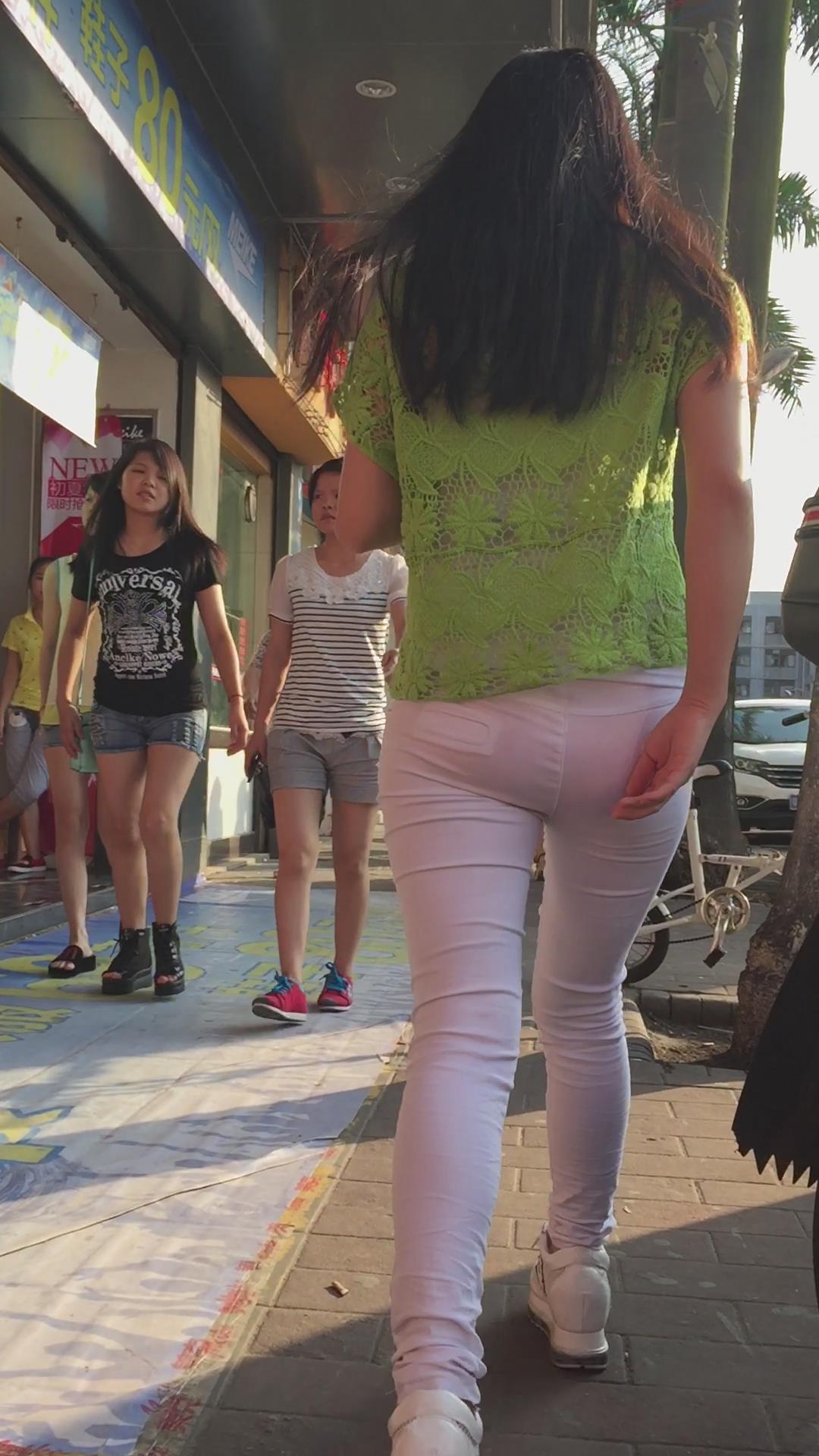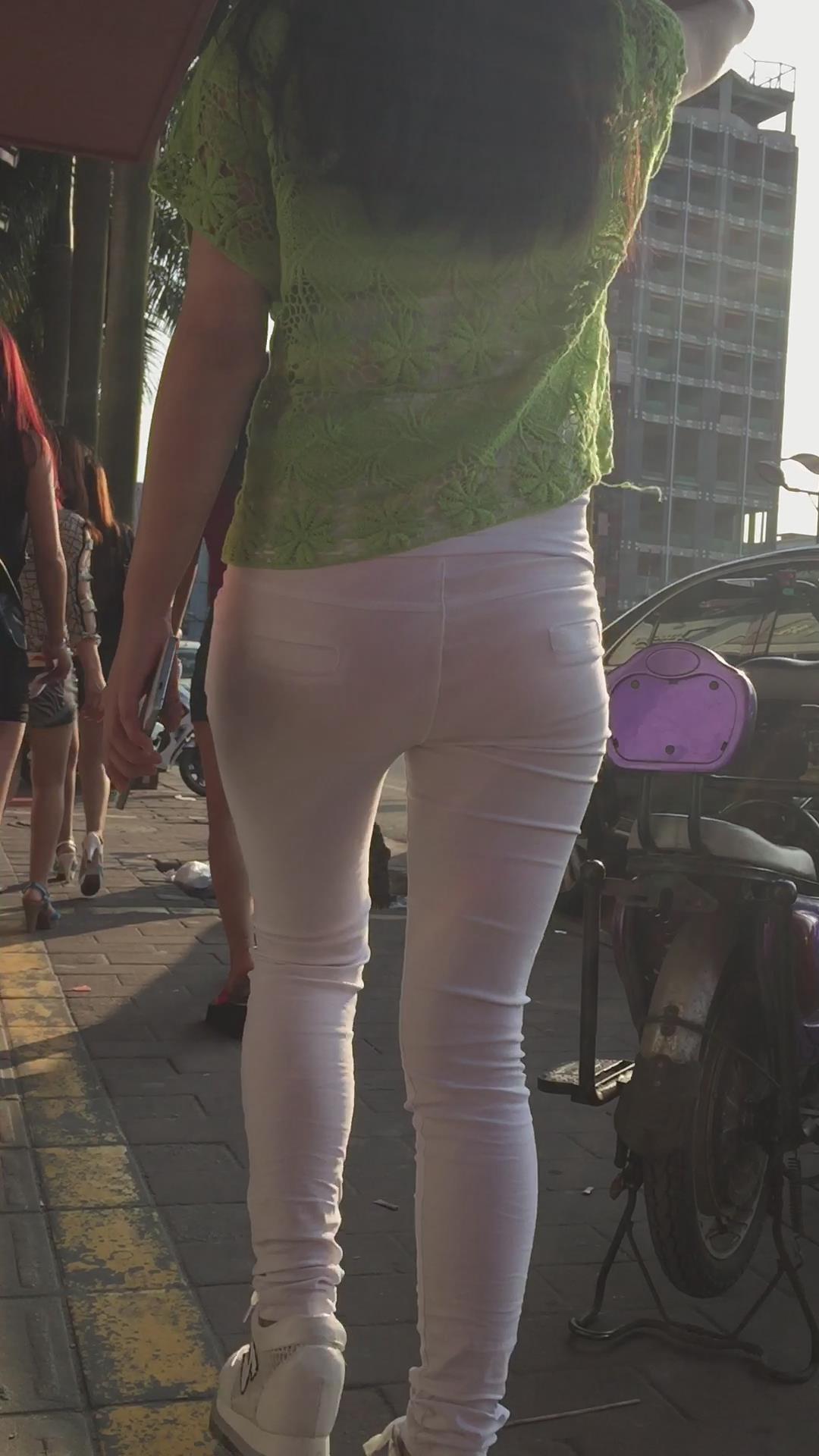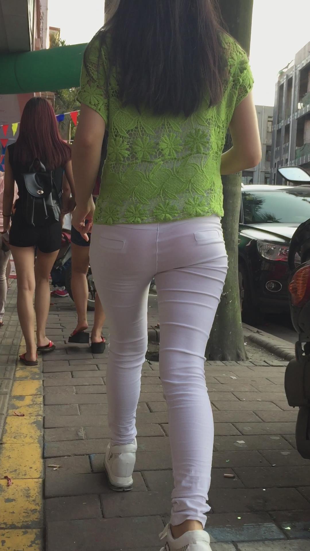 街拍紧身白裤小清新美眉 编号5907