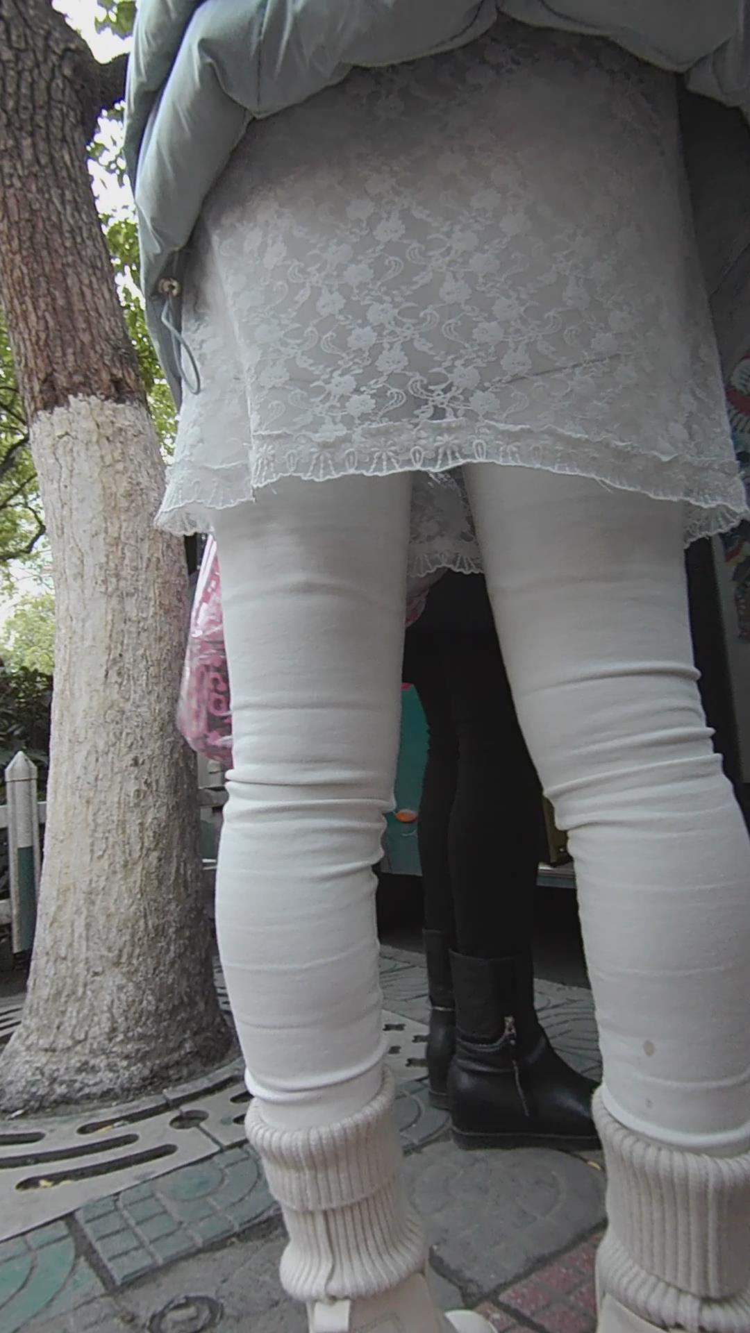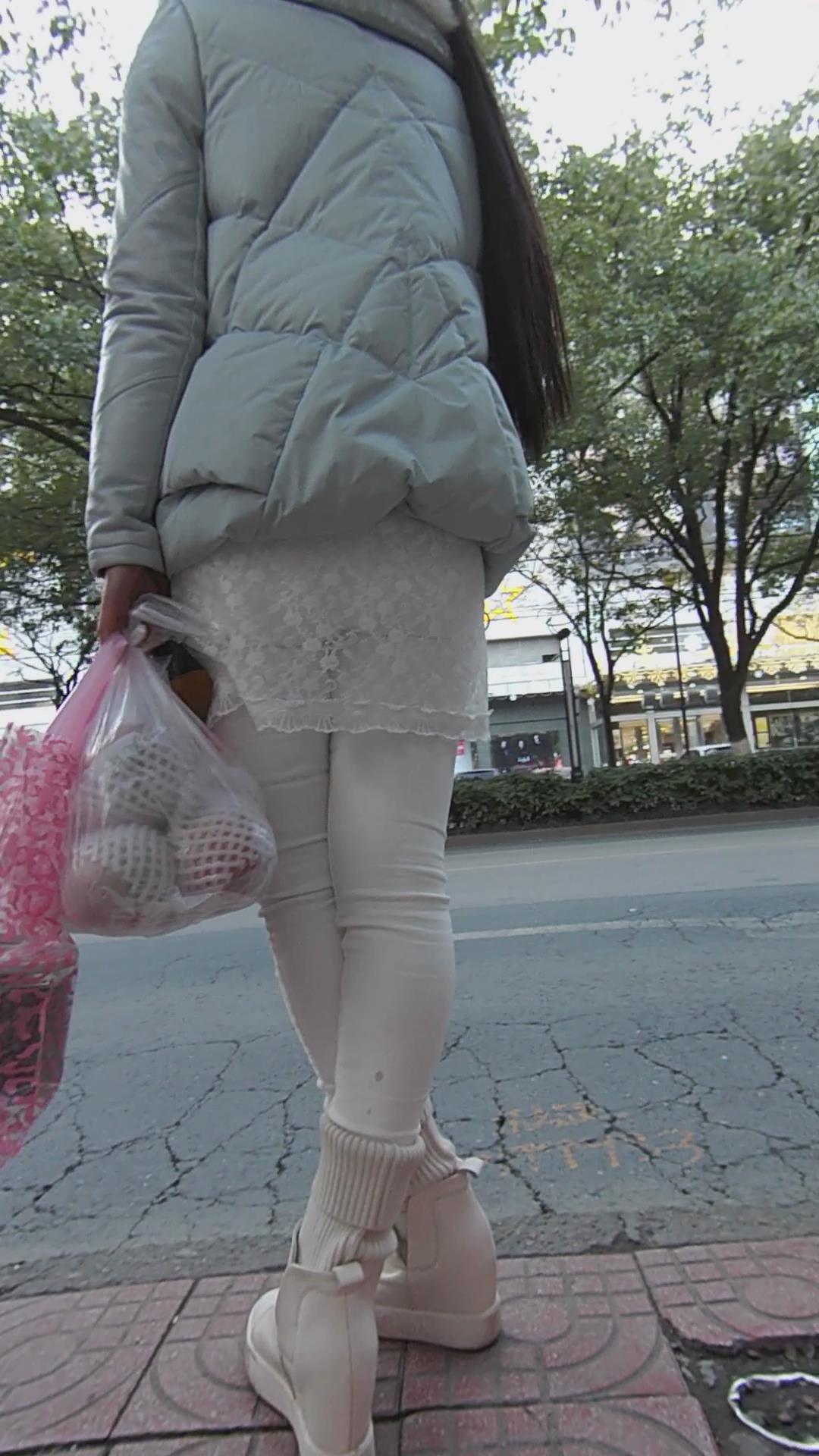 等公交车的紧身白裤马尾辫女孩。 编号5945