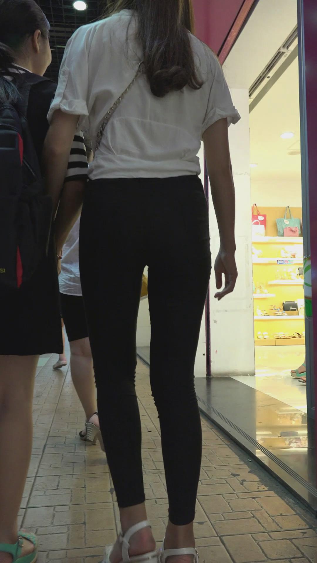 街拍紧身裤白衬衫高跟凉鞋姐姐 编号5962