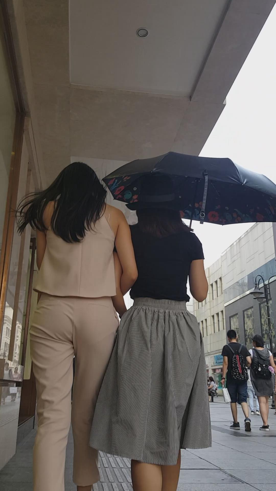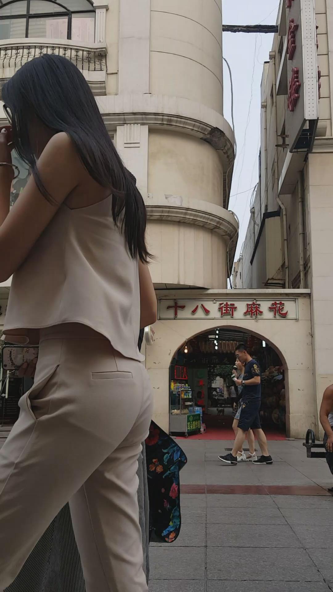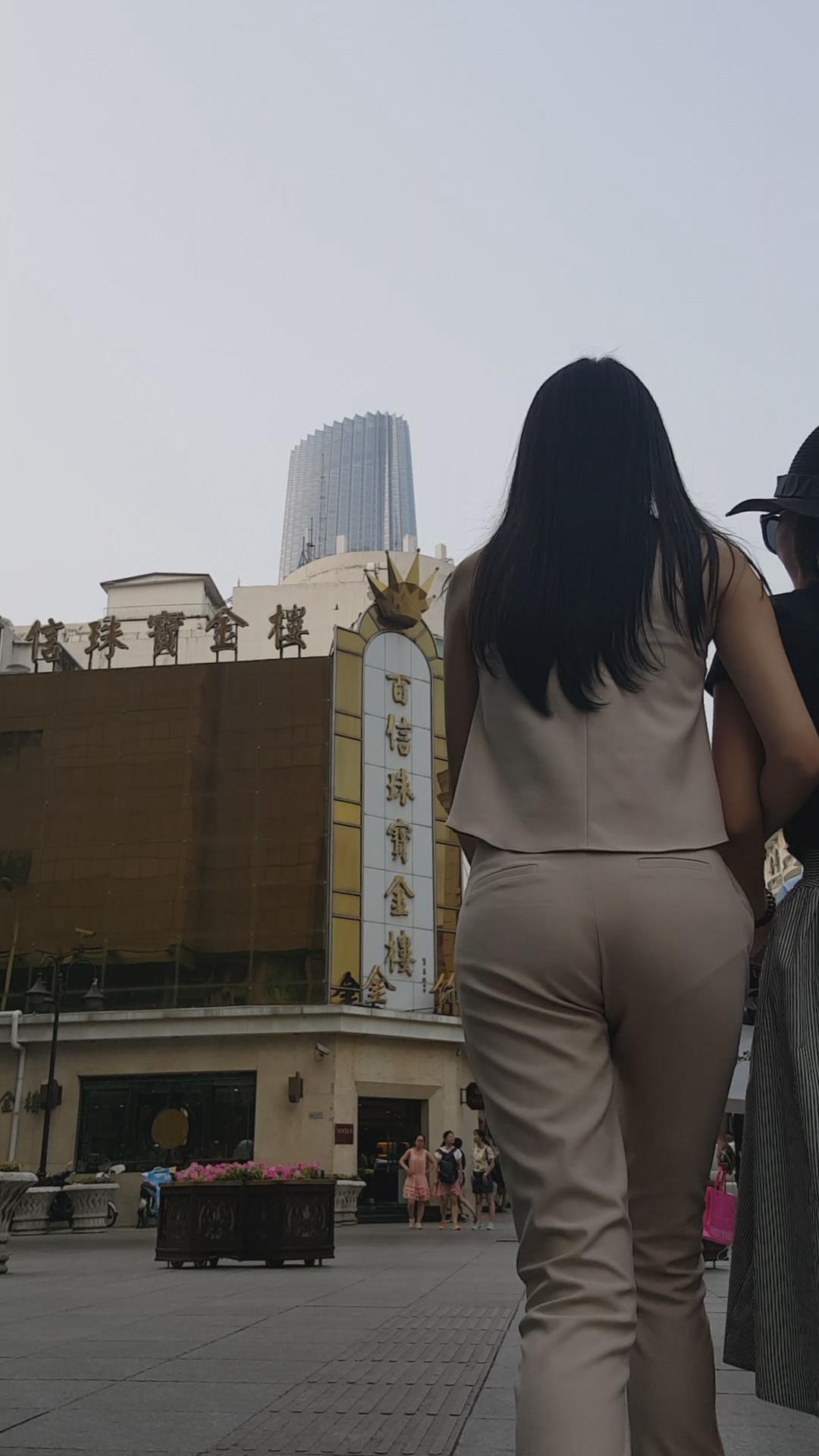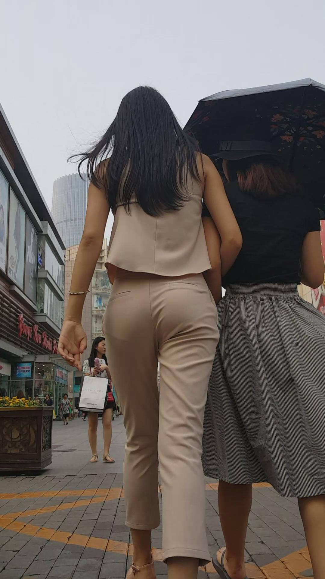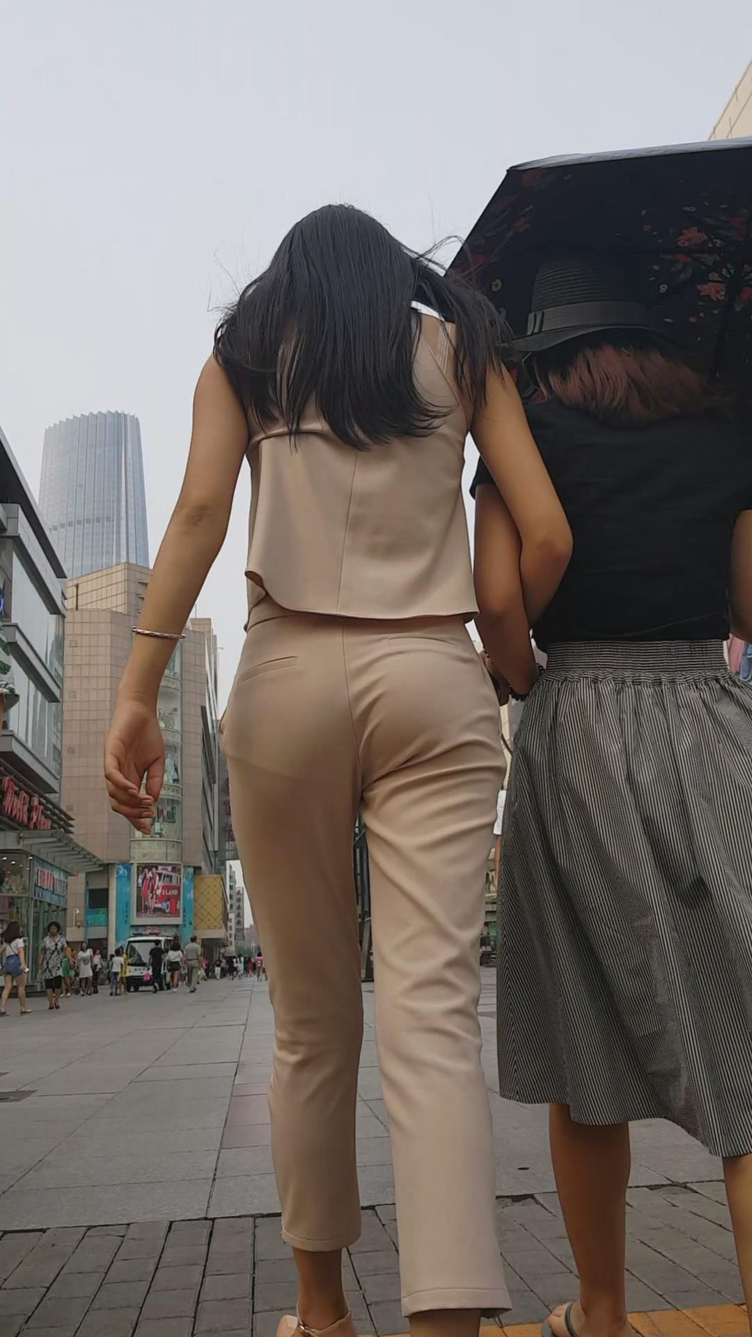 街拍的肉色套装大长腿高跟鞋美女。 编号5967