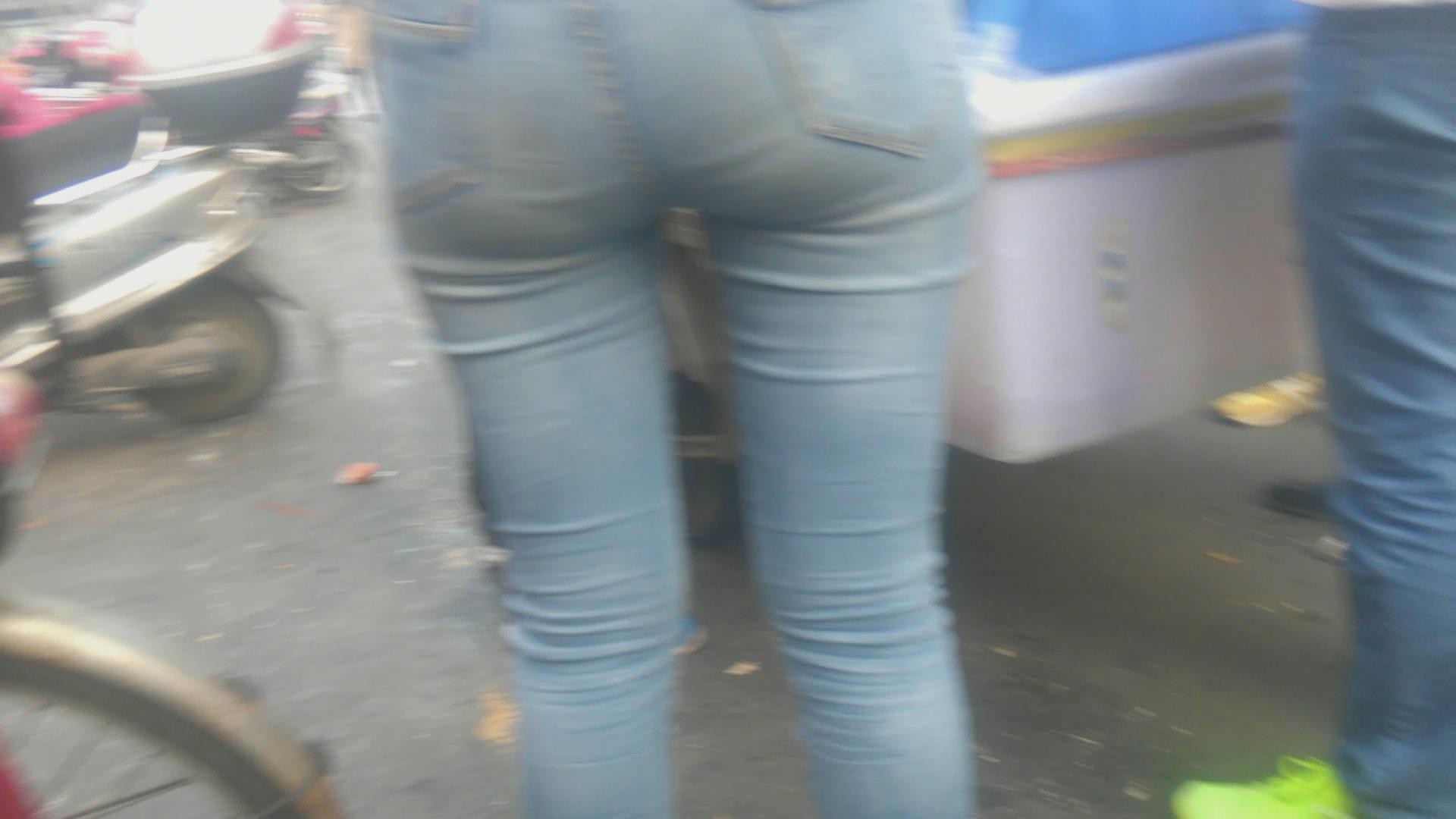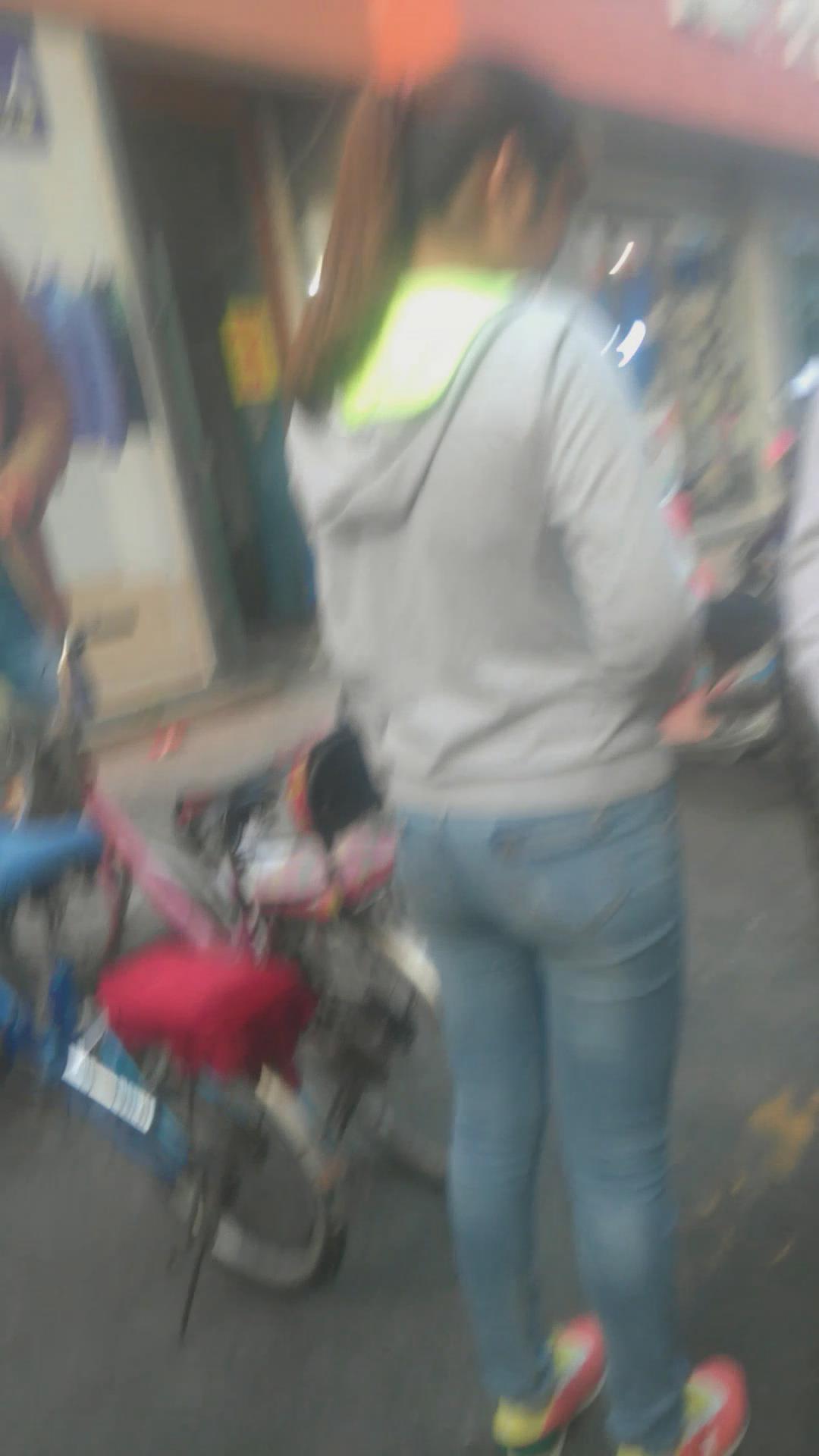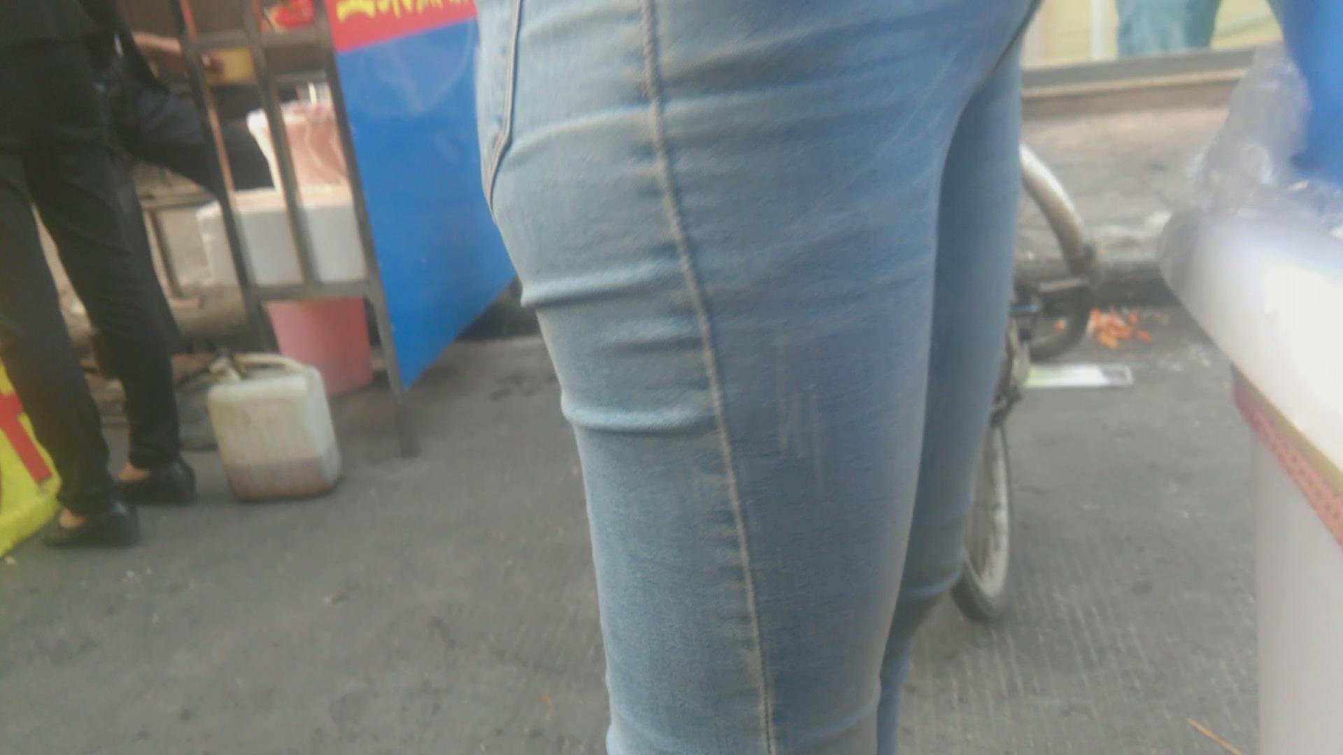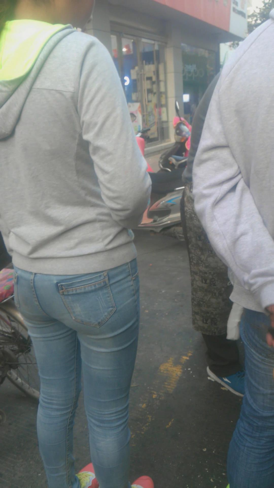 街拍极品清纯紧身蓝色牛仔裤小美女 编号5979