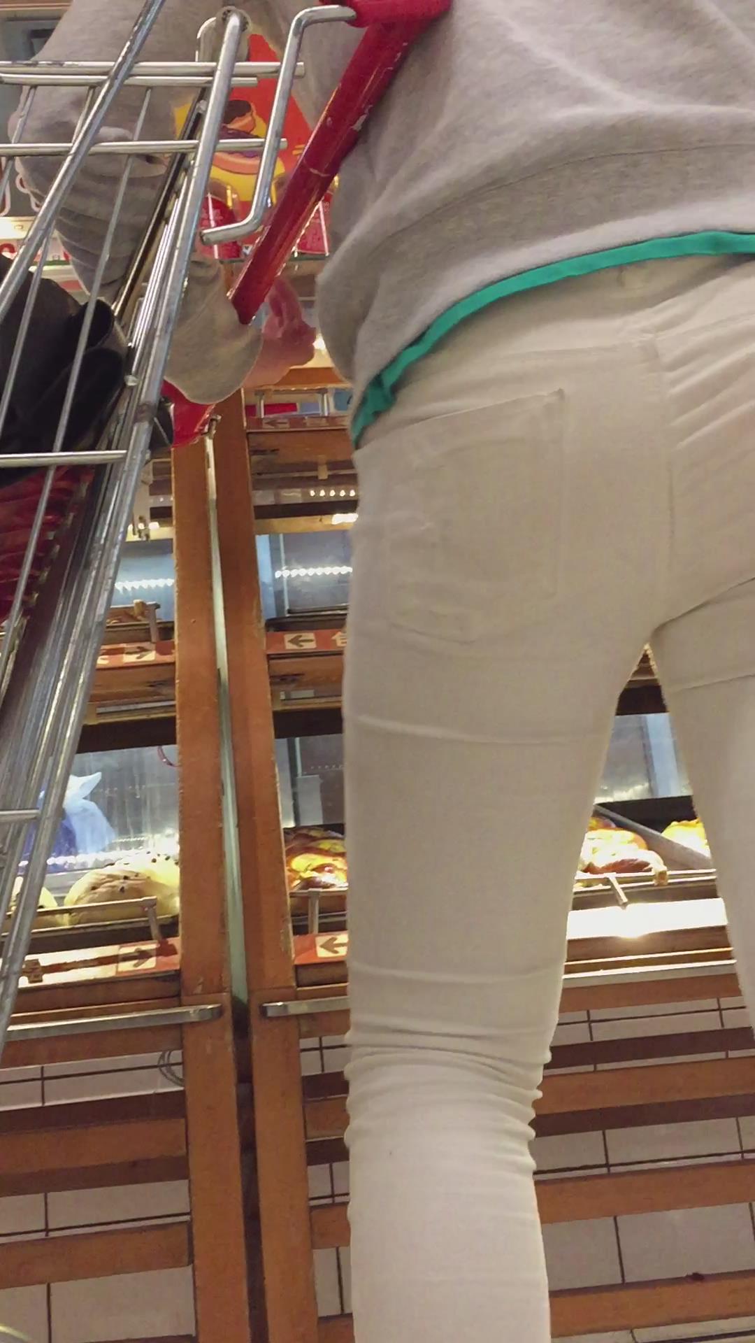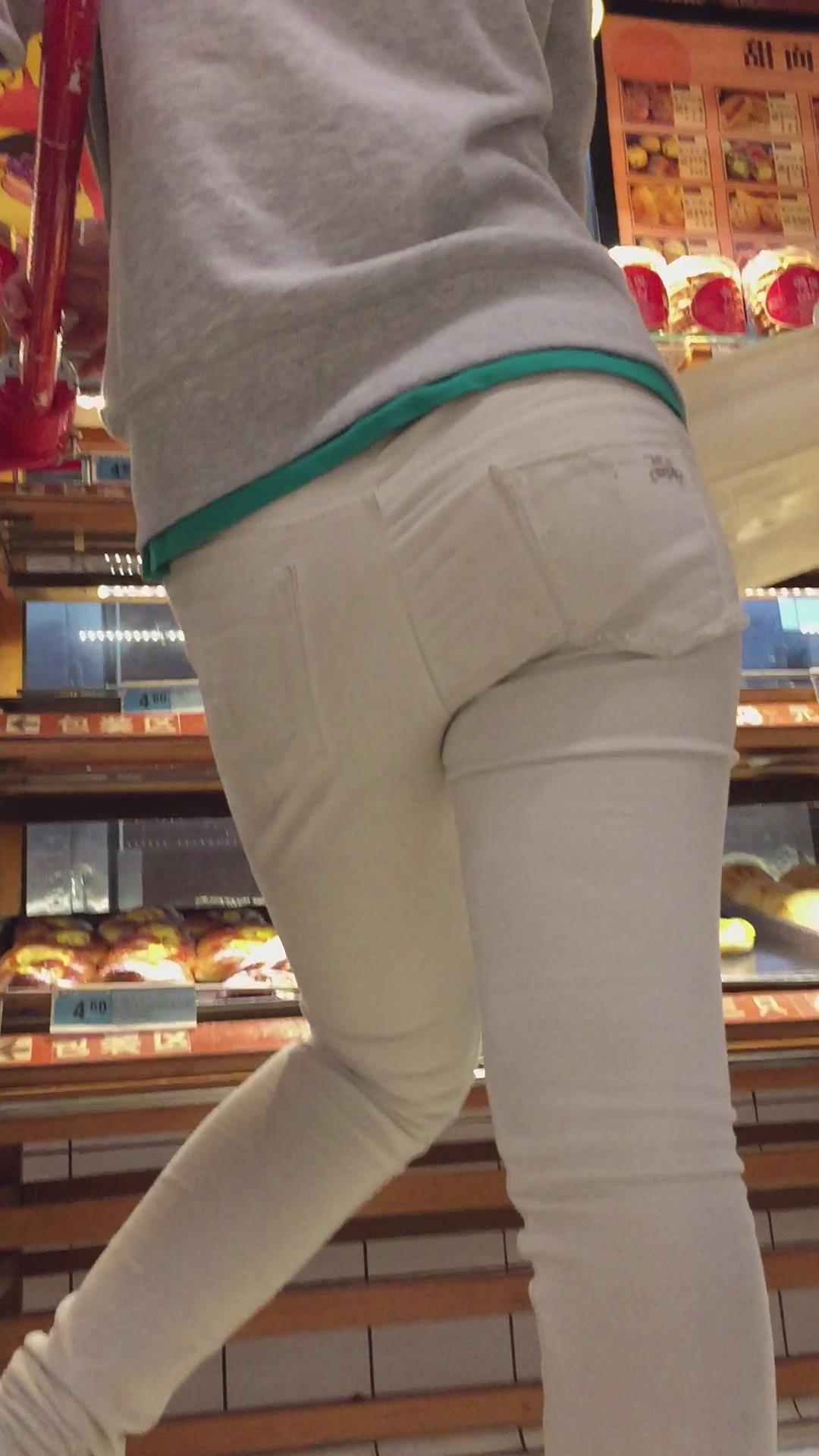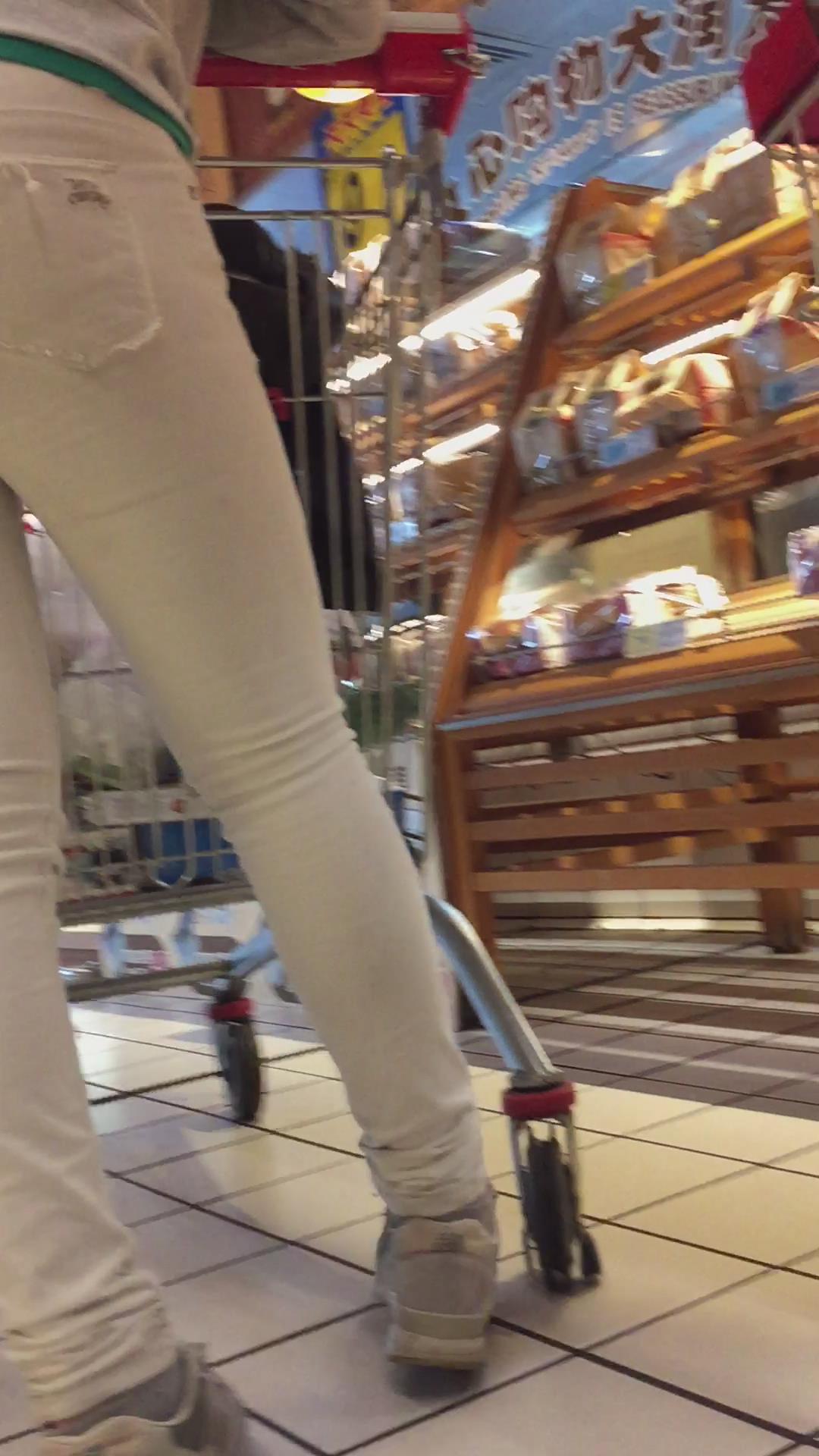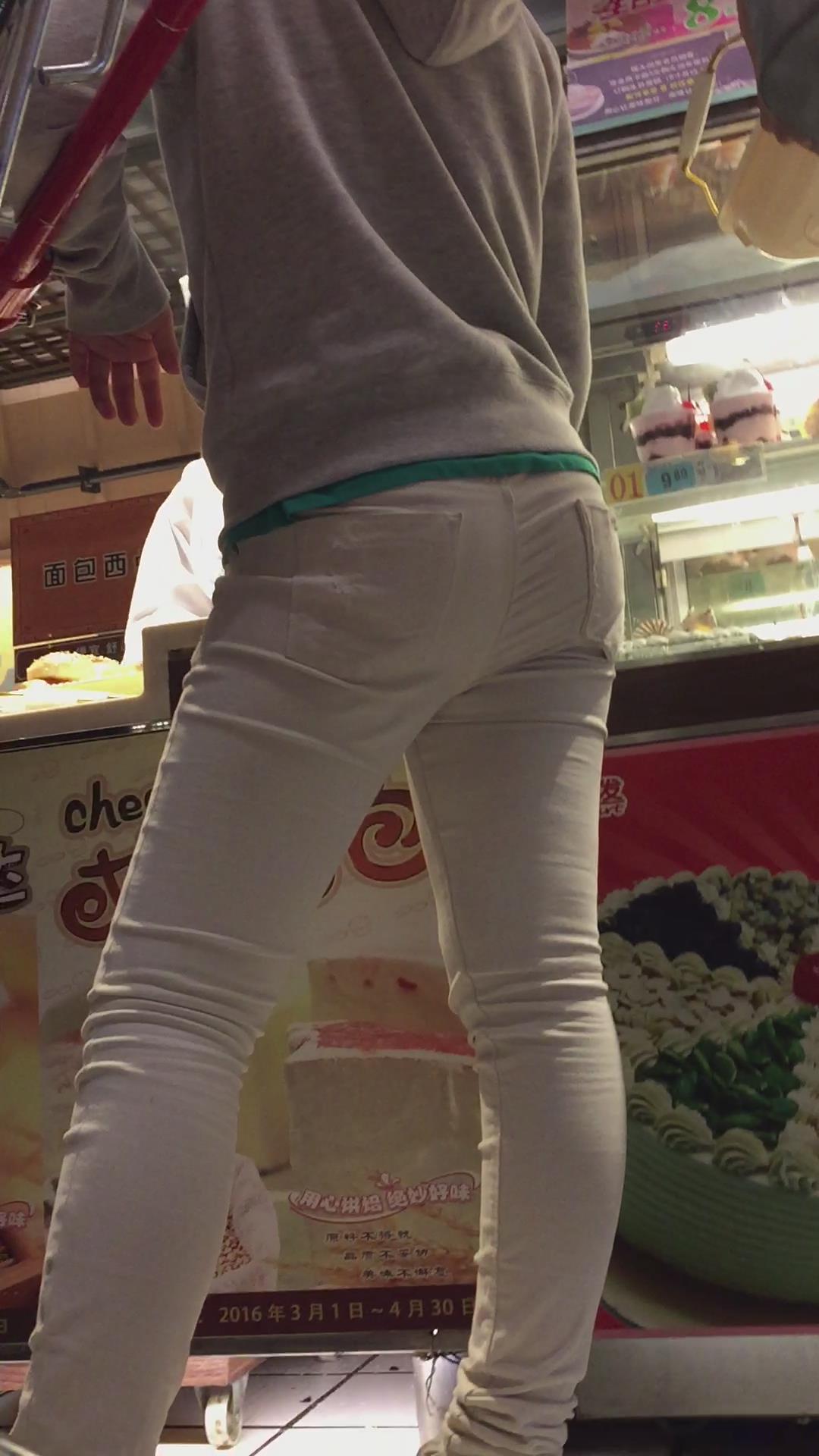 超市里的白裤小眼睛肥妹。 编号5982
