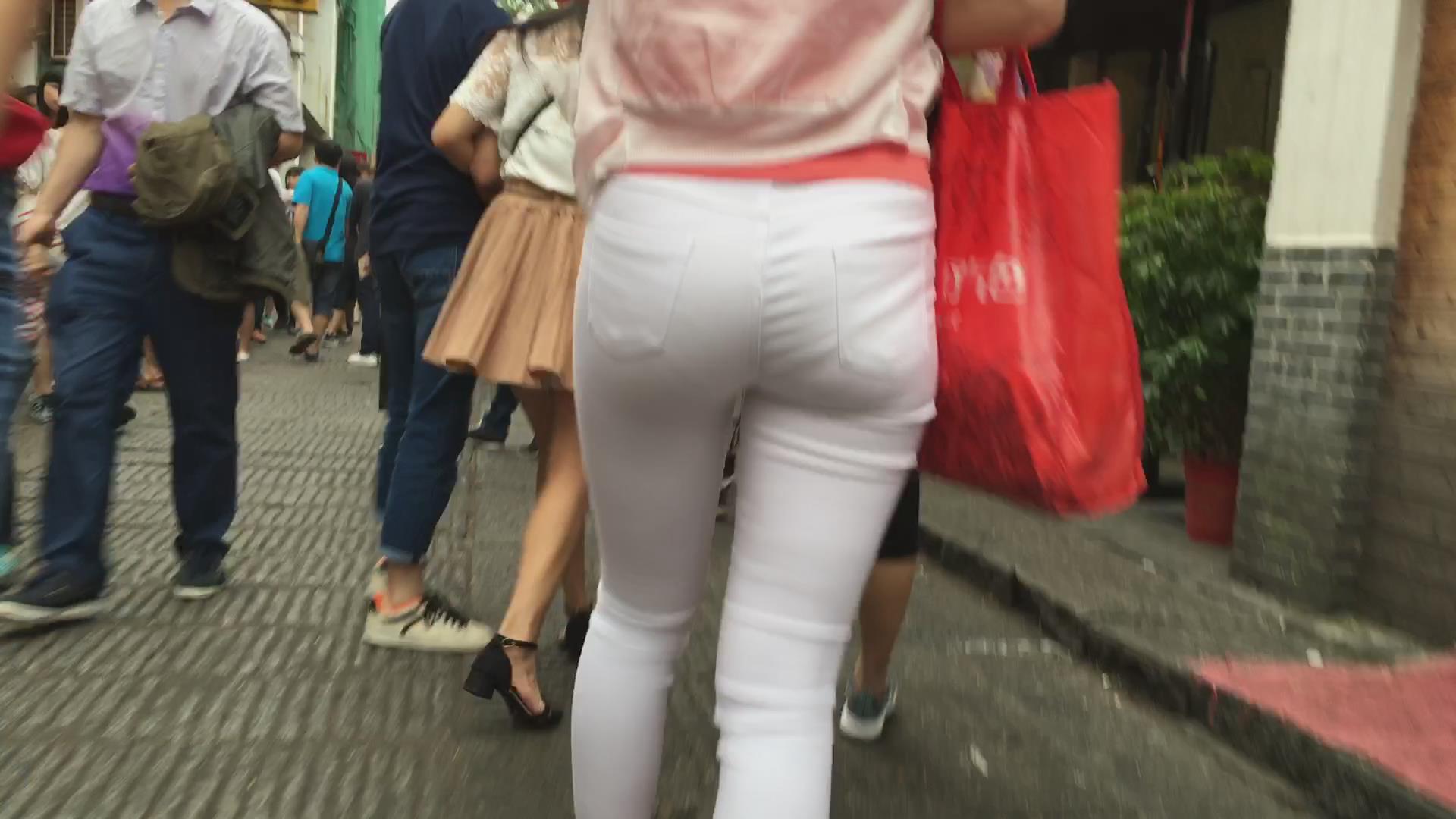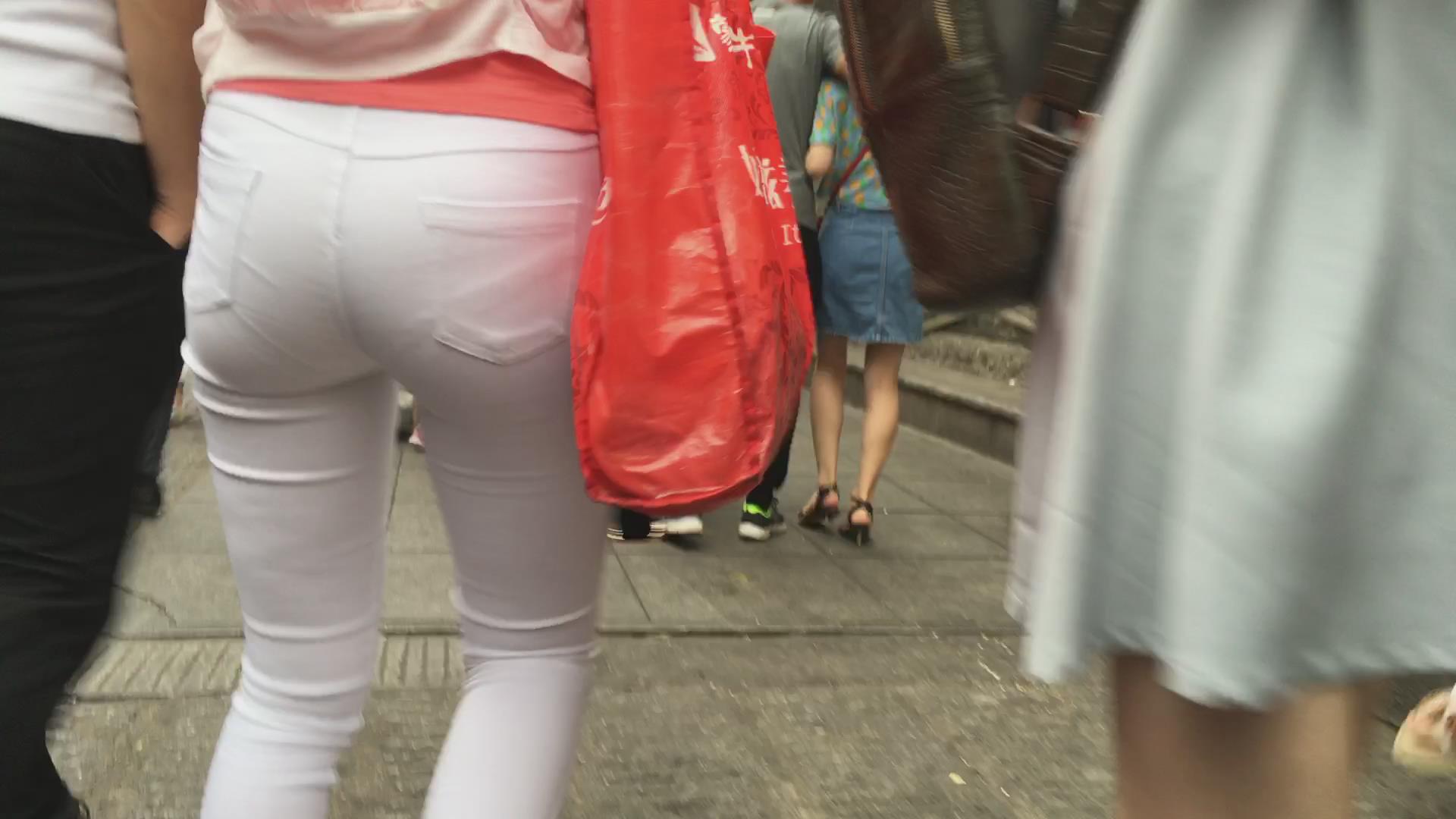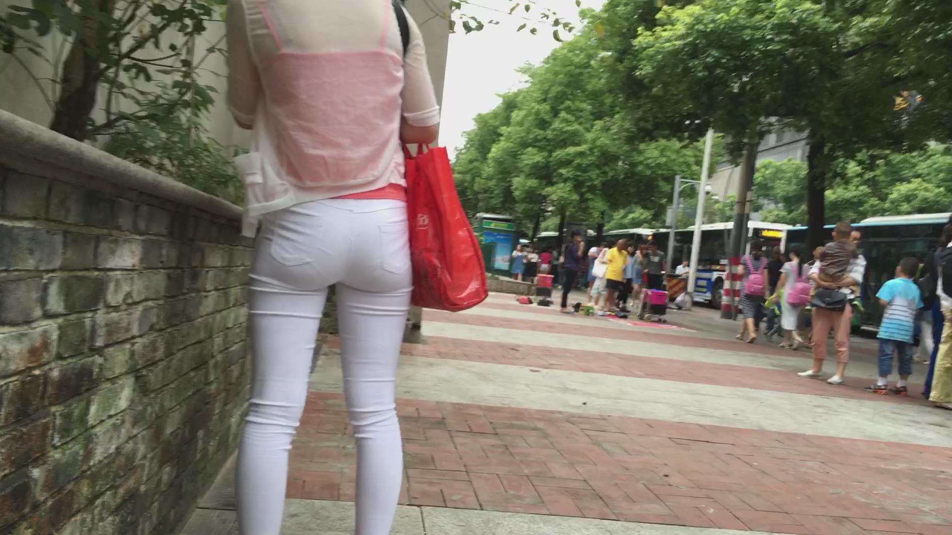 街拍超级紧绷圆臀白裤美女,内痕明显。 编号5993