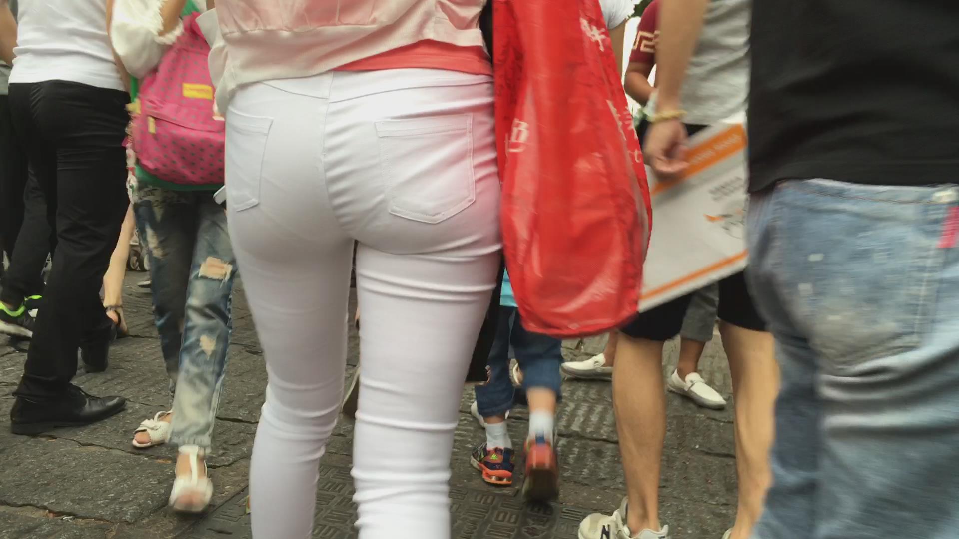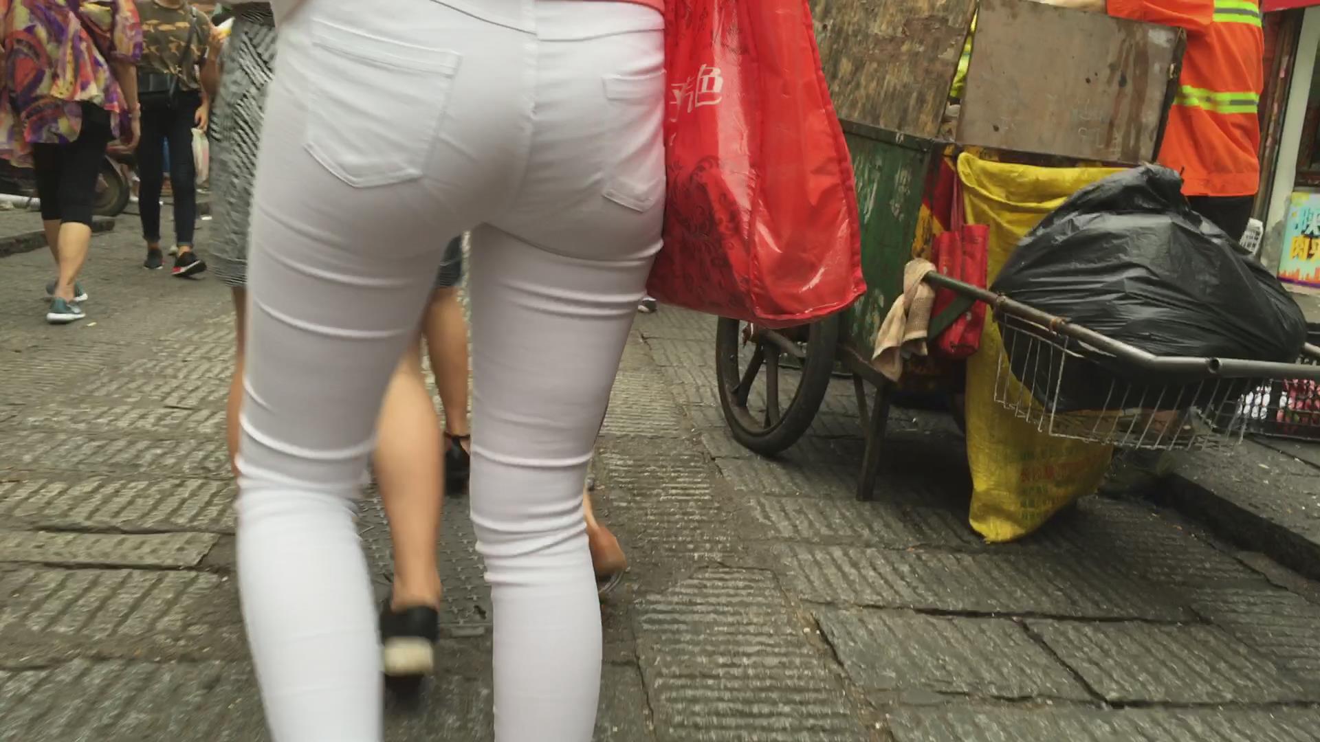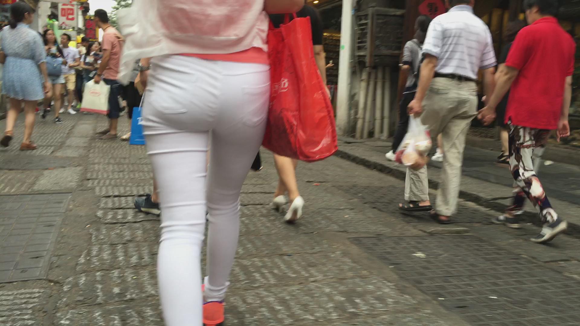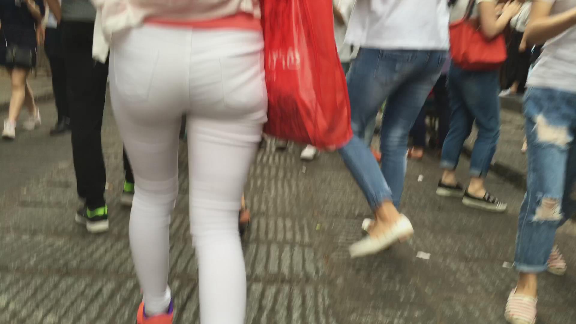 街拍超级紧绷圆臀白裤美女,内痕明显。 编号5993