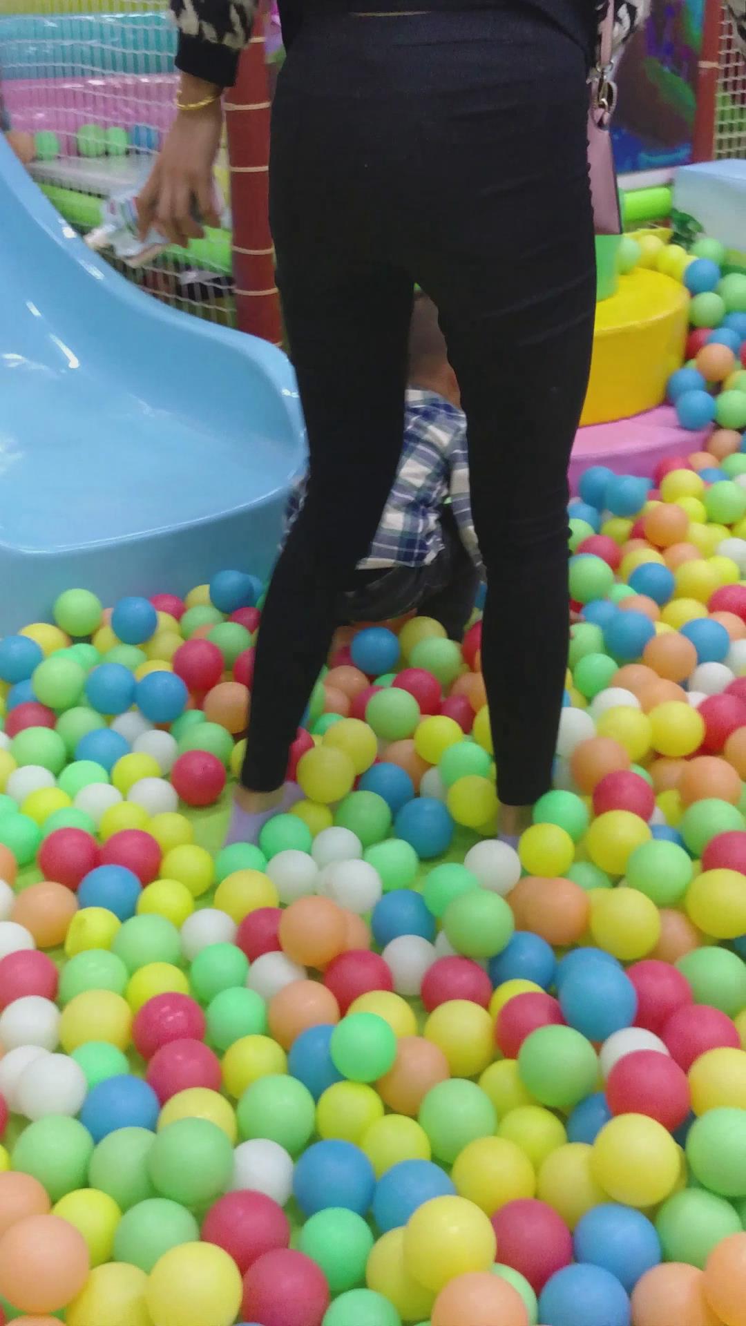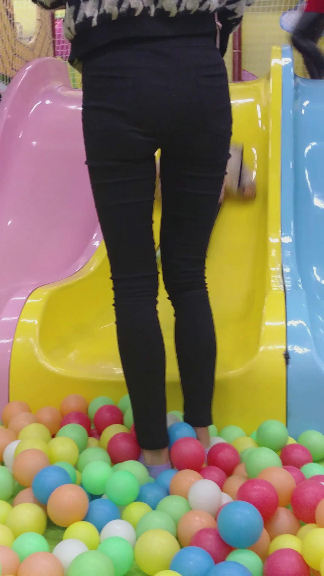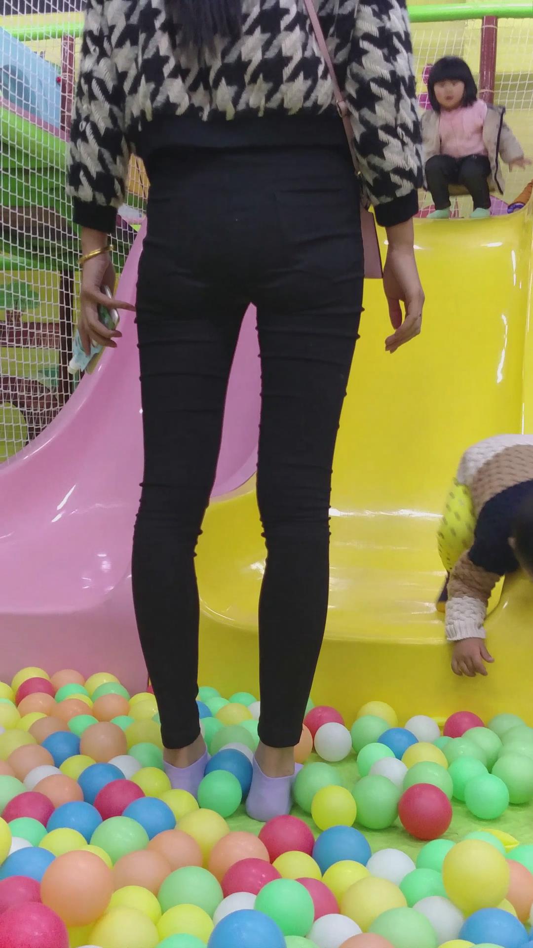 陪小孩玩耍的紧身黑裤美少妇,生了小孩身材还这么苗条 编号6009