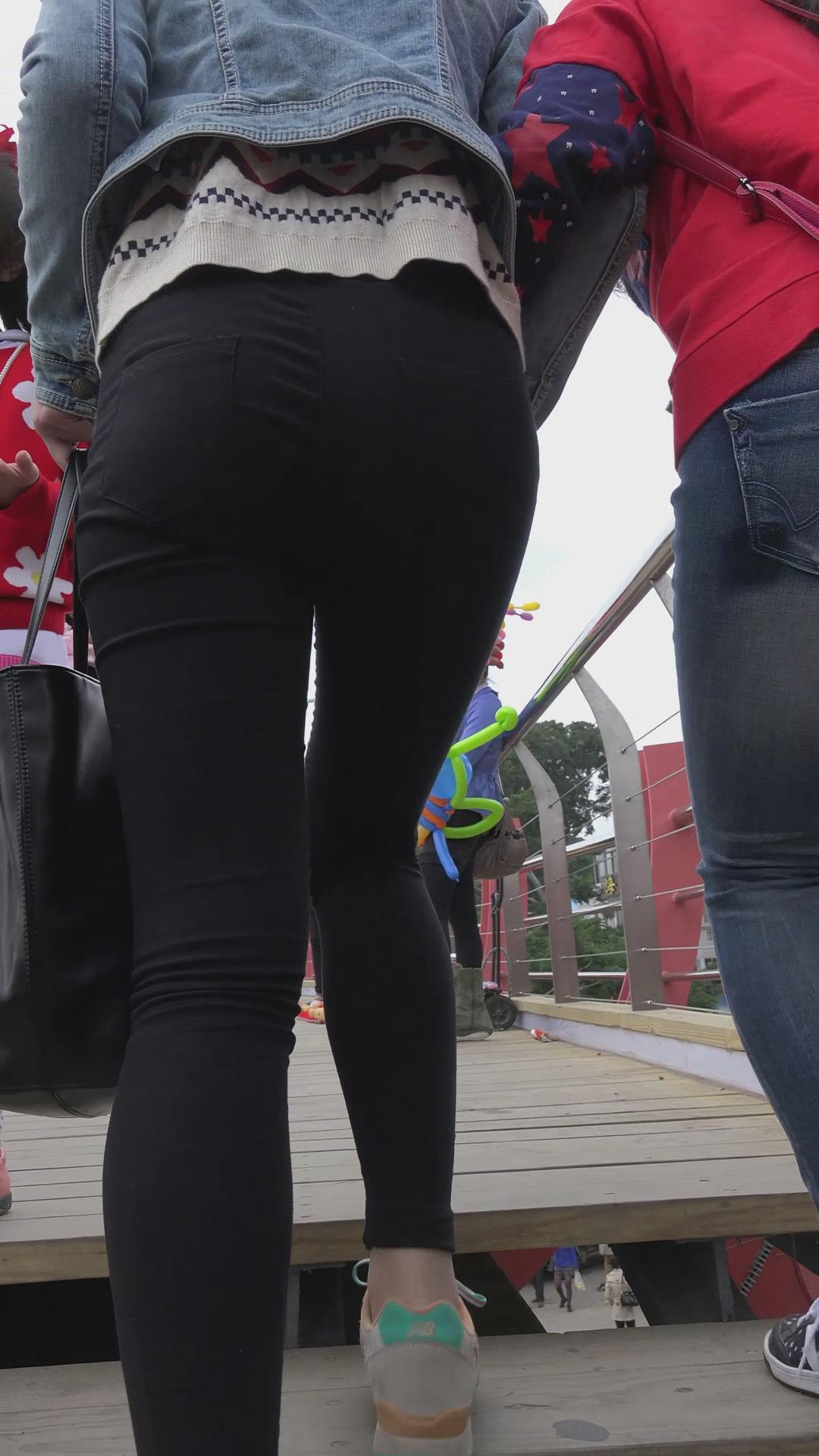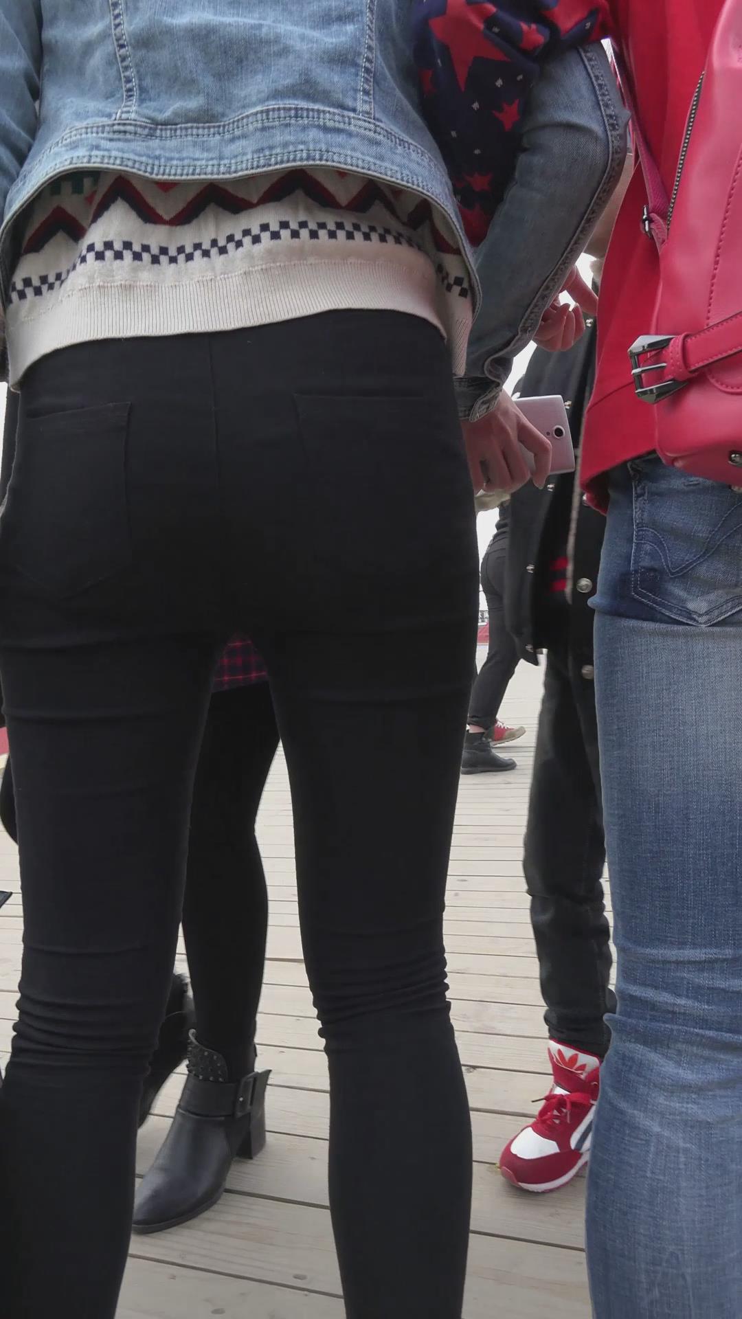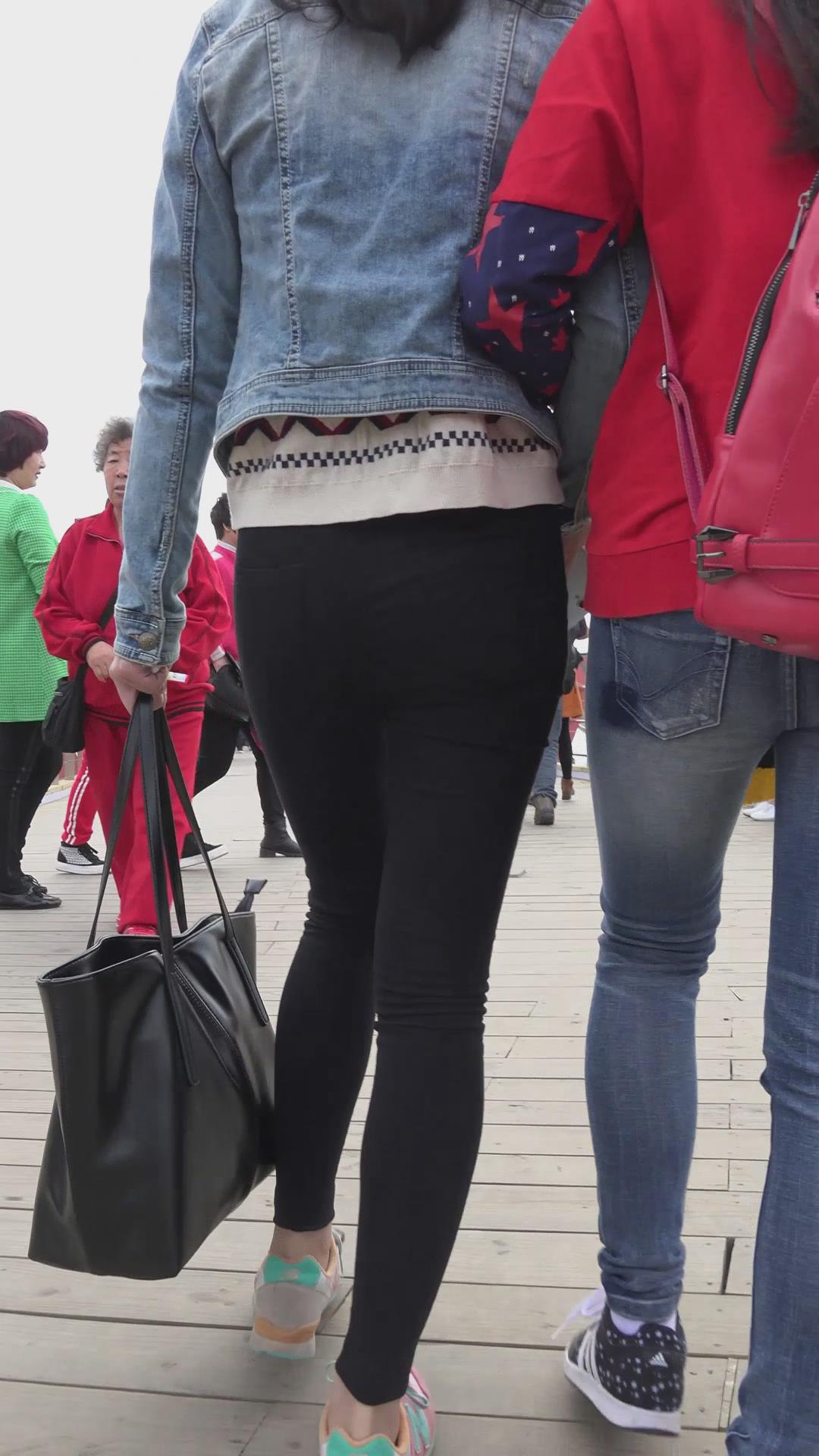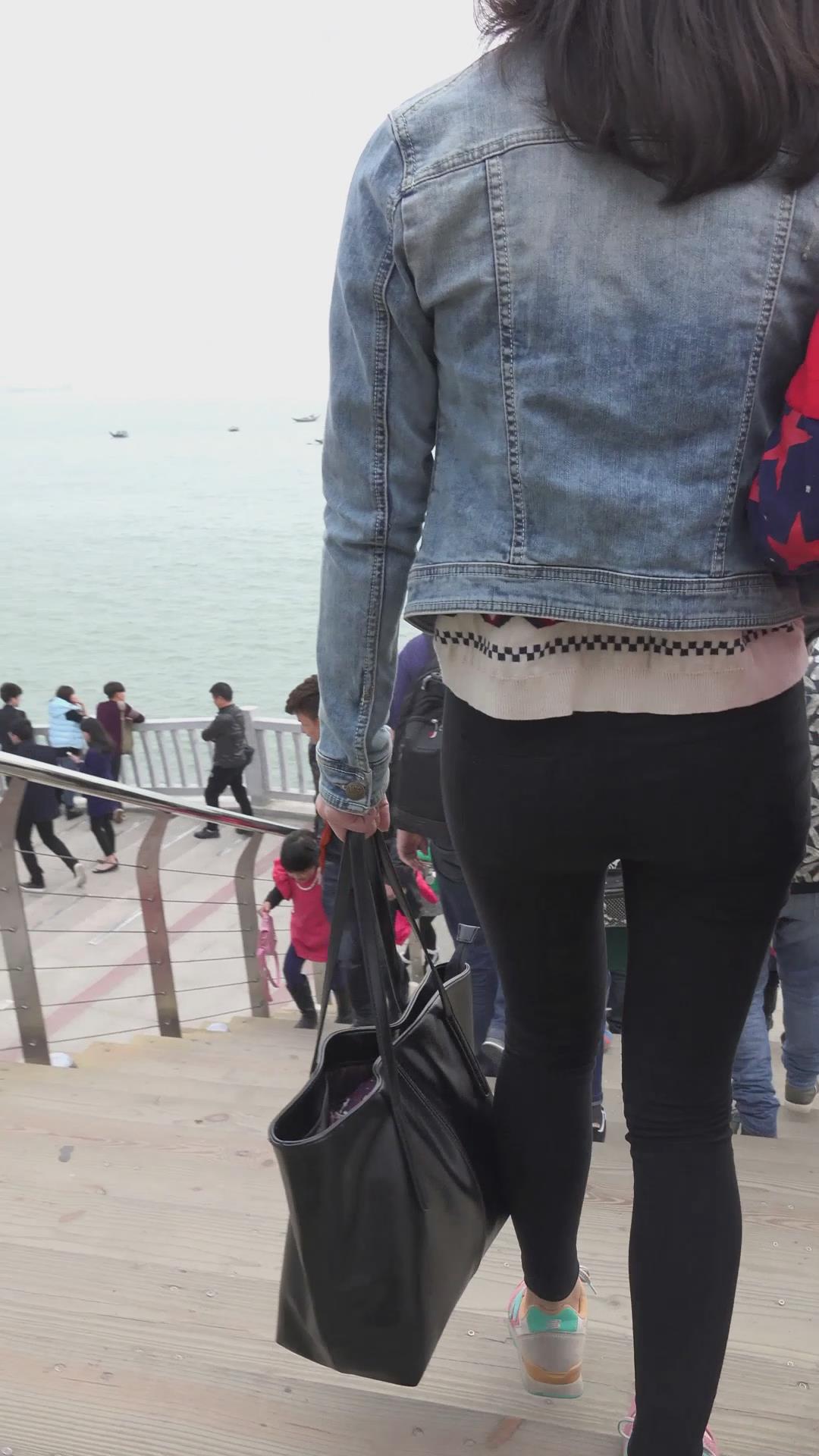 上台阶的清纯紧身黑裤学生妹 编号6010