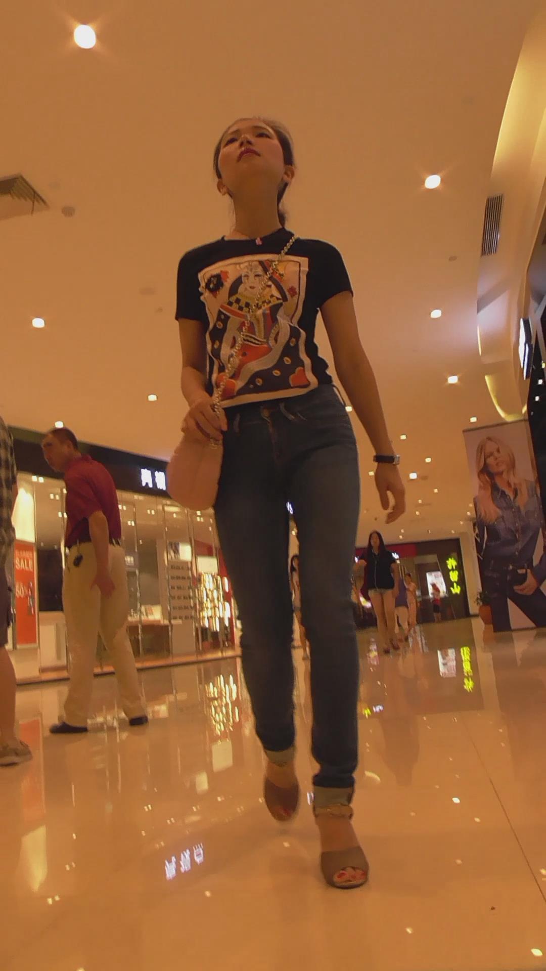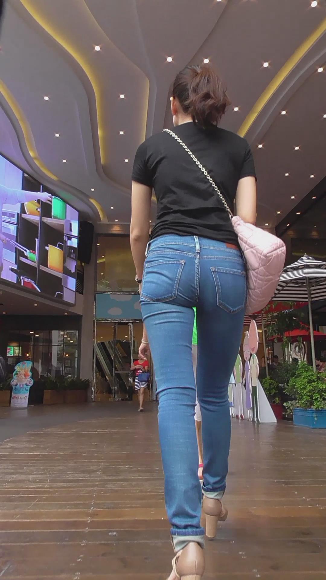街拍极品紧身牛仔裤女神姐姐,身材超棒 编号6023