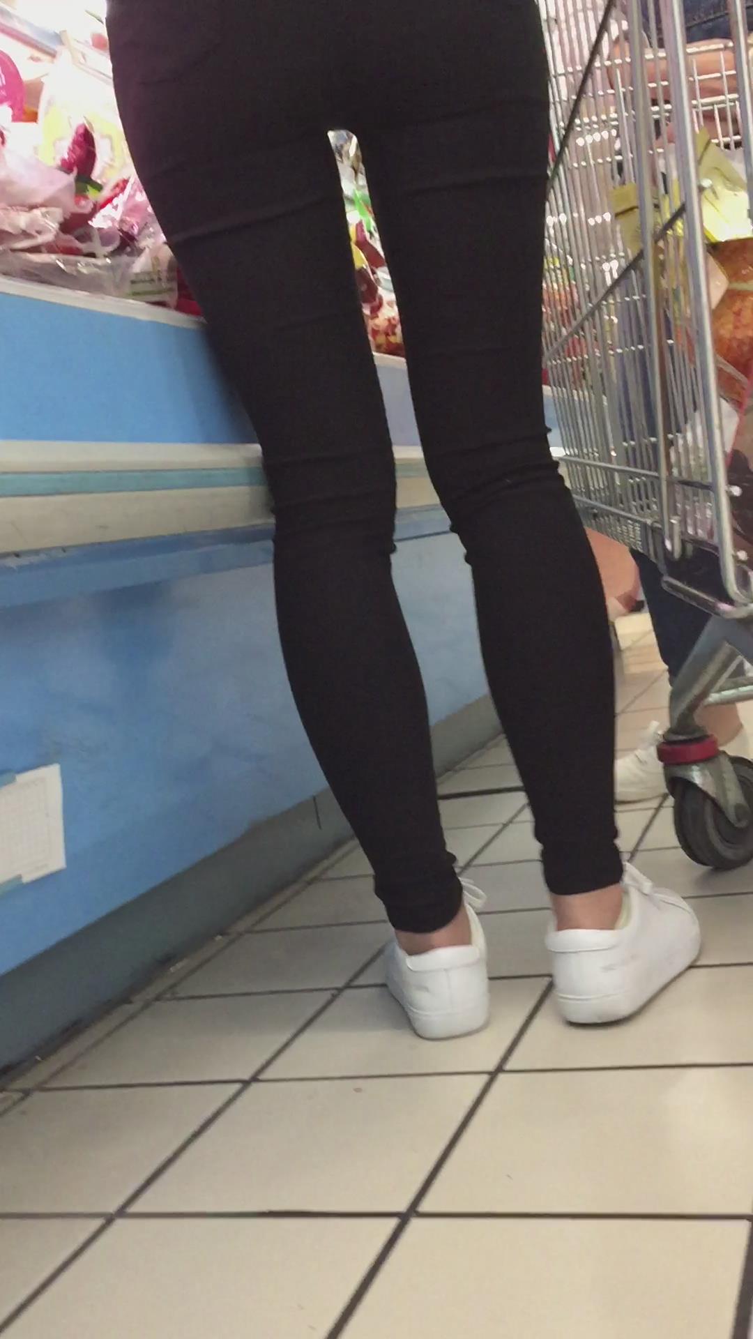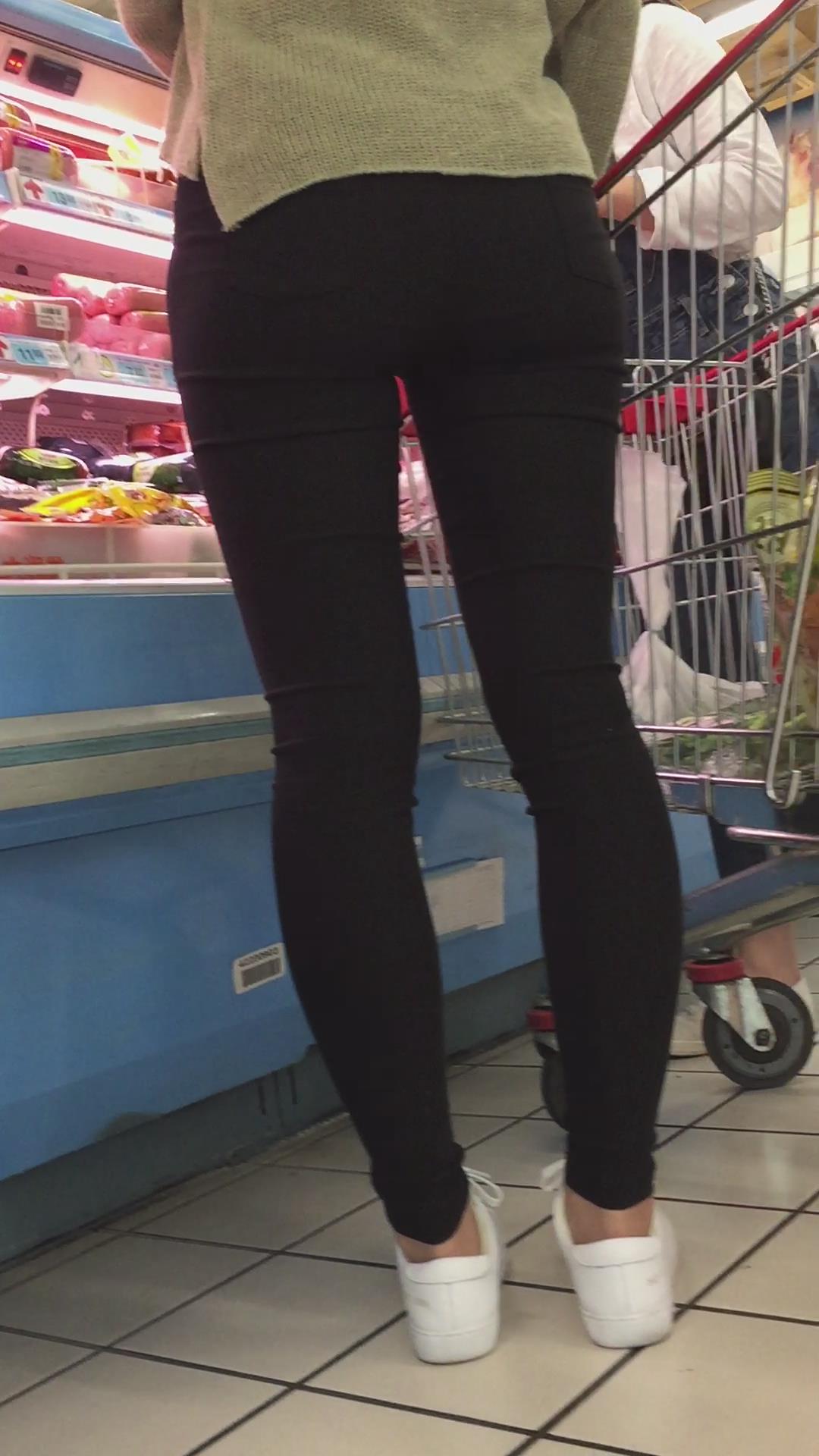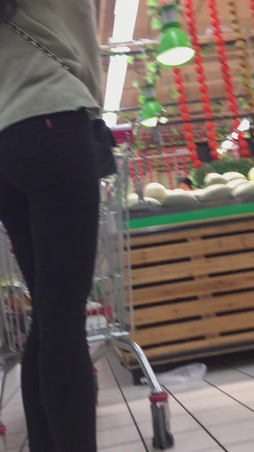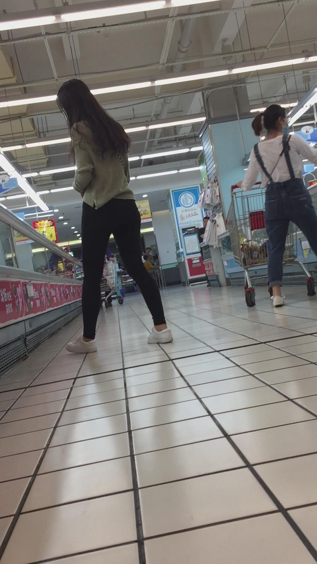 吊带牛仔裤小美女跟好姐妹逛超市。 编号6036