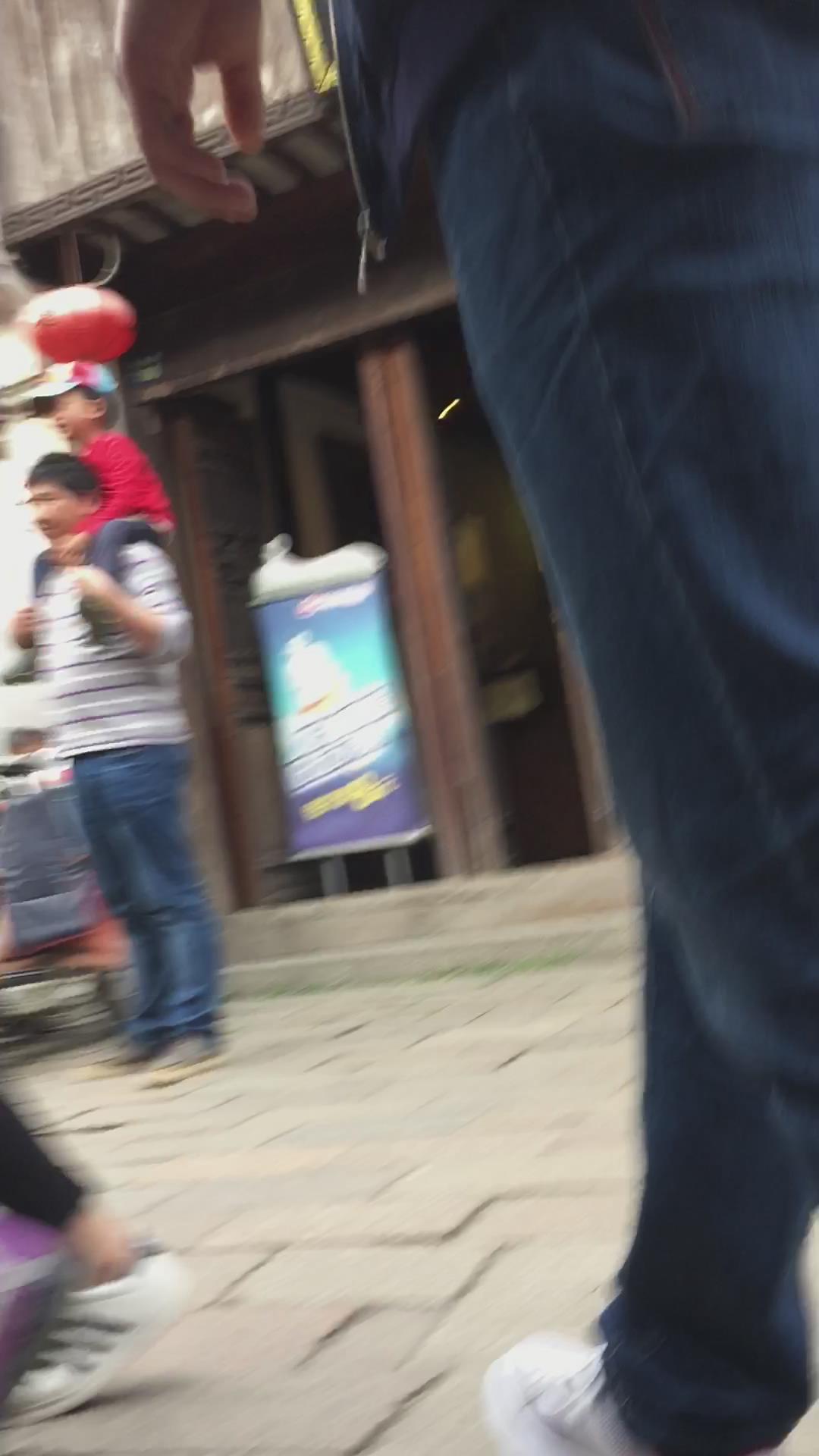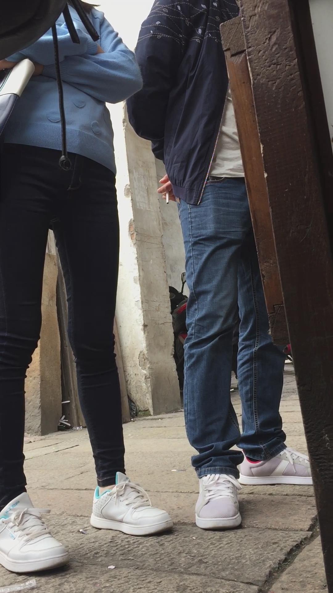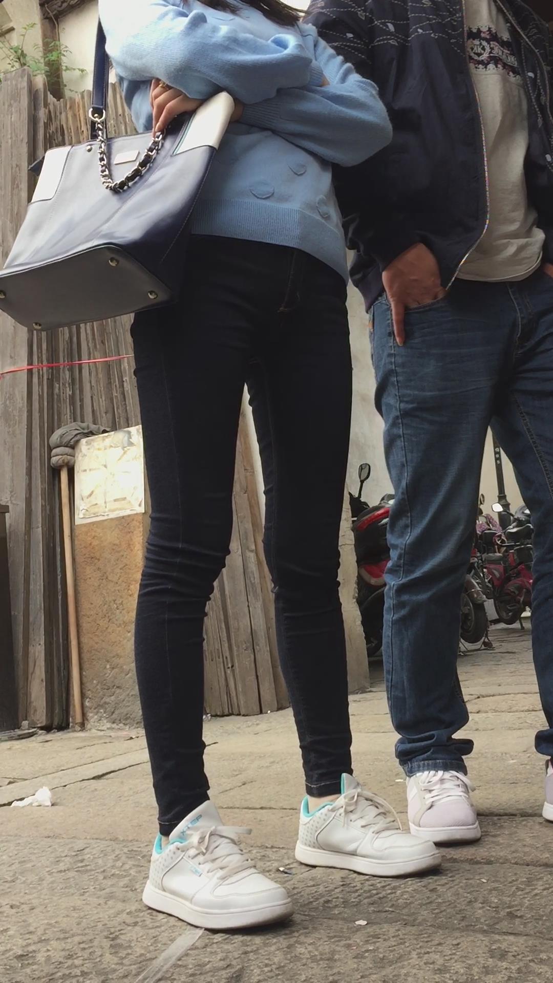 街拍紧身蓝牛运动鞋学生妹。 编号6038
