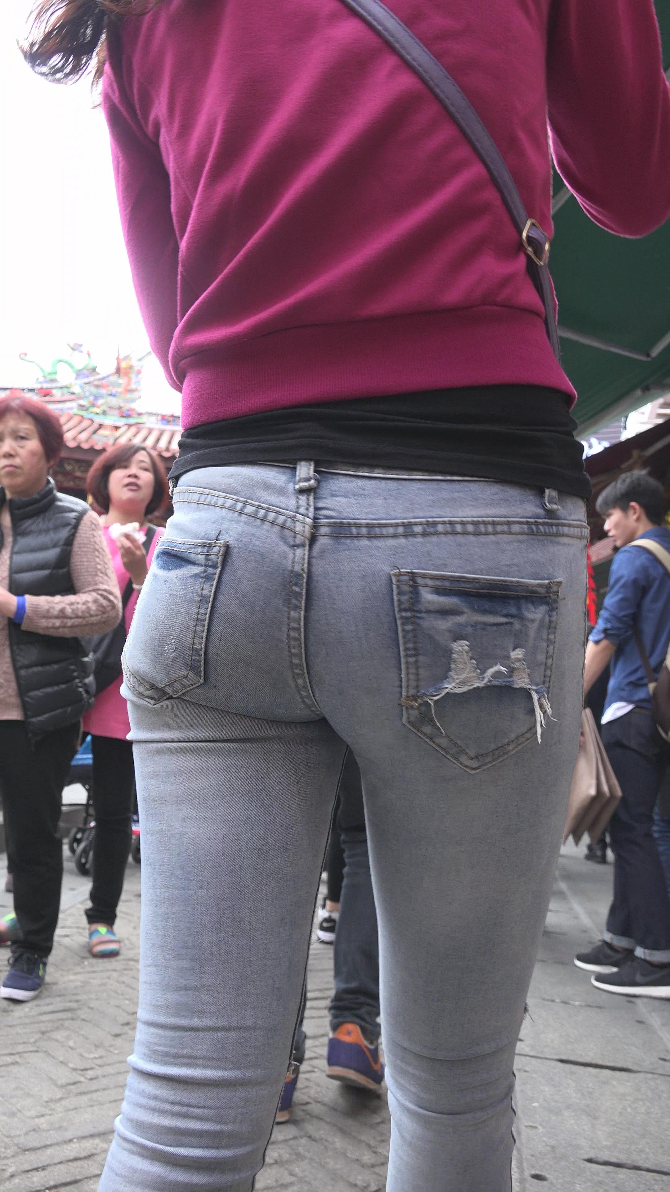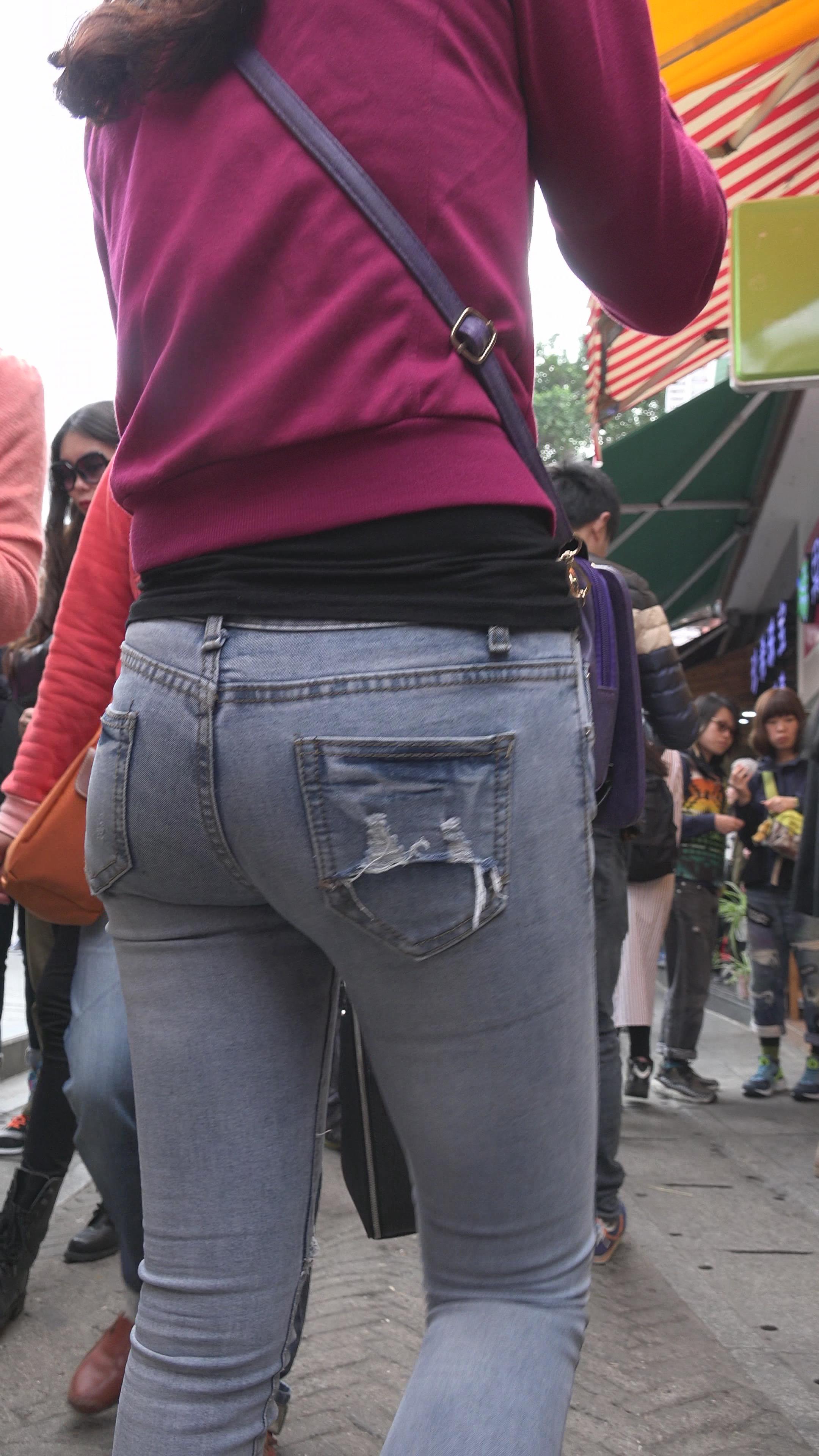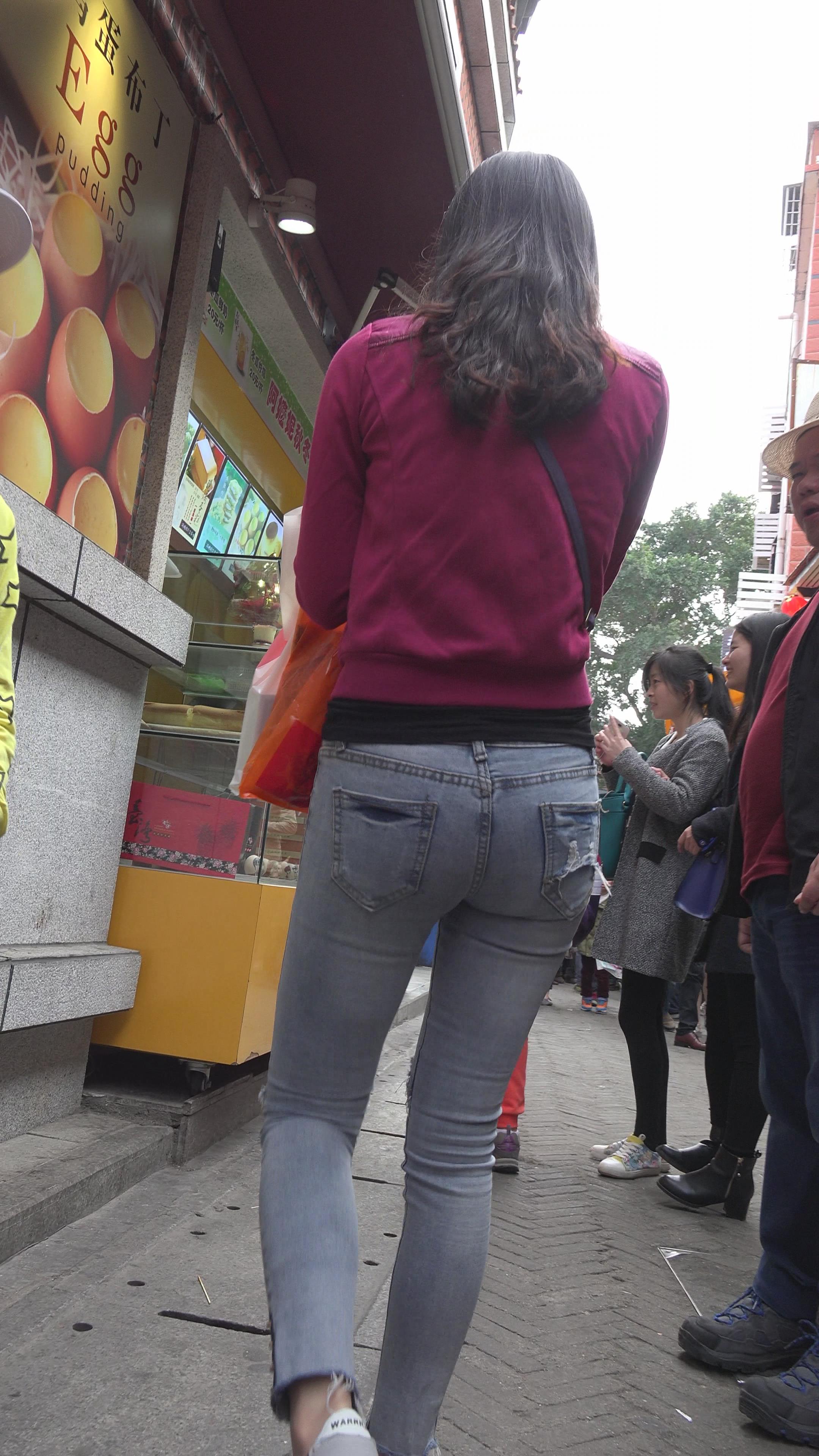 4k-街拍紧到令人窒息的圆臀蓝牛美女 编号6055
