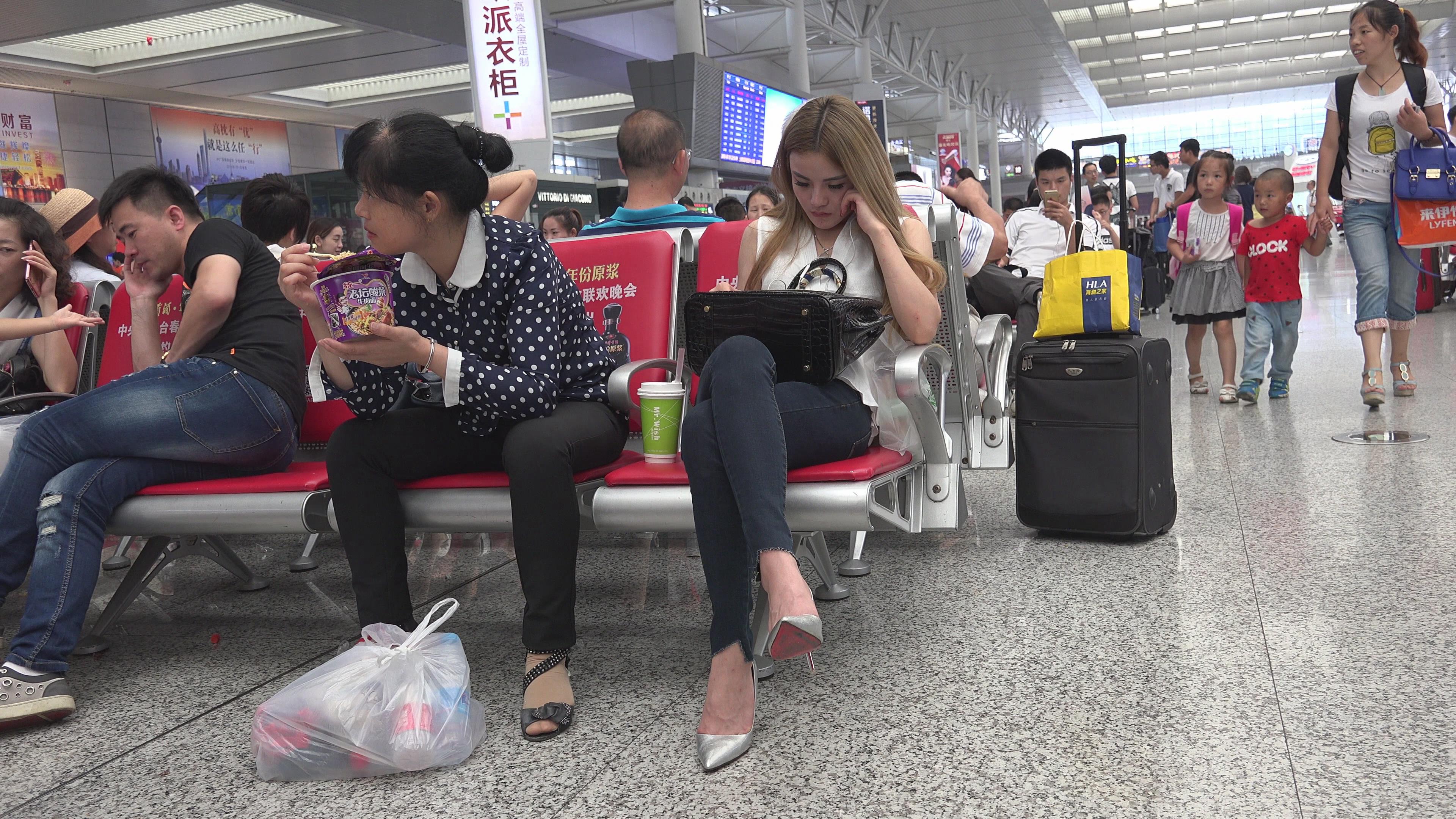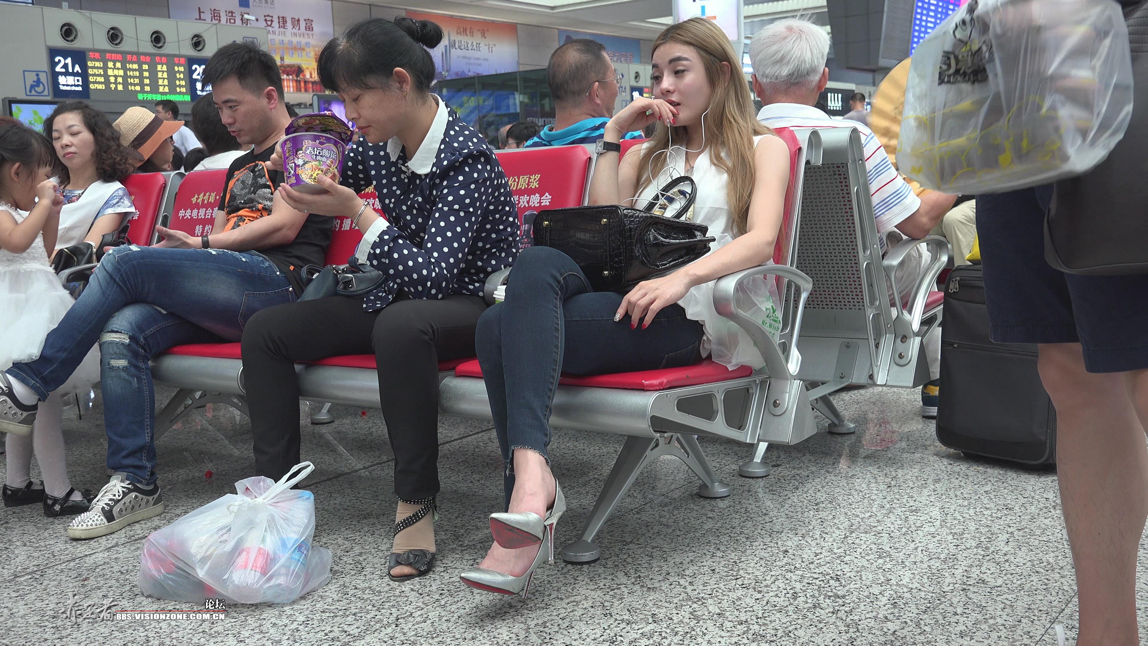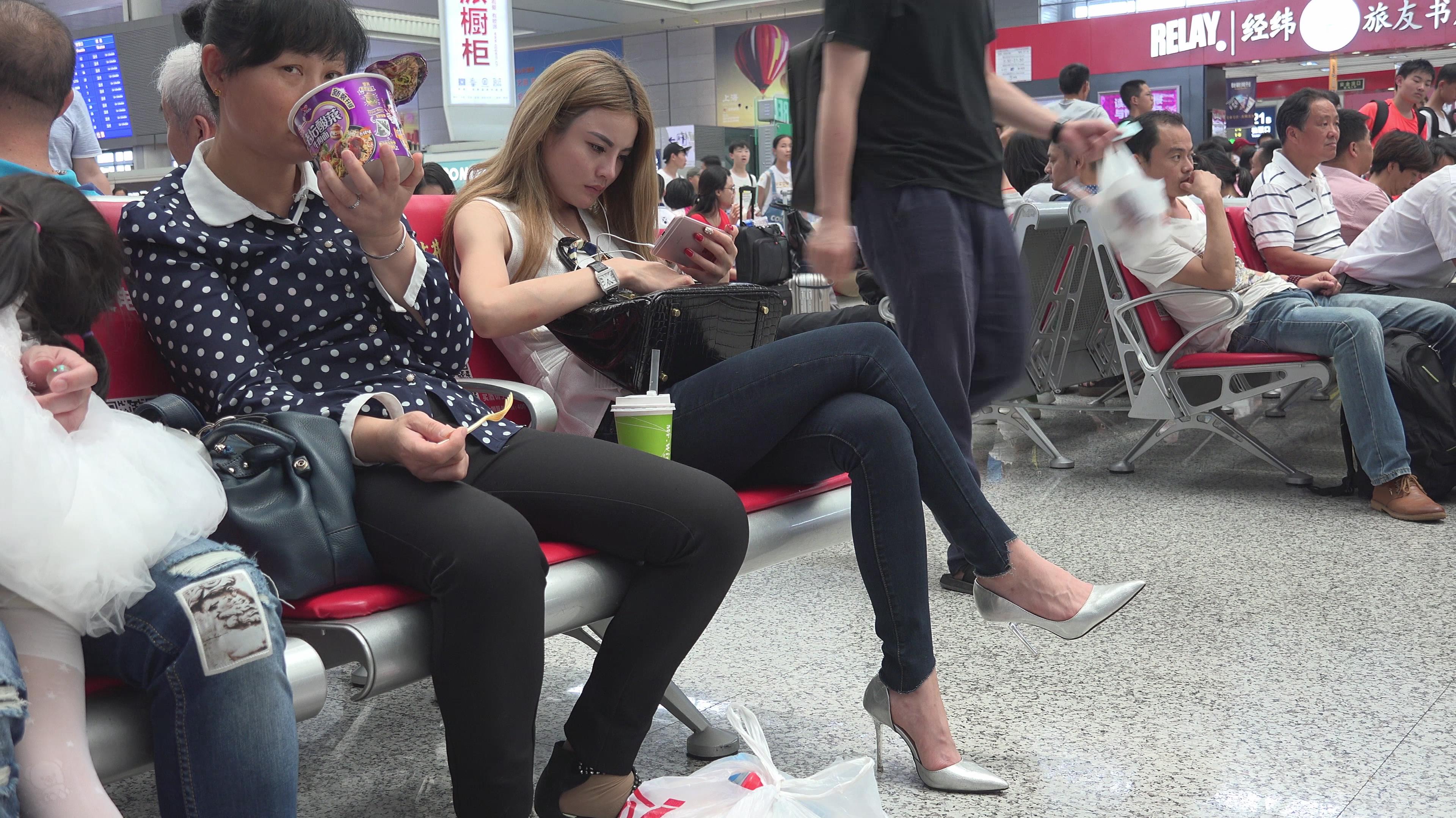 4K 候车室的银白尖嘴高跟美女 编号2732