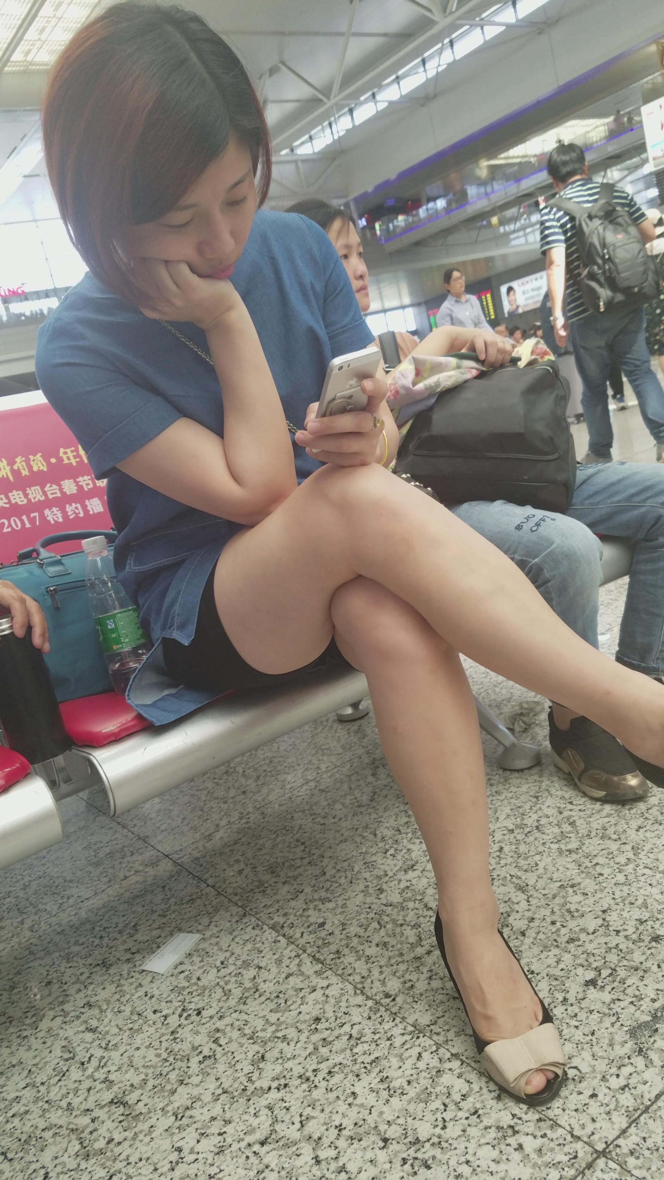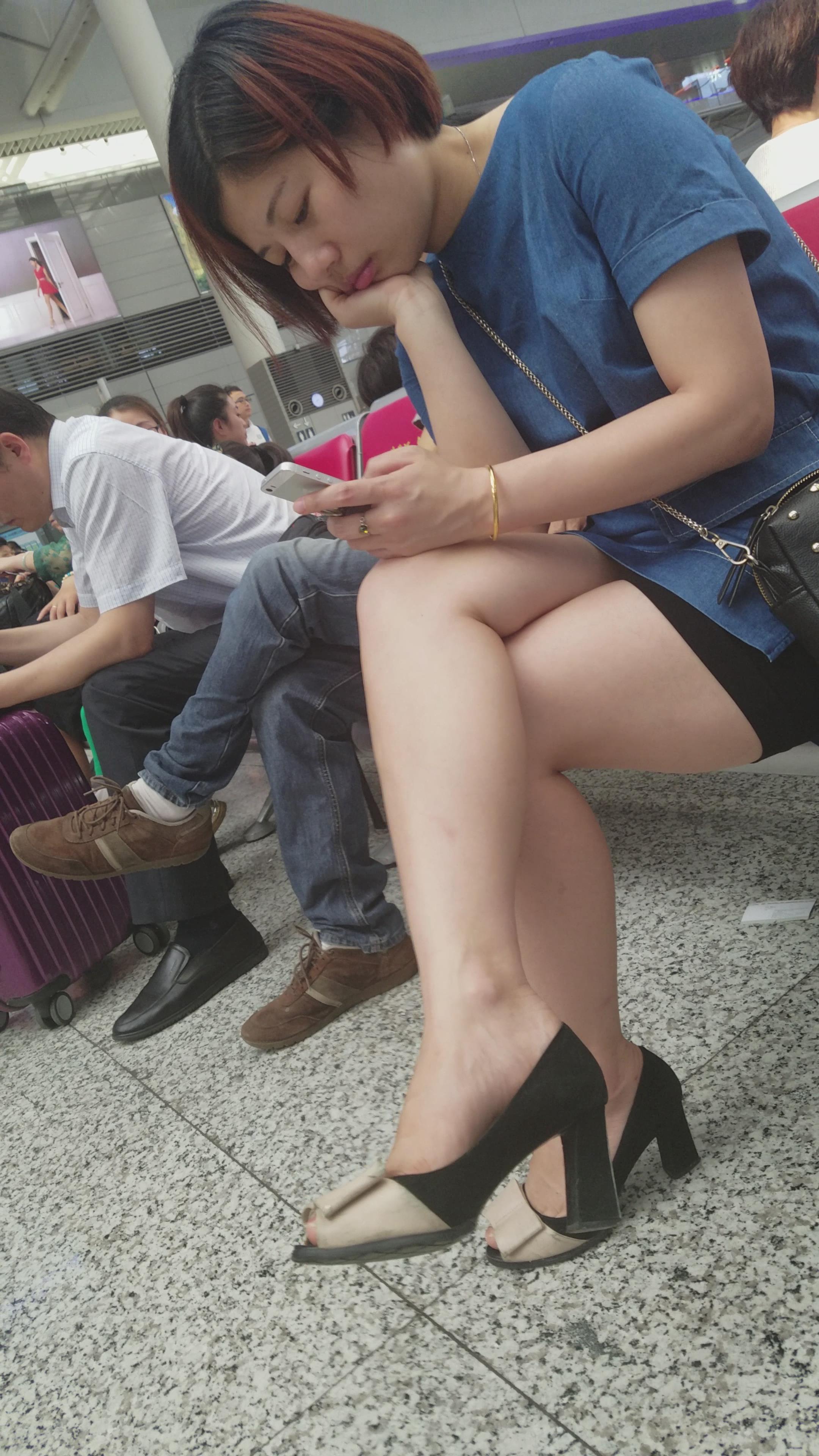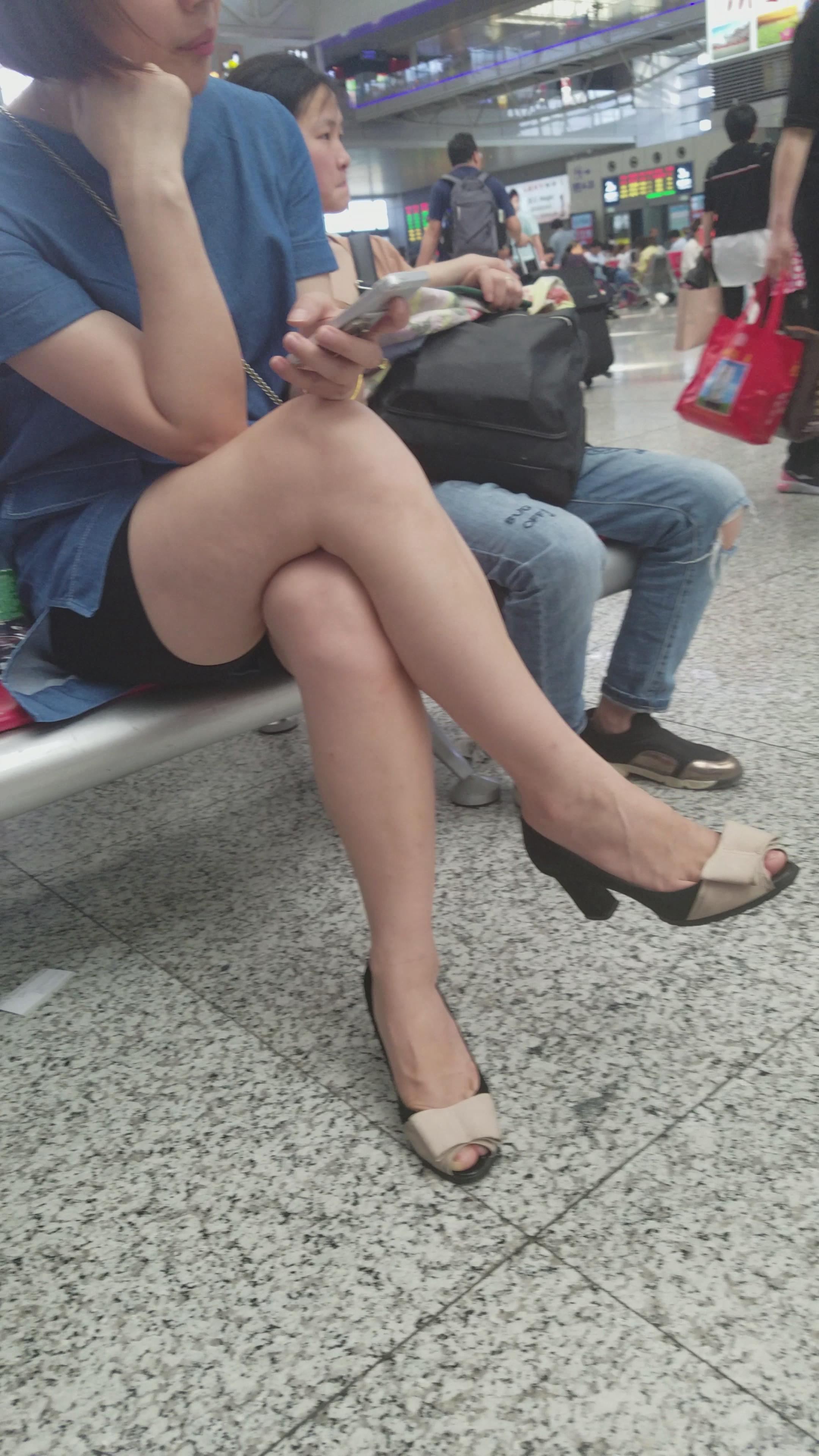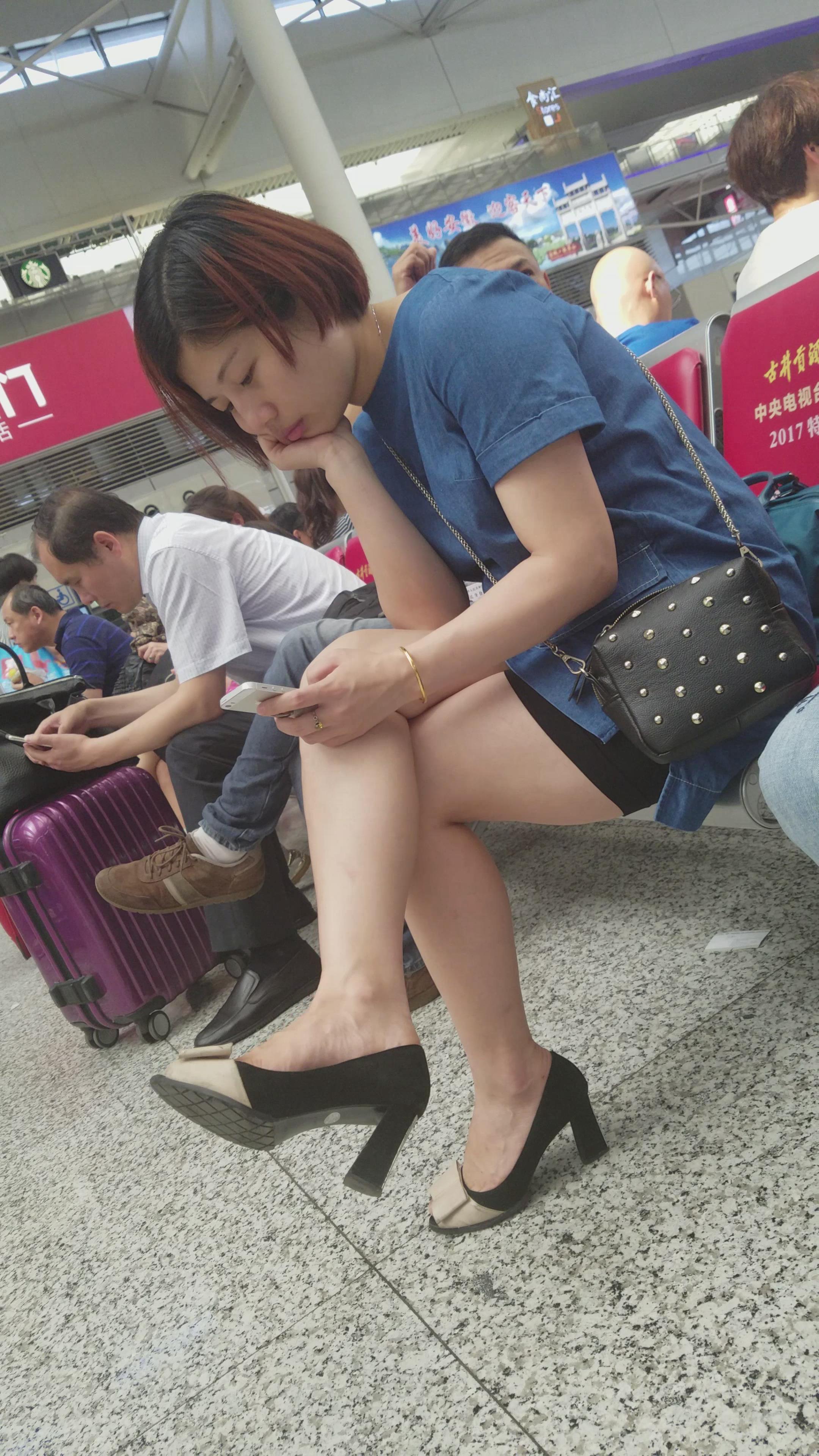 4K-鱼嘴高跟鞋街拍美腿短裙气质短发姐姐 编号2749