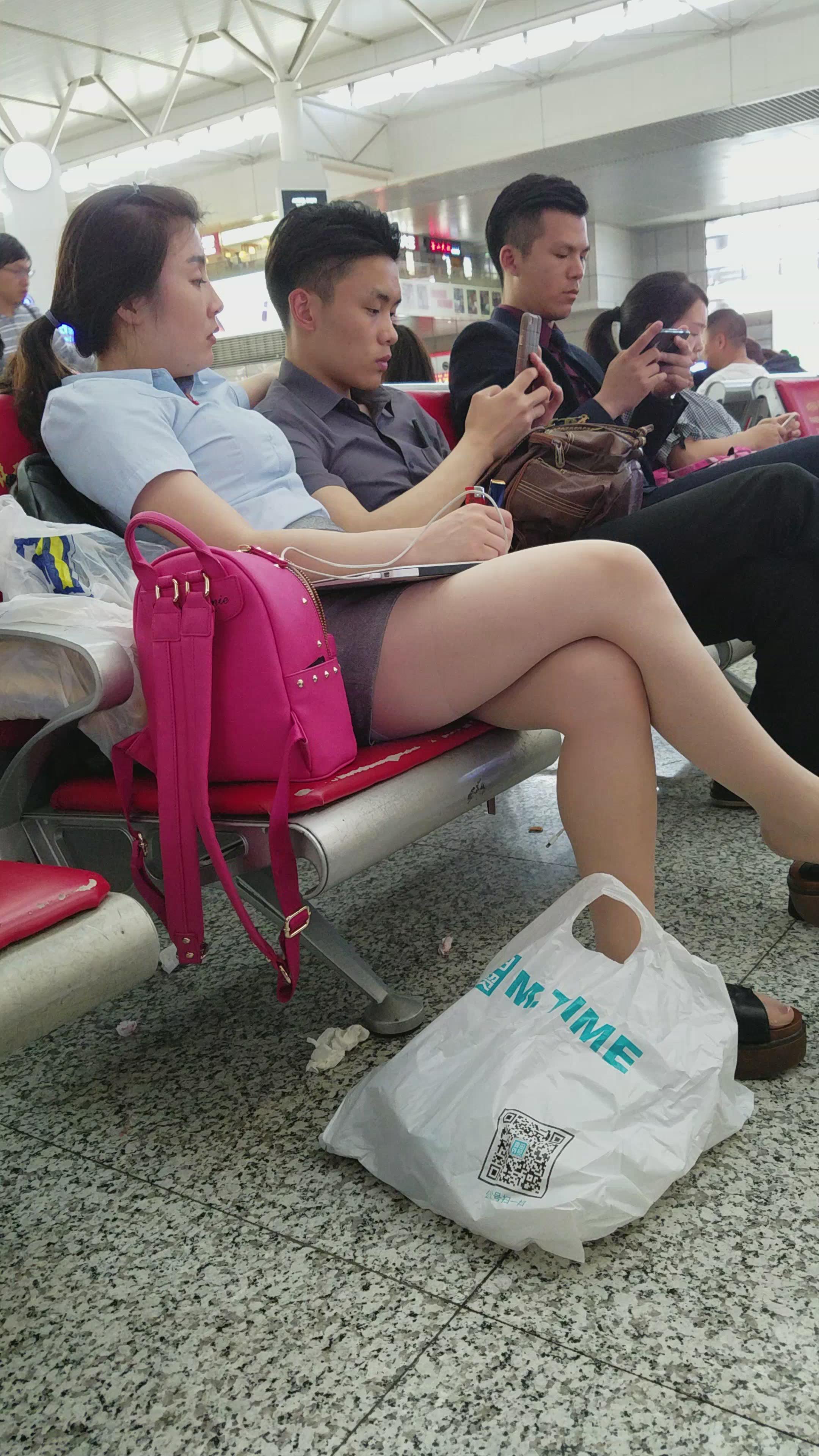 4K-蓝色衬衫包臀裙街拍肉丝大长腿性感美女 编号2761