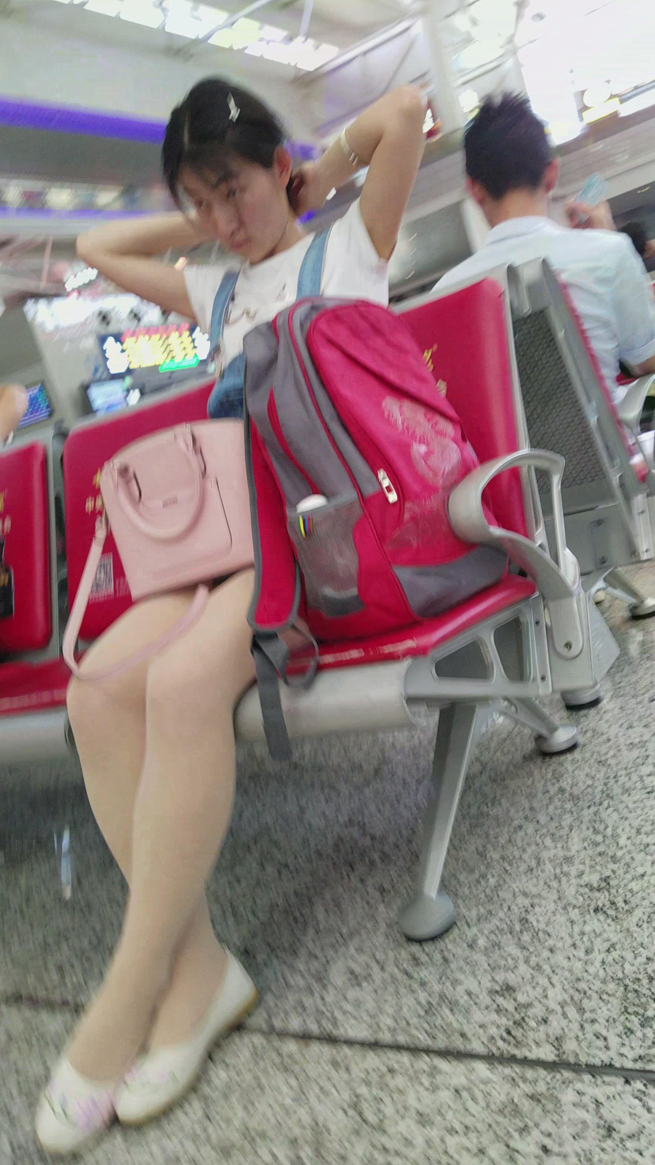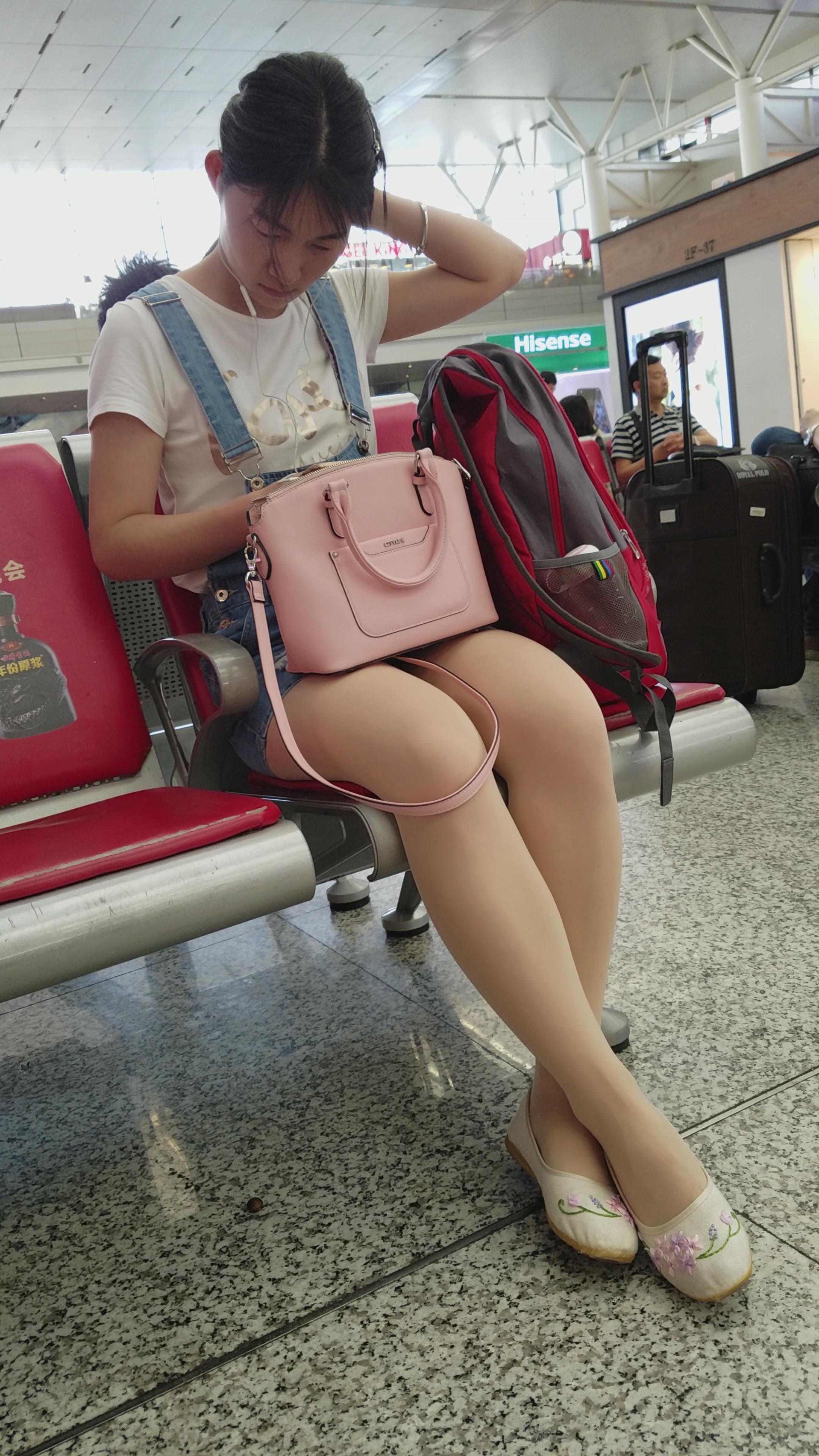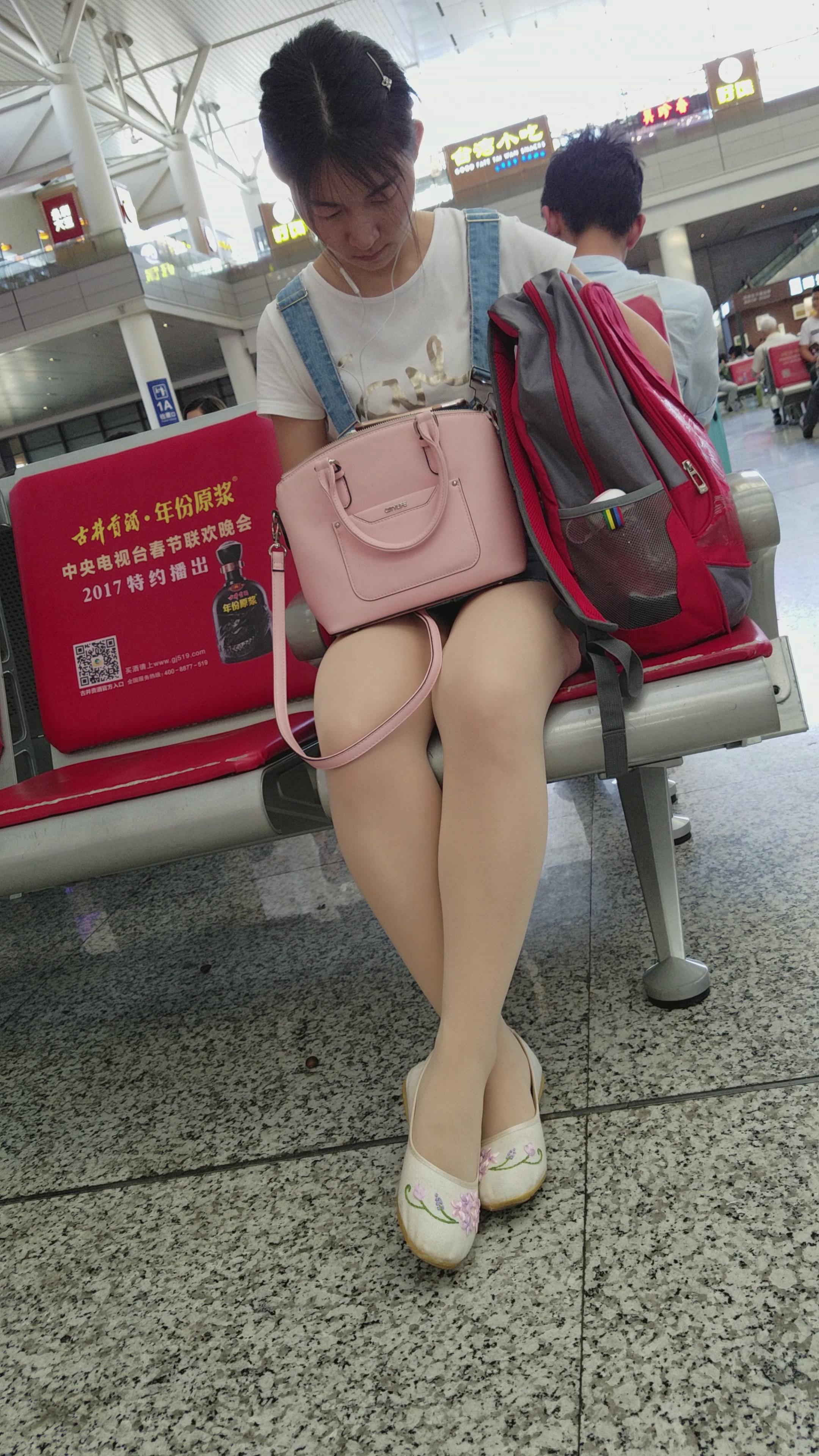 4K-性感肉丝美腿绣花鞋吊带裙街拍妹纸 编号2778