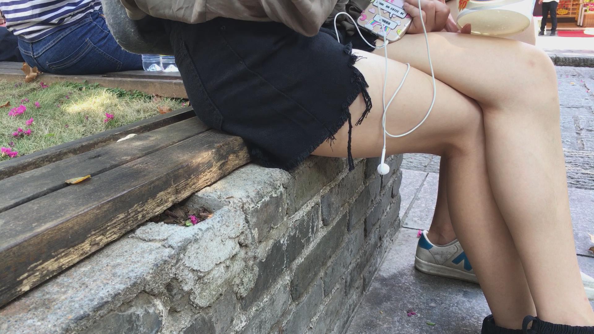 花坛边休息的白皙美腿小妹 编号4510