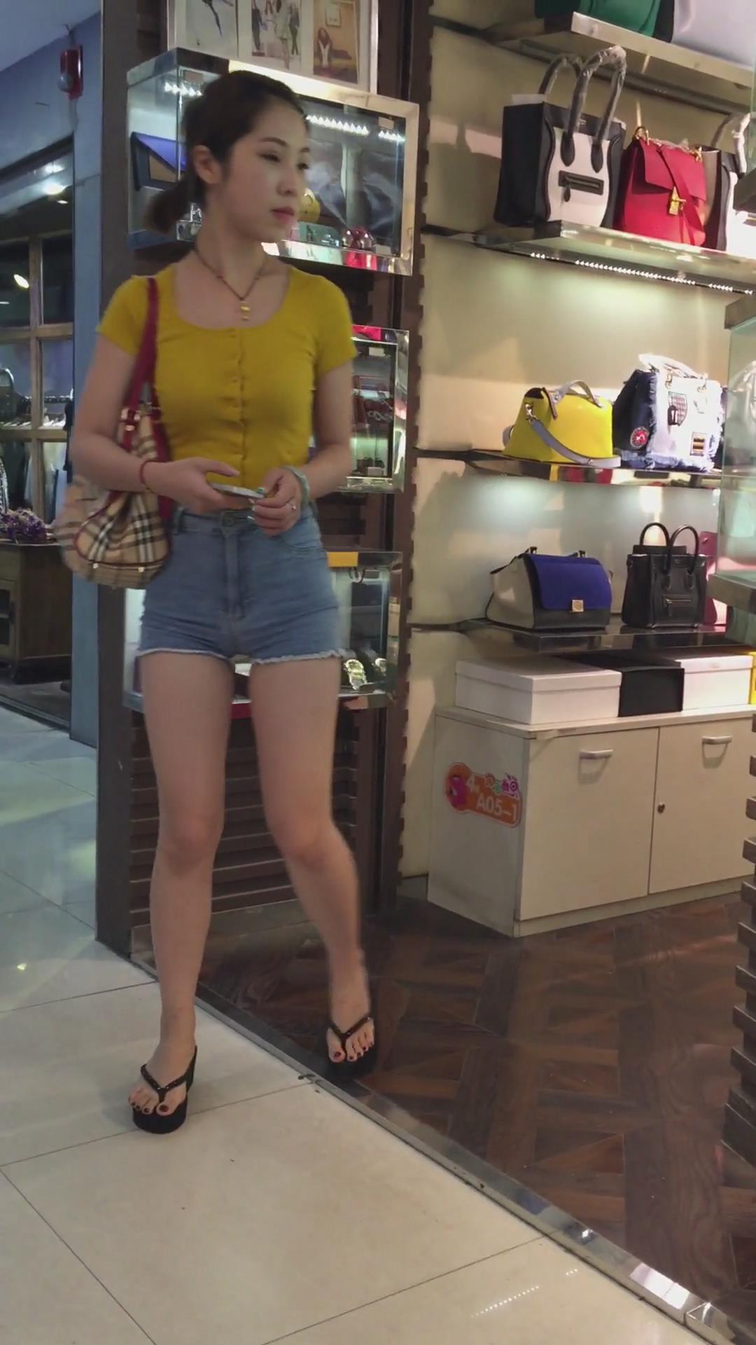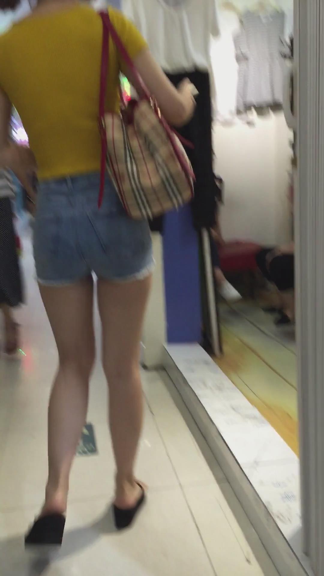 街拍超短牛仔热裤美臀饱满三角区美女 编号4511