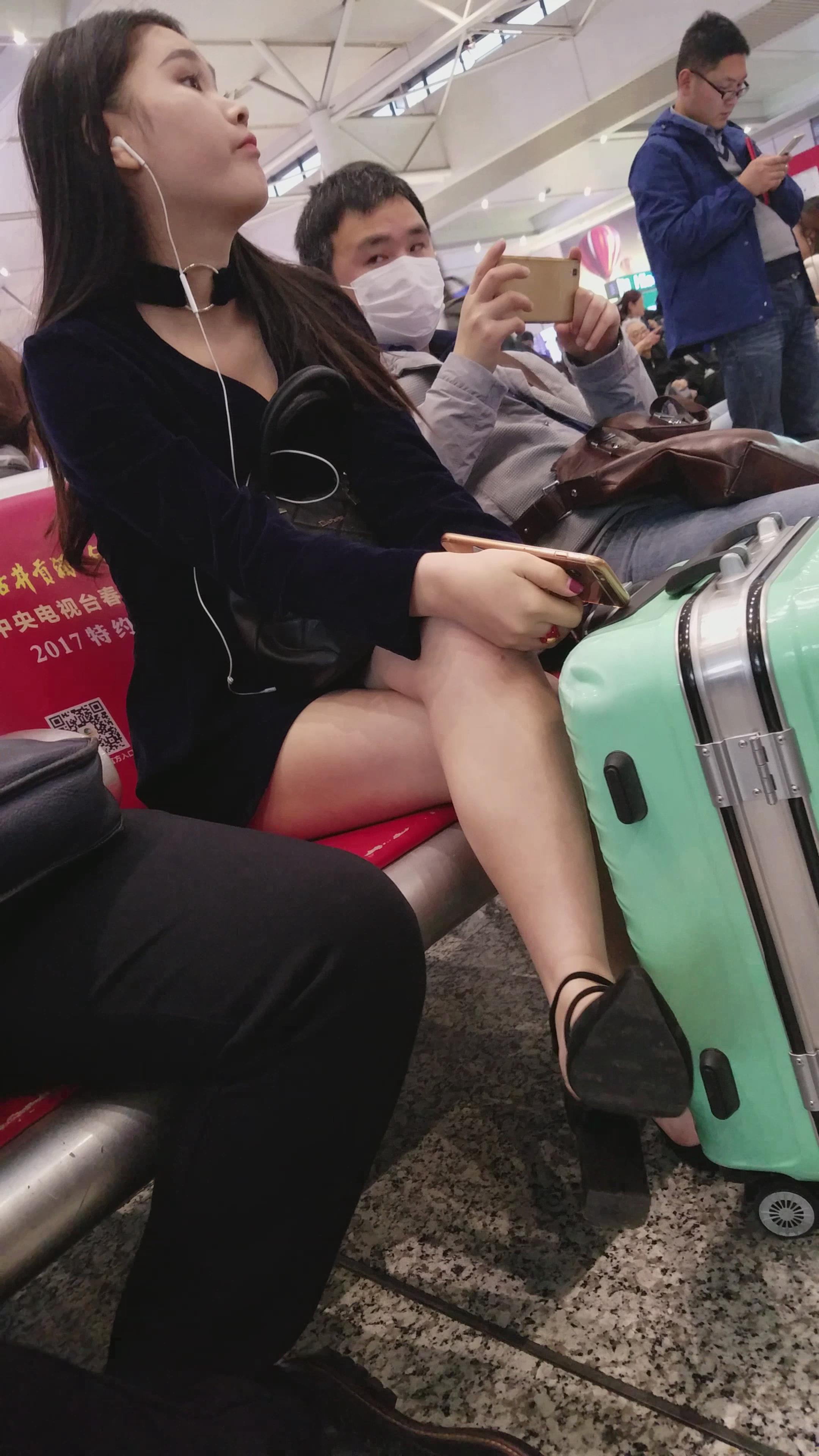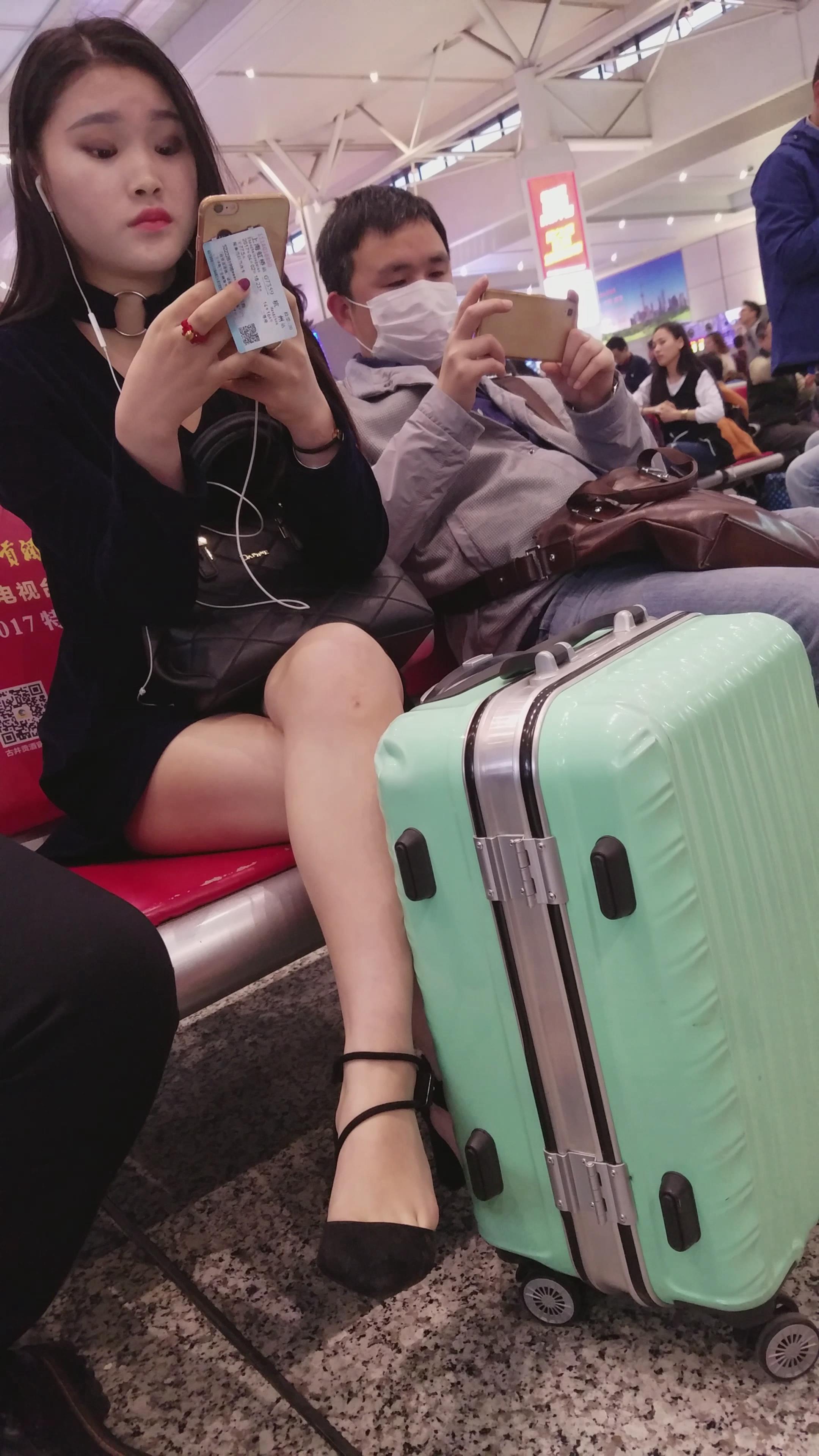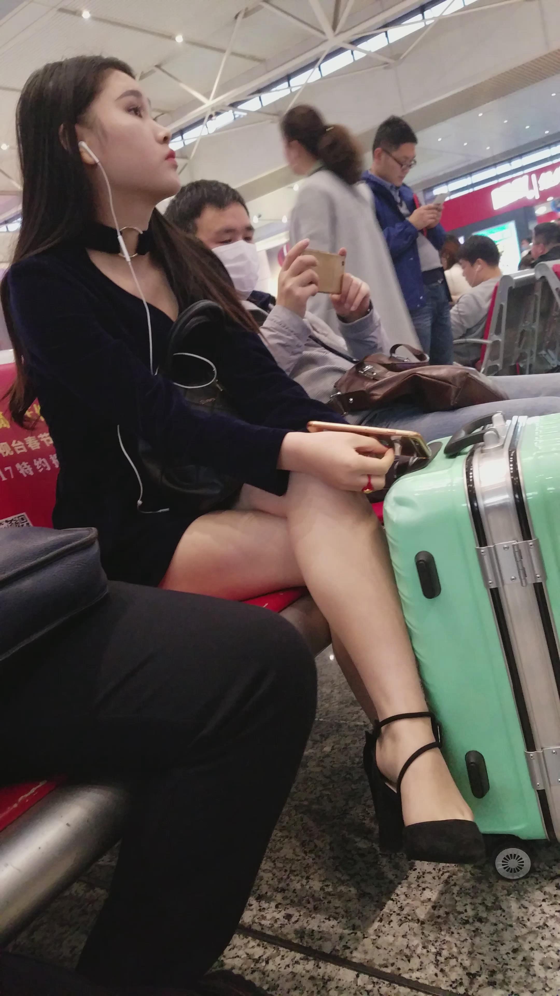 4k超清,高铁站候车室拍摄高跟鞋美腿性感气质美女 编号2888