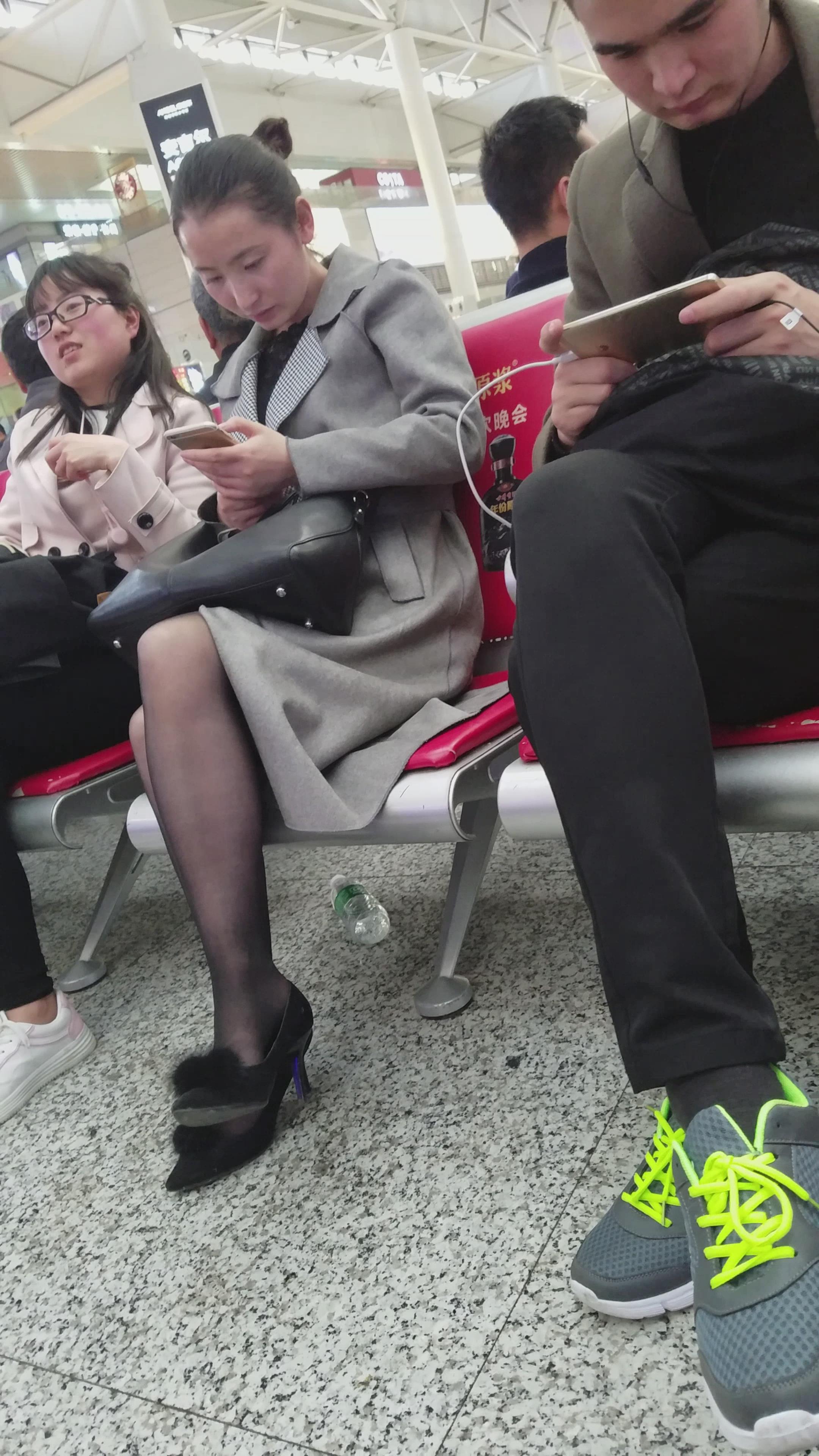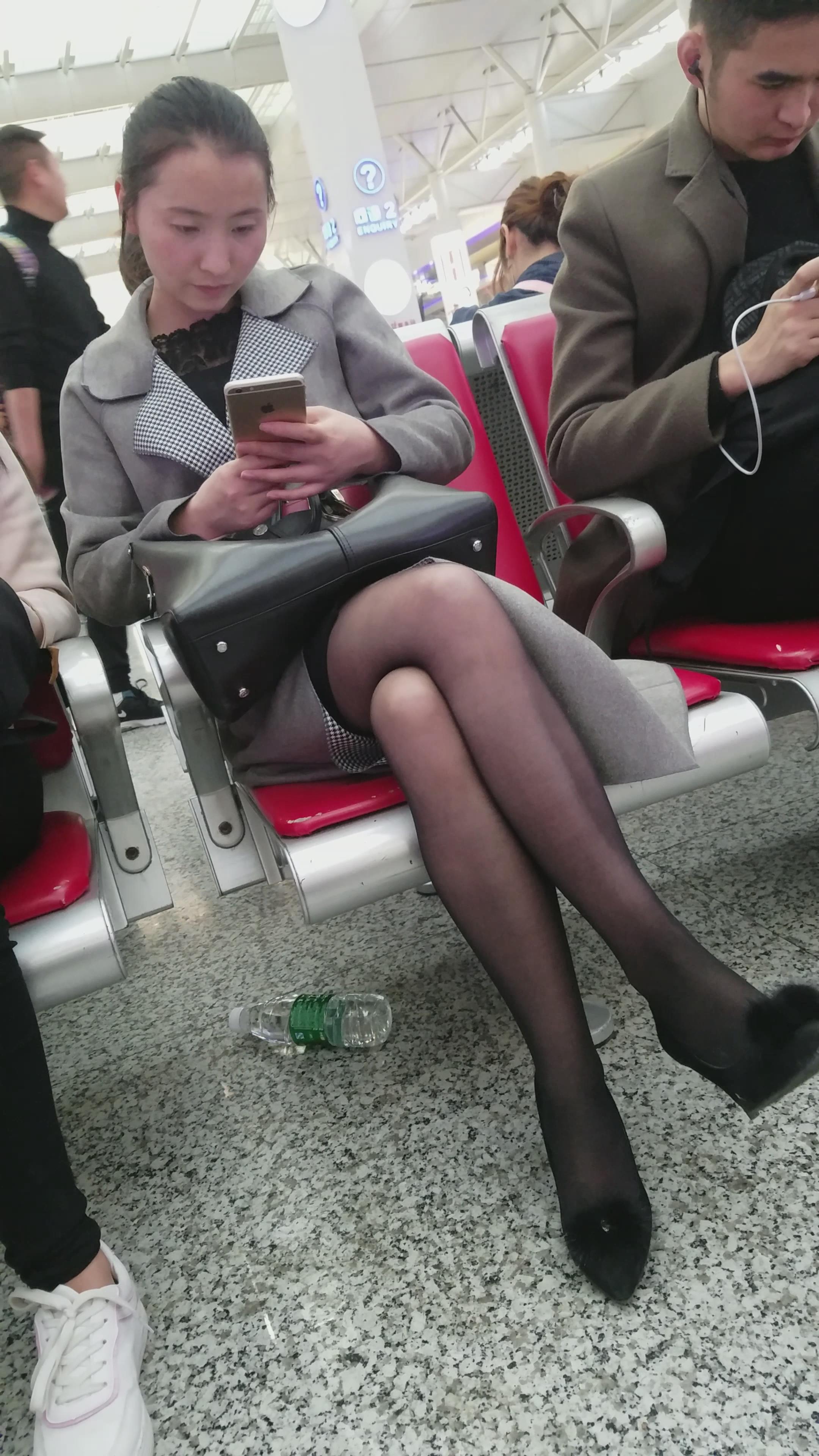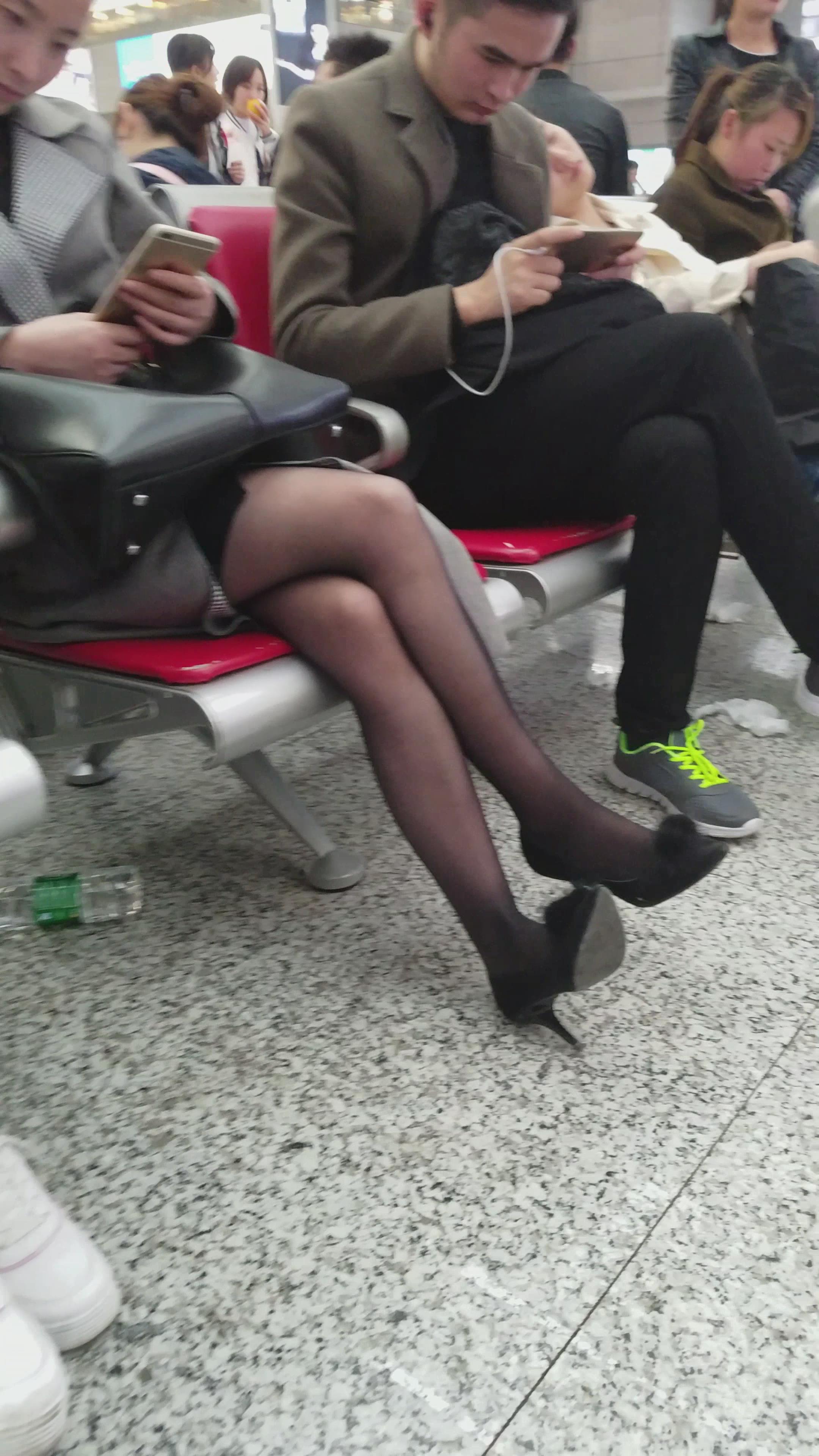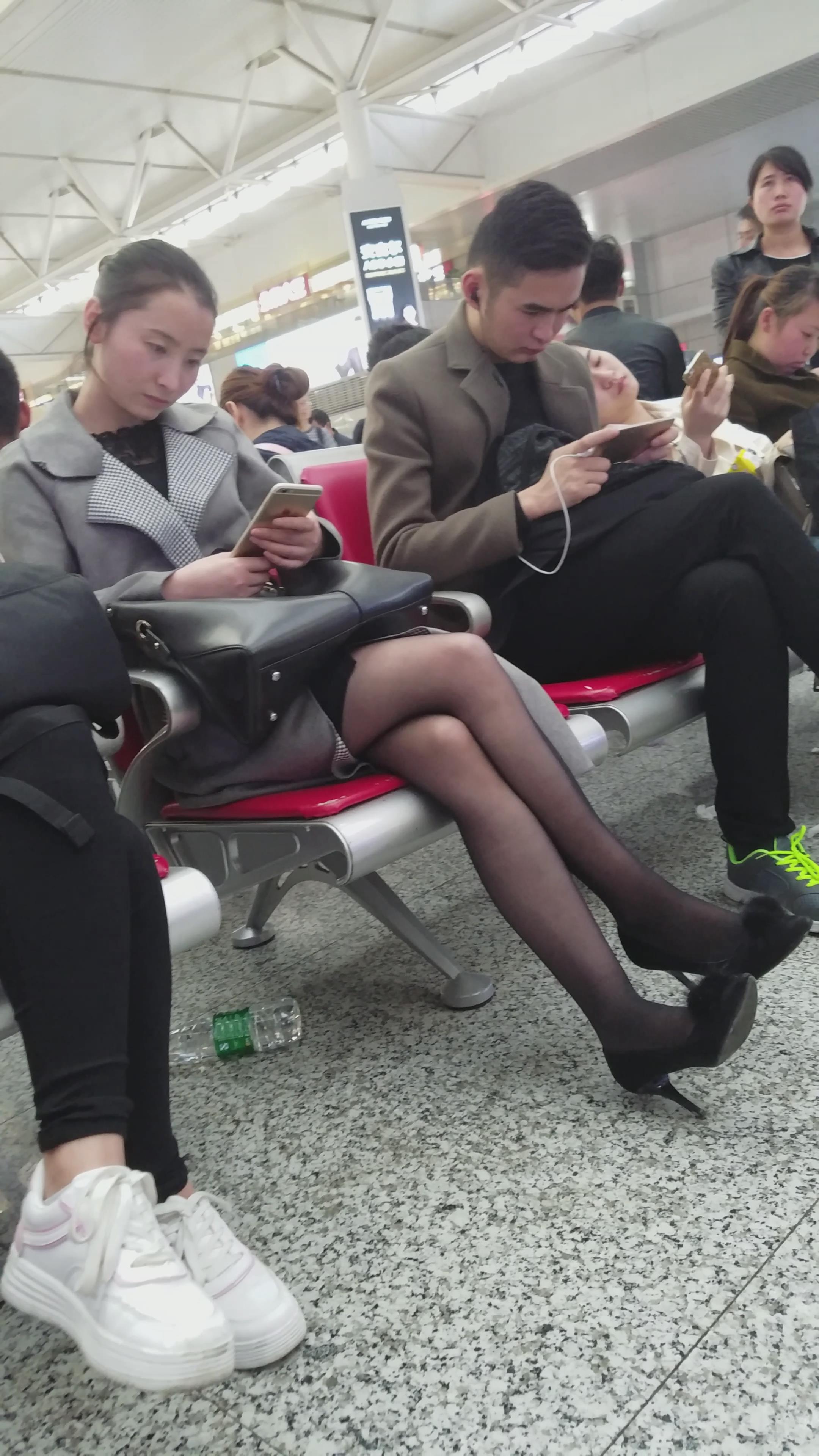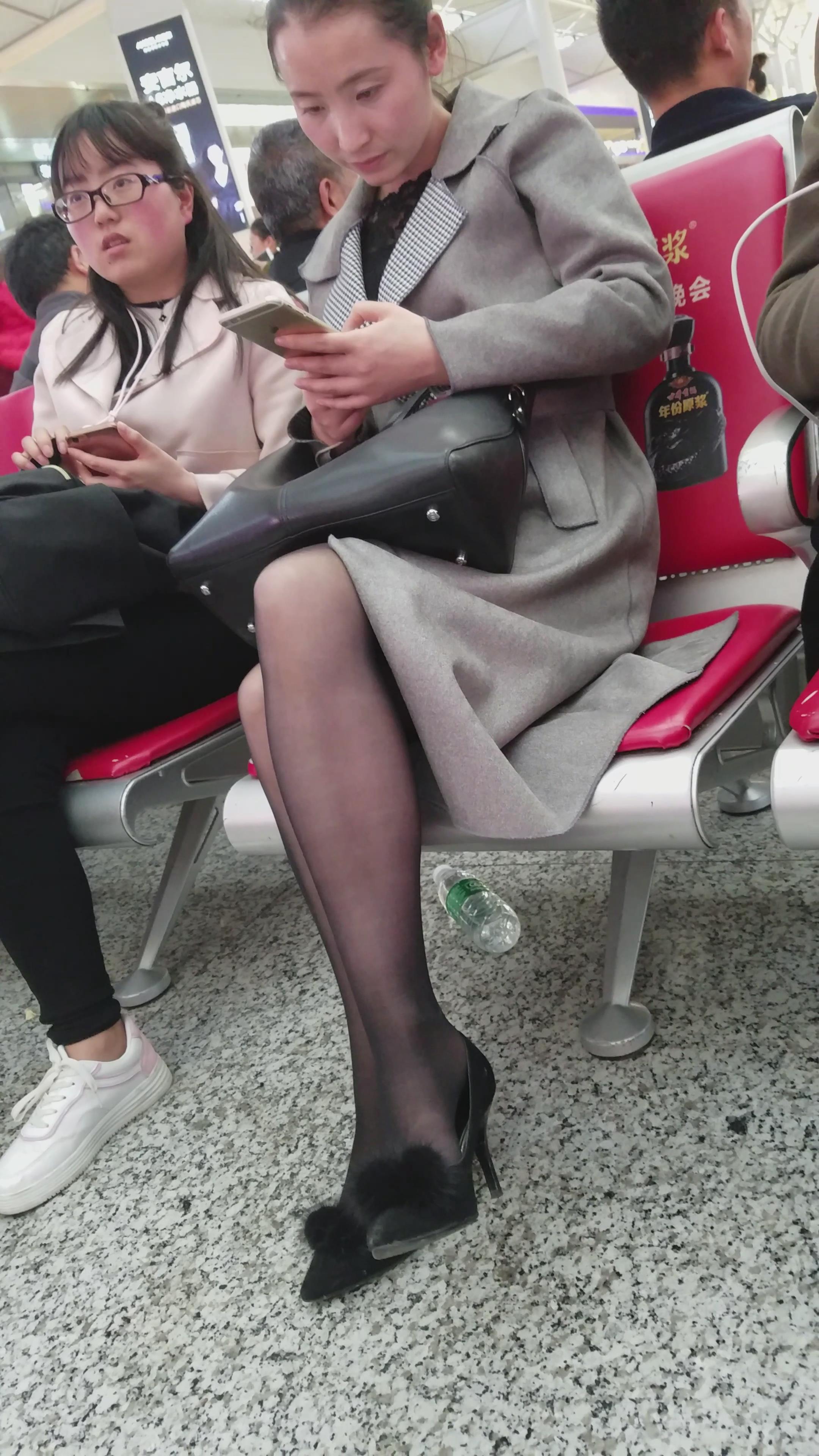 4k超清,高铁站候车室玩手机的极品黑丝知性颜值美女 编号2902